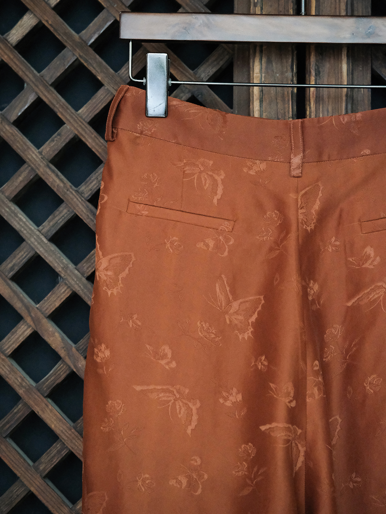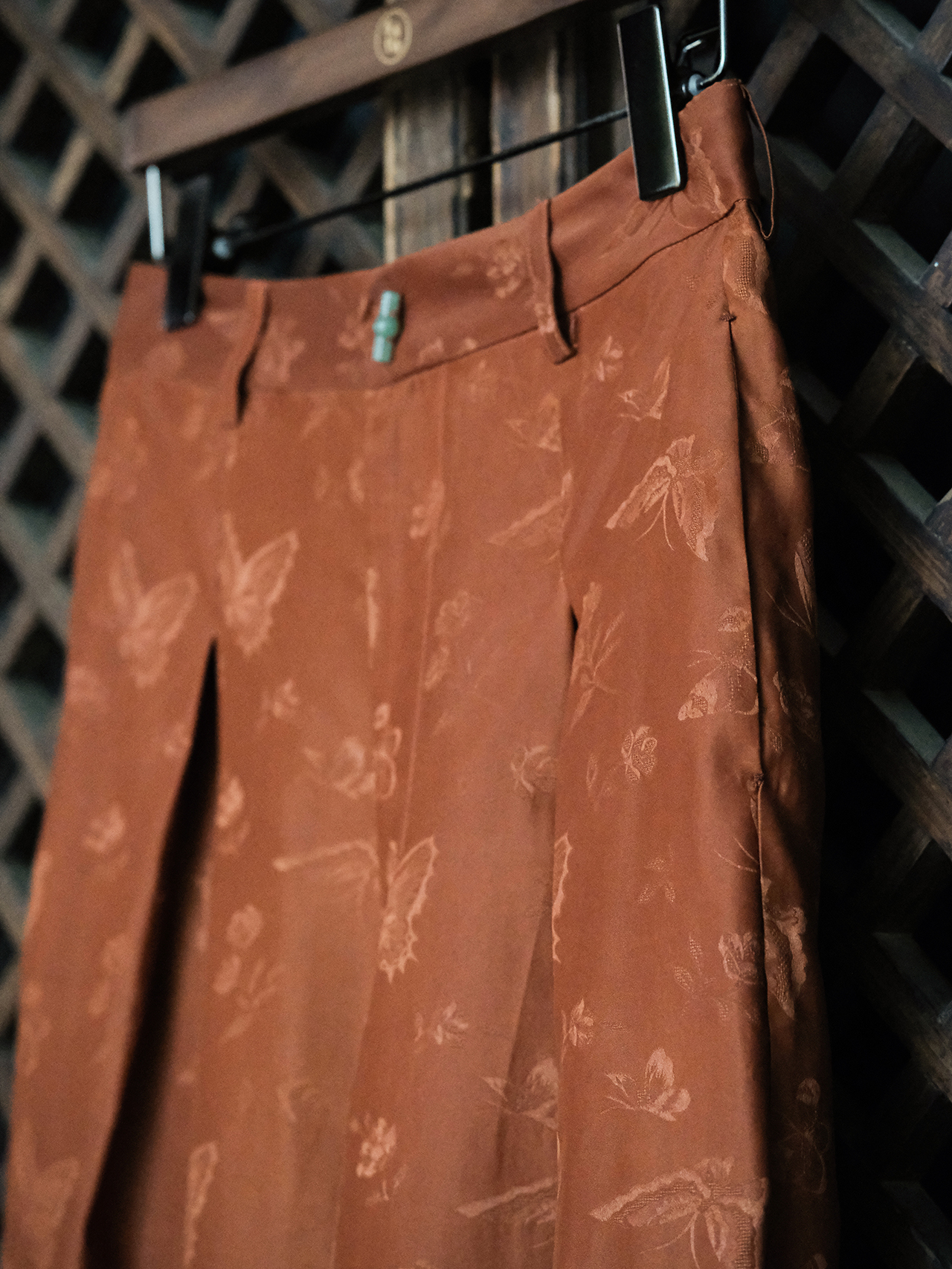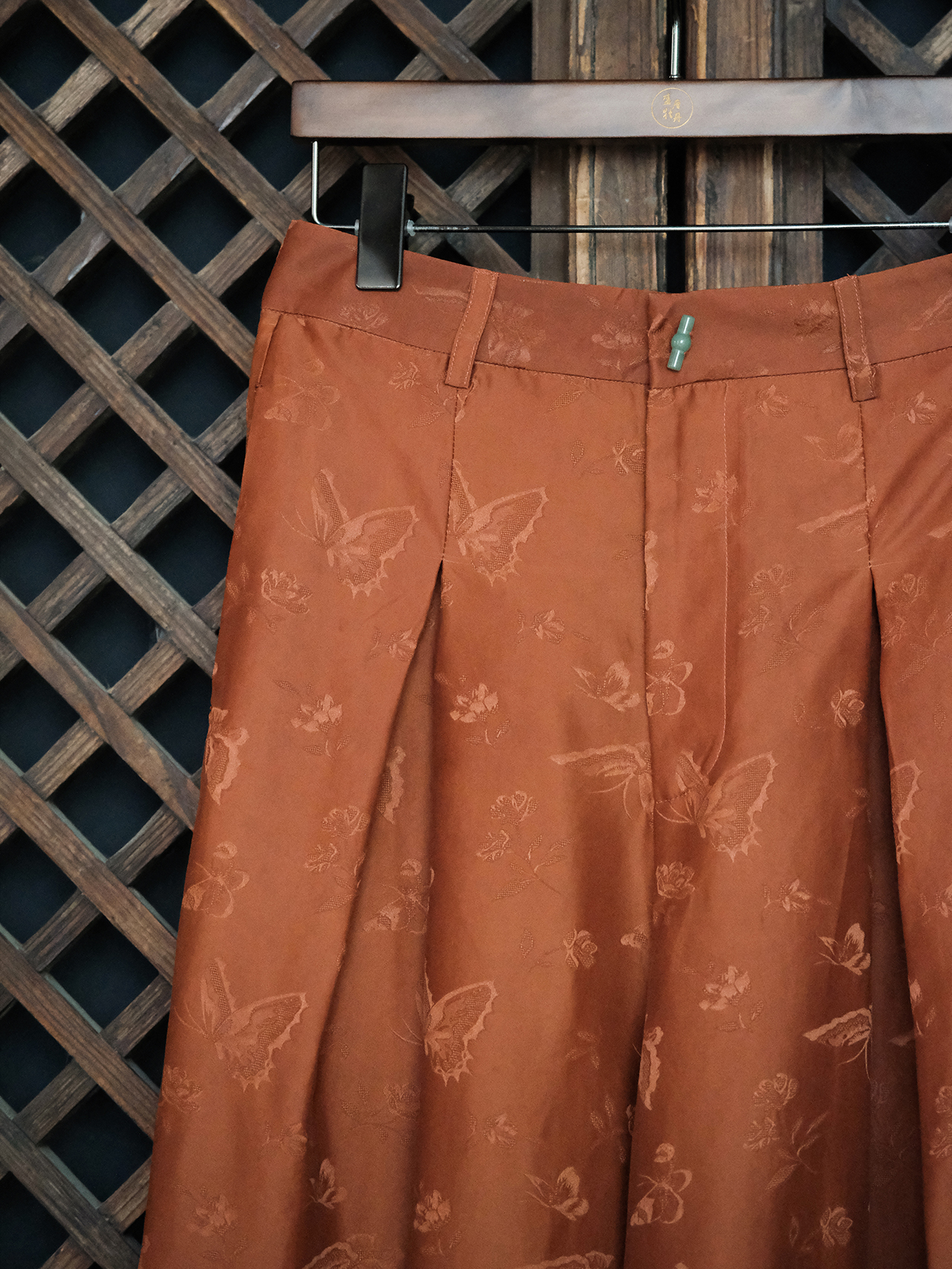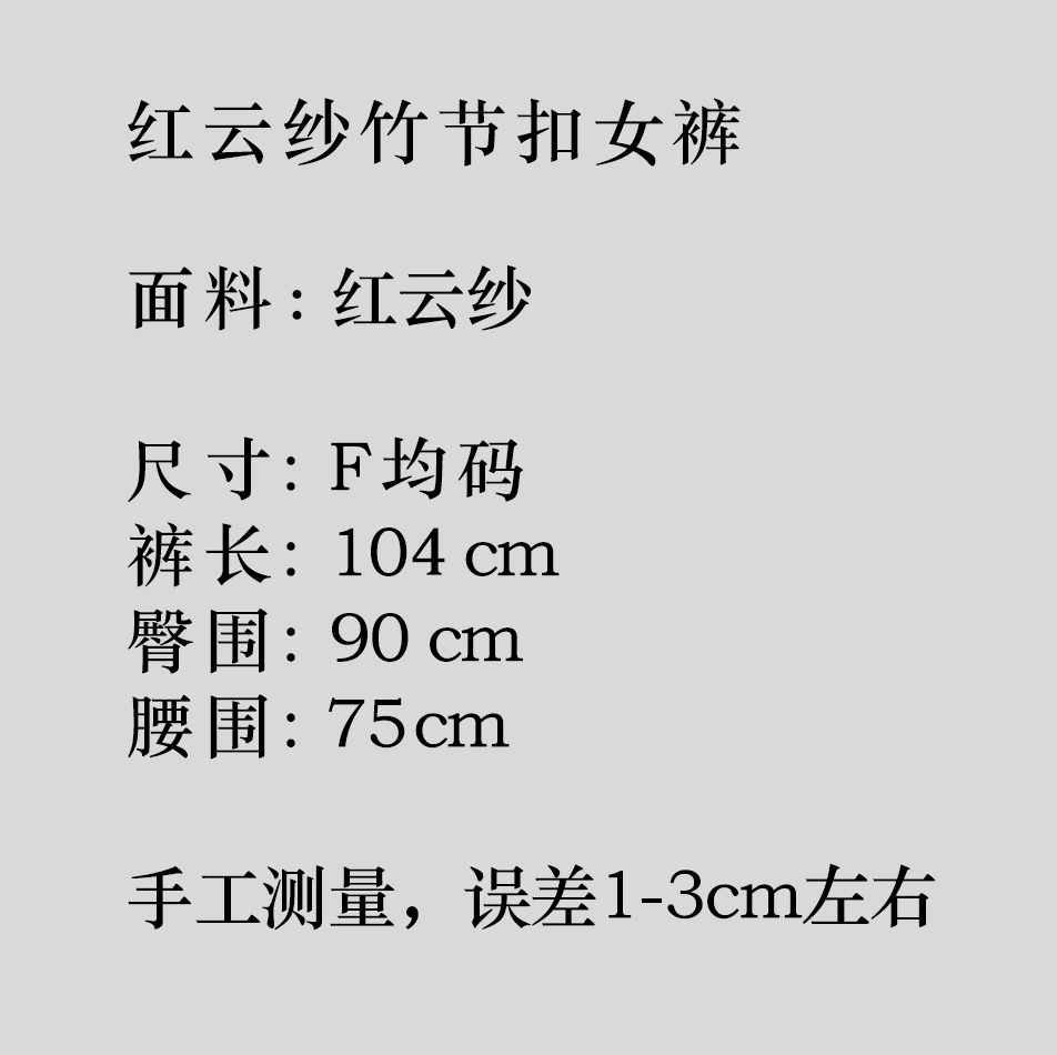 瑕疵|盛唐牡丹| 红云纱竹节扣女裤[特价品](特殊商品不退不换)
