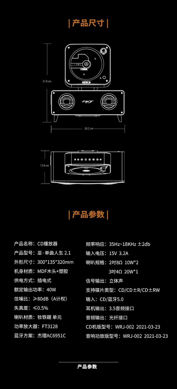【采购专享】单曲人生2.1 桌面一体式CD机 黑色 橙色