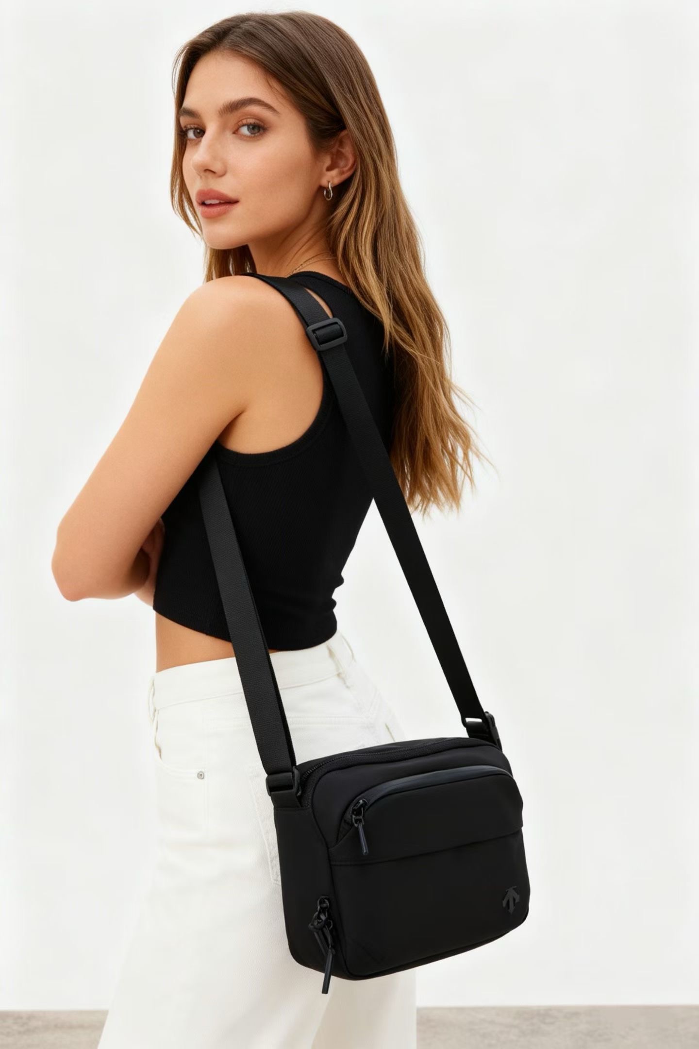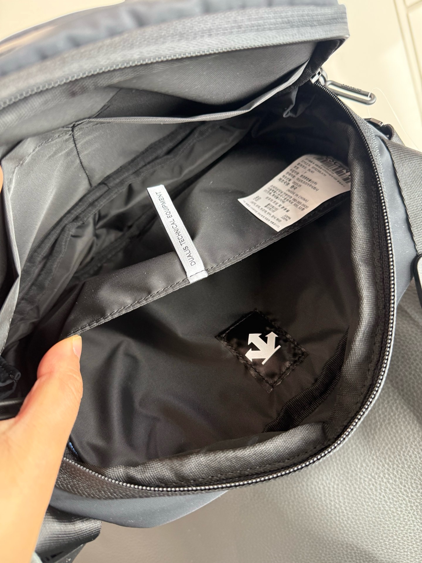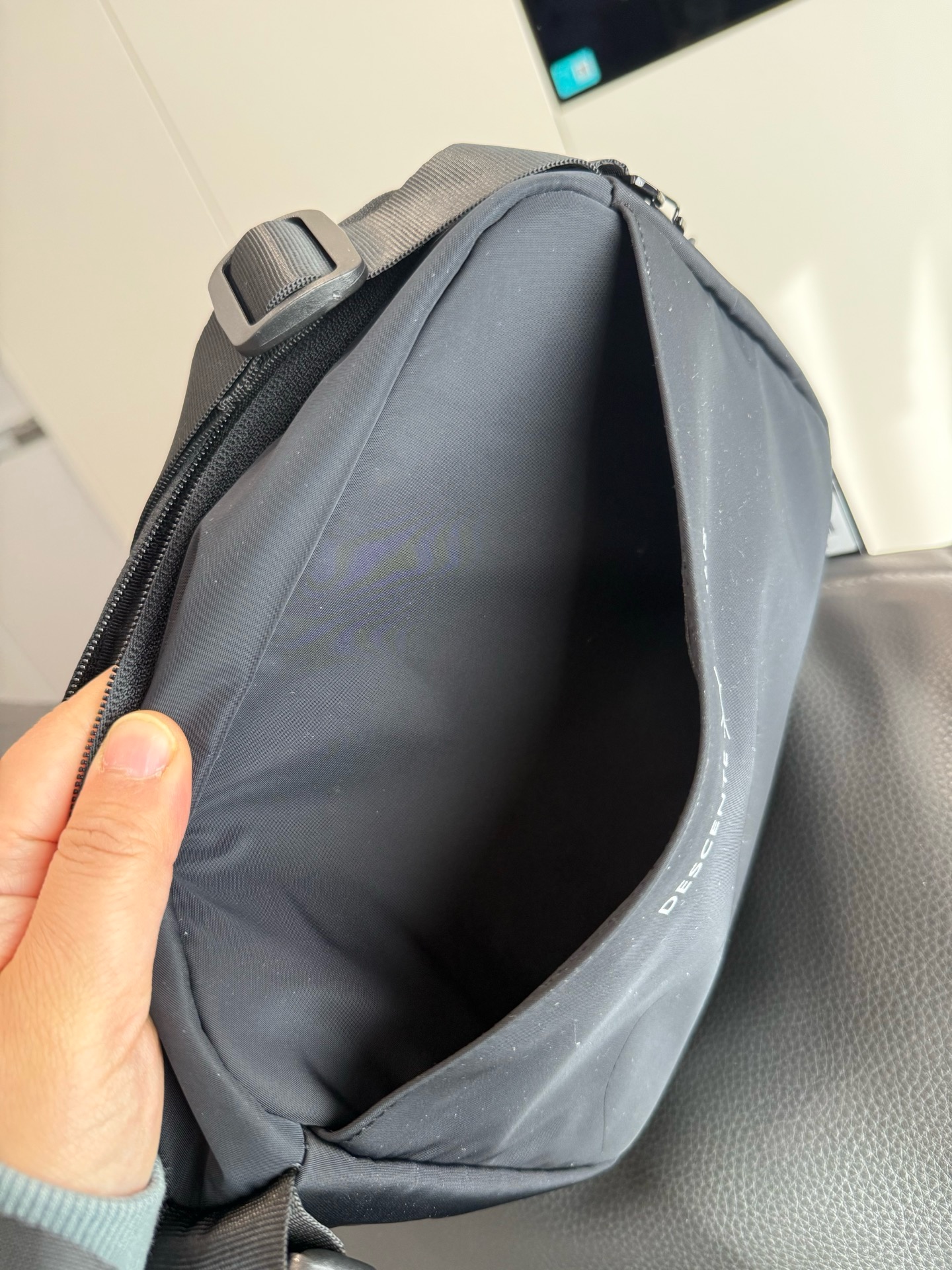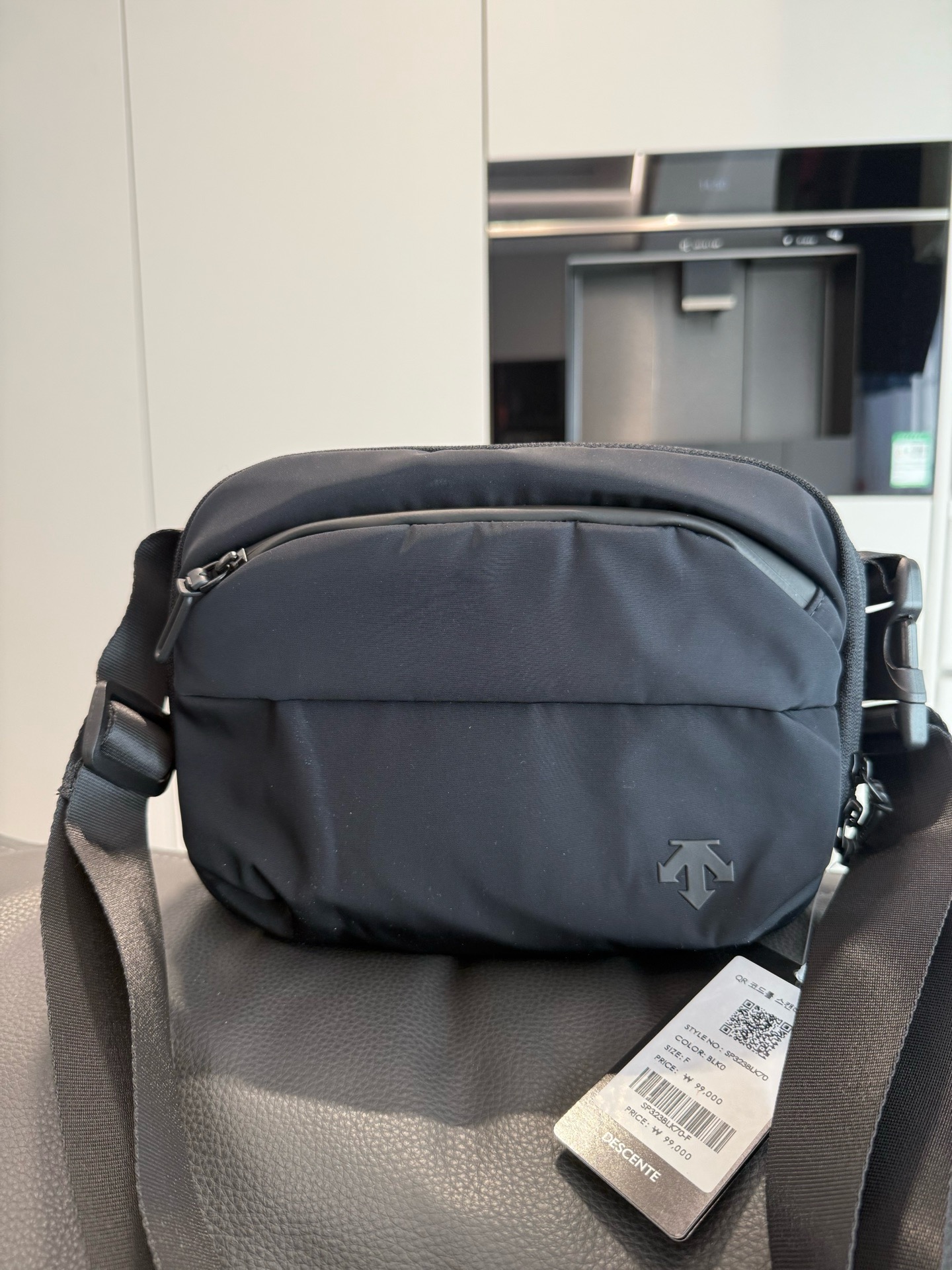 哑光质感的深黑尼龙面料,摸上去是低调的细腻,却自带抗皱抗造的“硬核属性”,通勤挤地铁、周末逛公园都不用小心翼翼护着;包身线条是恰到好处的机能感,没有花里胡哨的装饰,只靠暗纹logo和简洁的分层设计撑气场,搭宽松卫衣是松弛的运动感,配利落西装又能透出轻熟的精致感,从早八通勤到傍晚citywalk,风格切换毫无违和感。