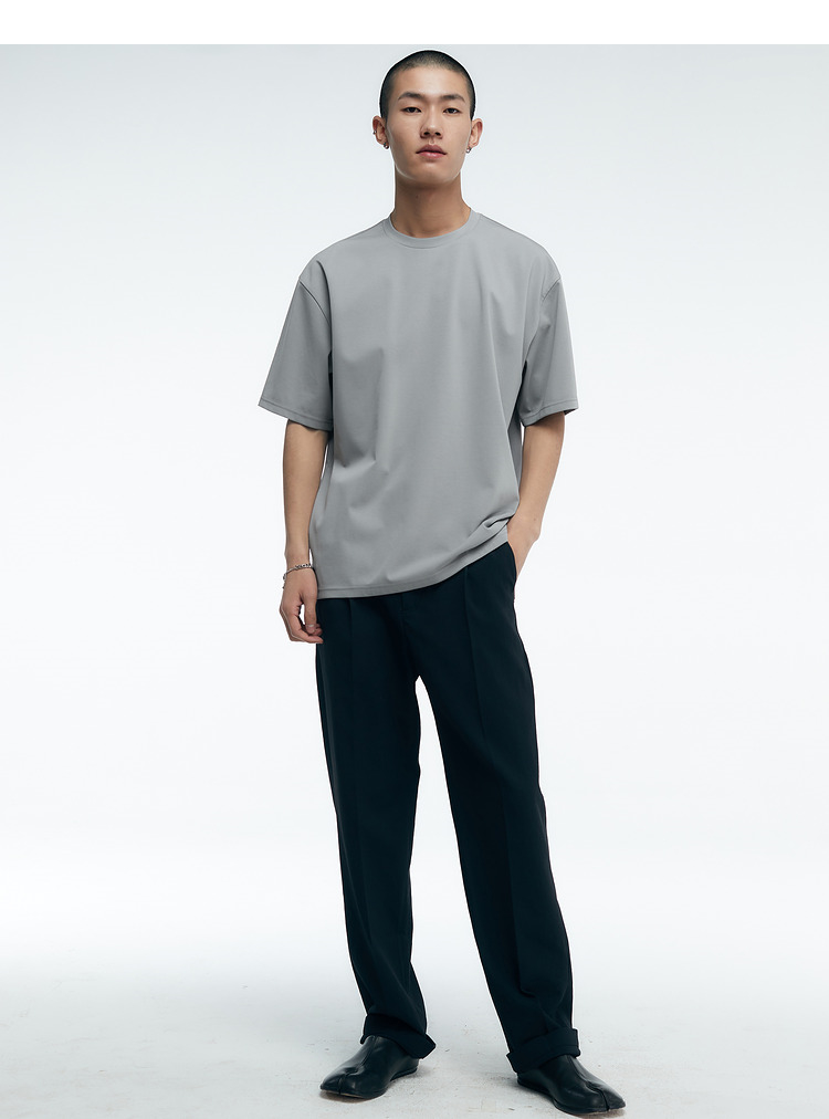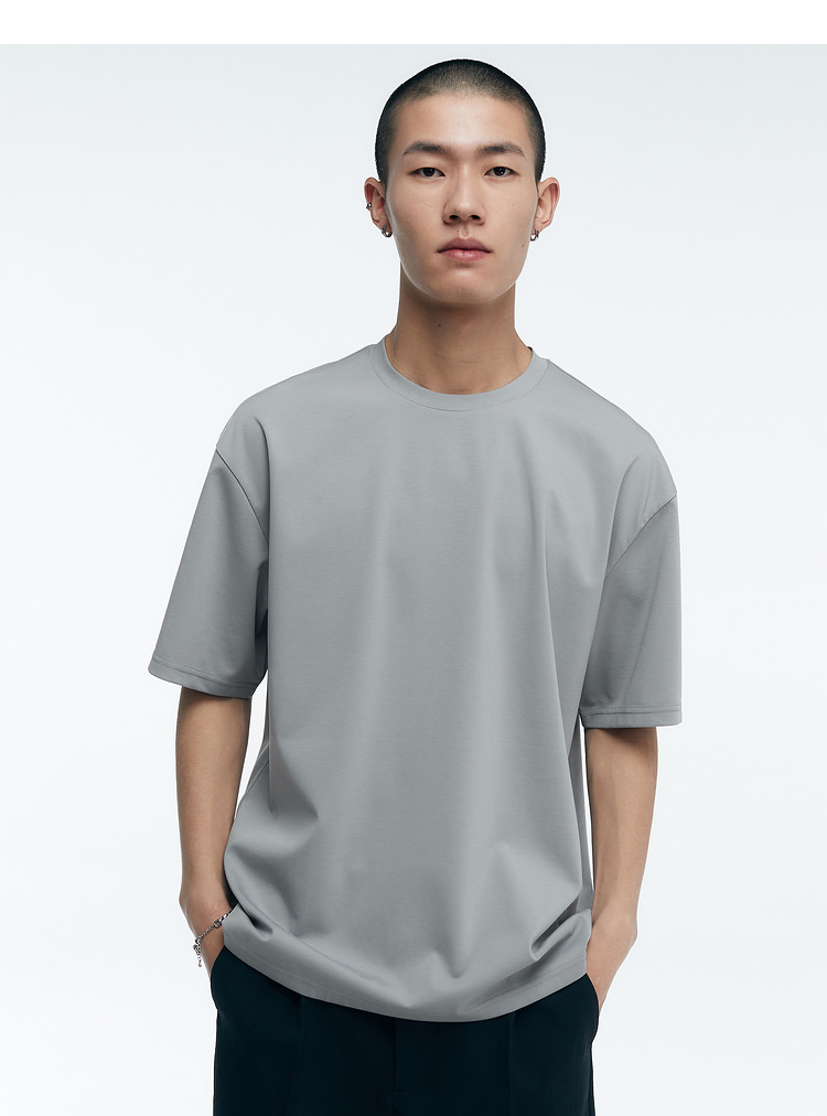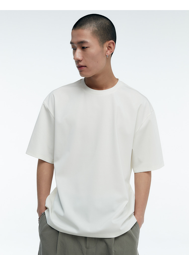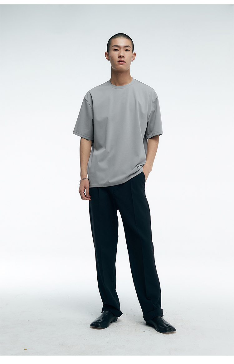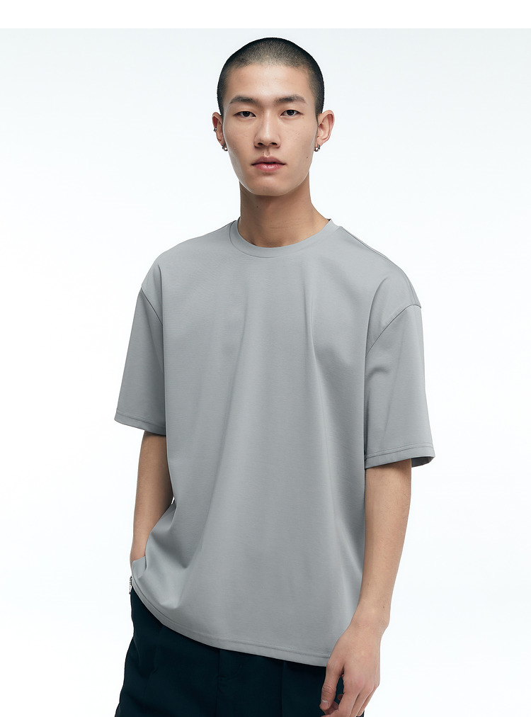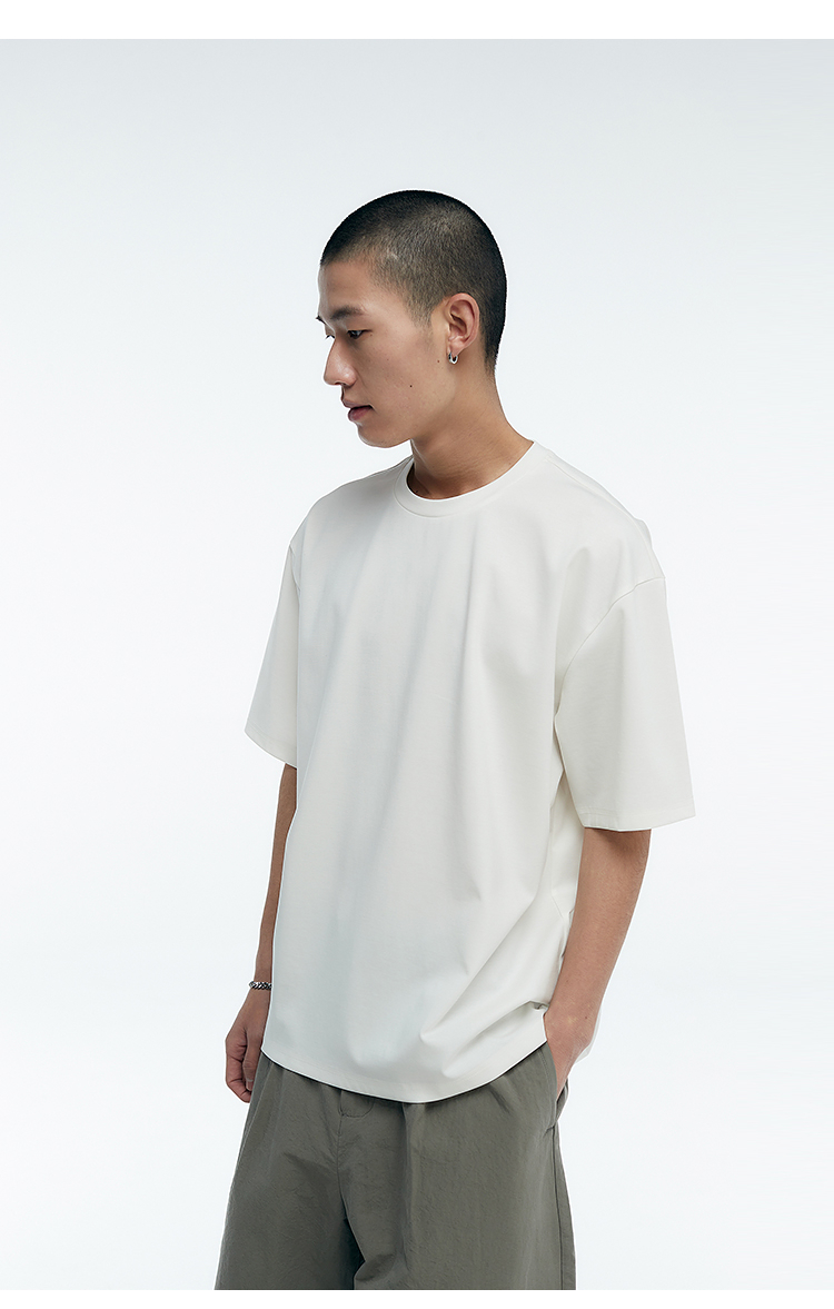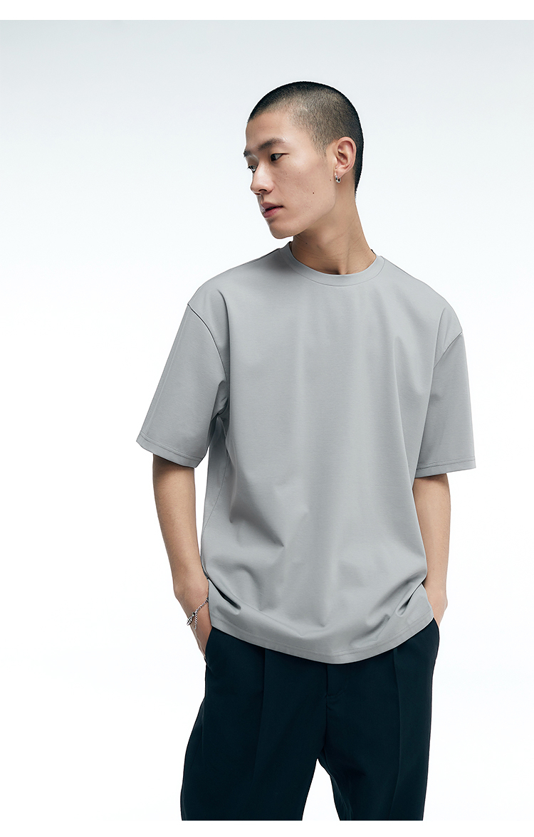 棉仓3431001002LAB+质感丝滑圆领直筒微宽松短袖