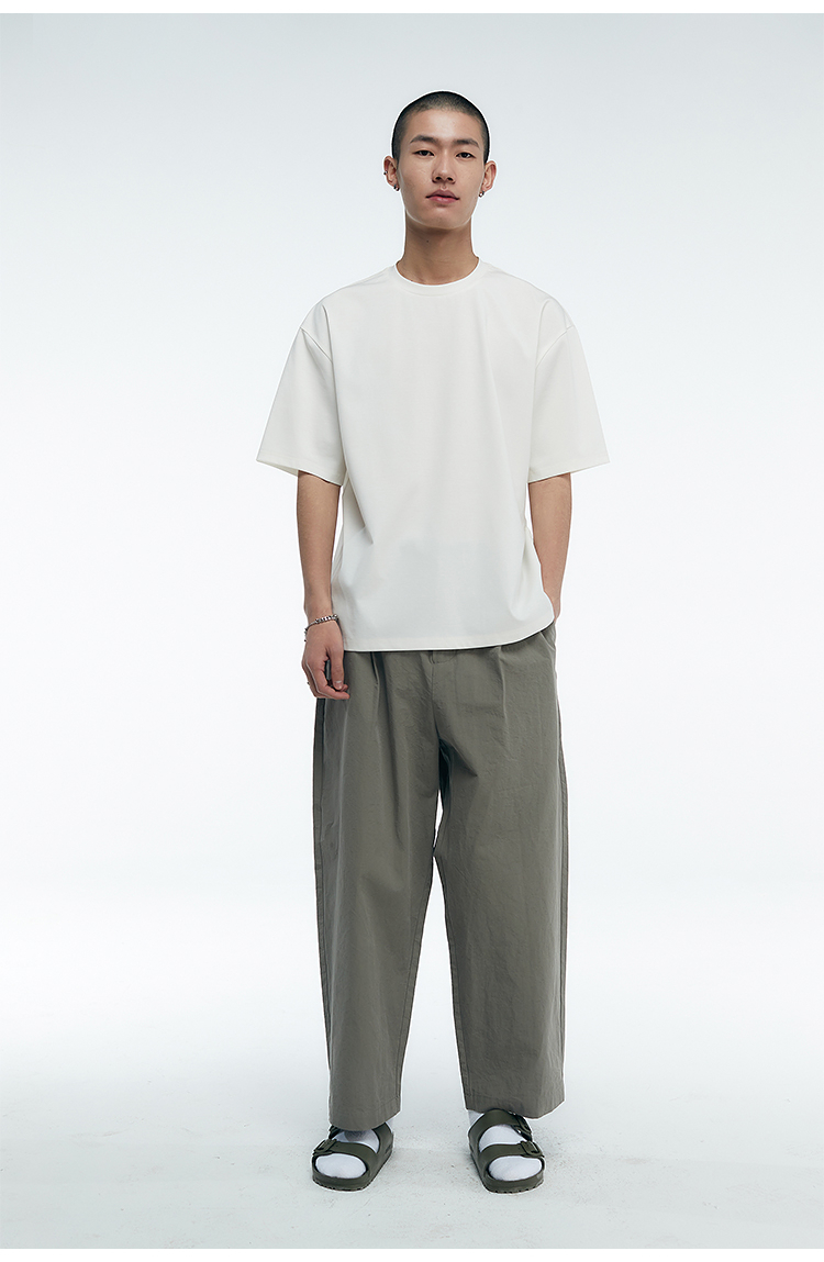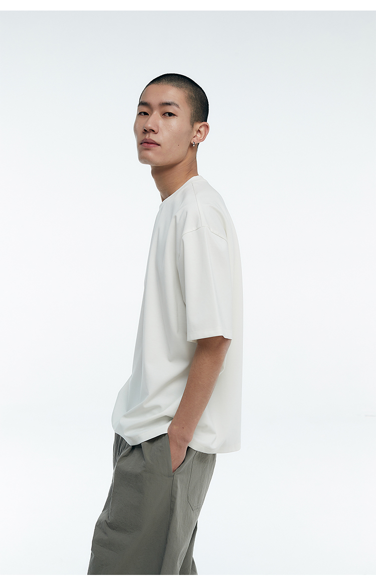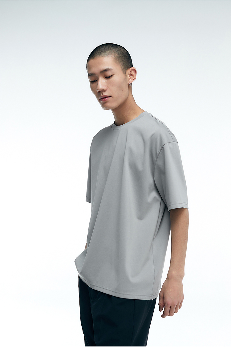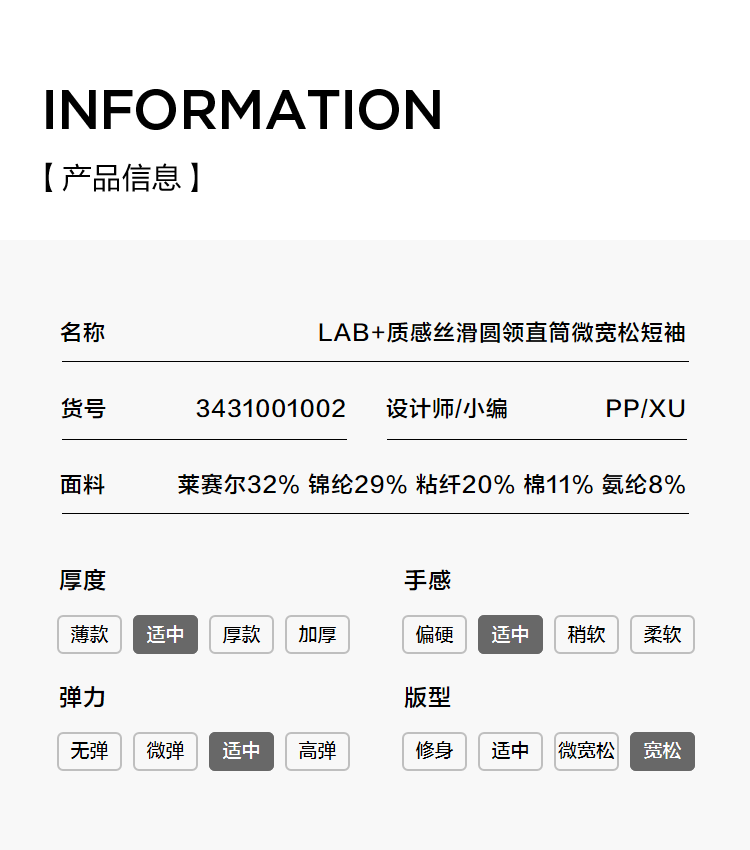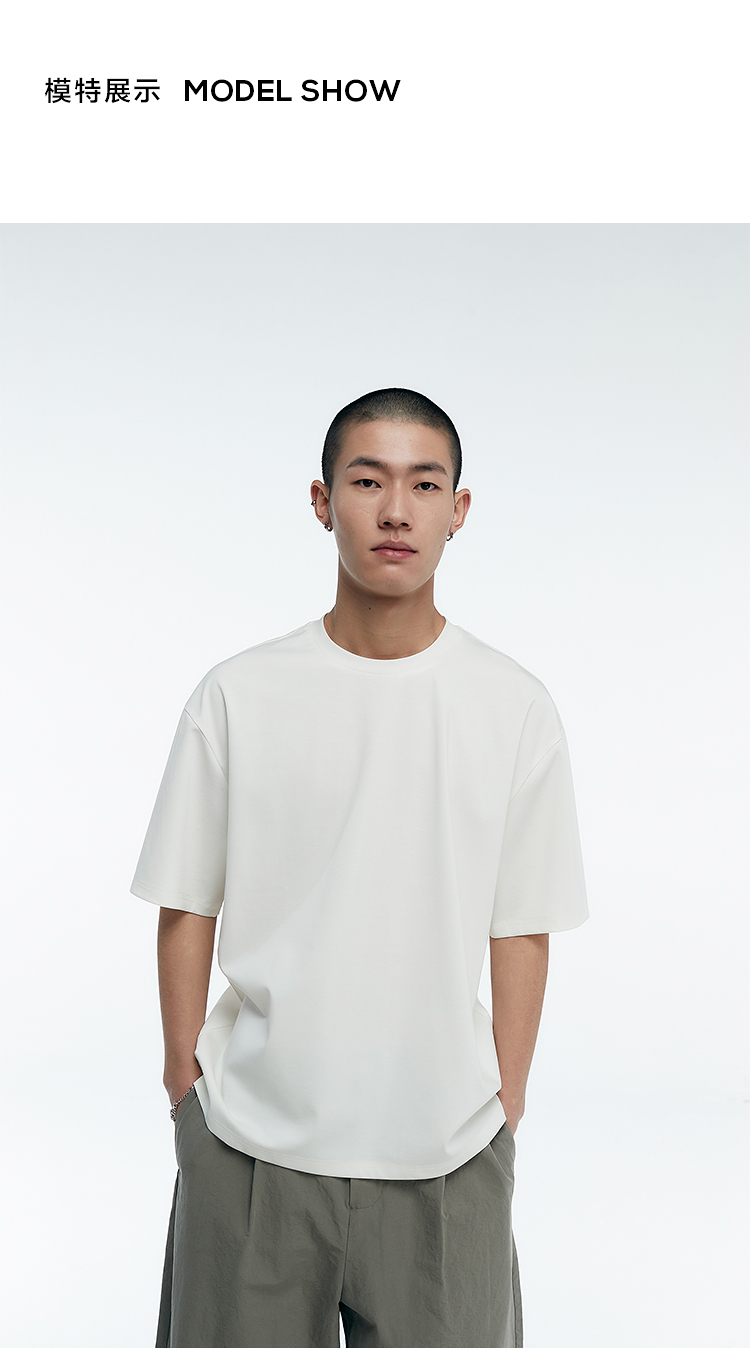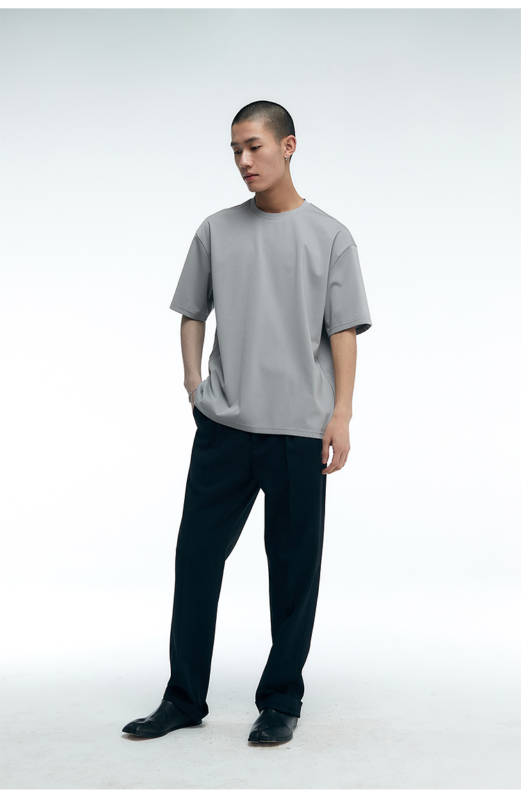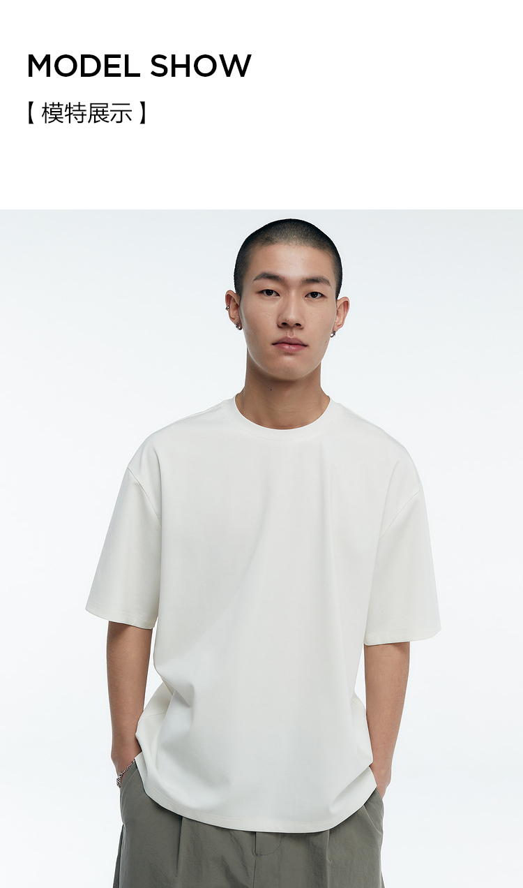 棉仓3431001002LAB+质感丝滑圆领直筒微宽松短袖