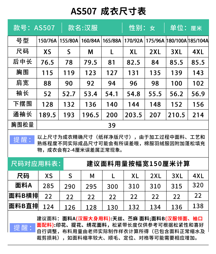裁缝学苑AS507明制琵琶袖交领汉服纸样女装上衣版型图纸样板