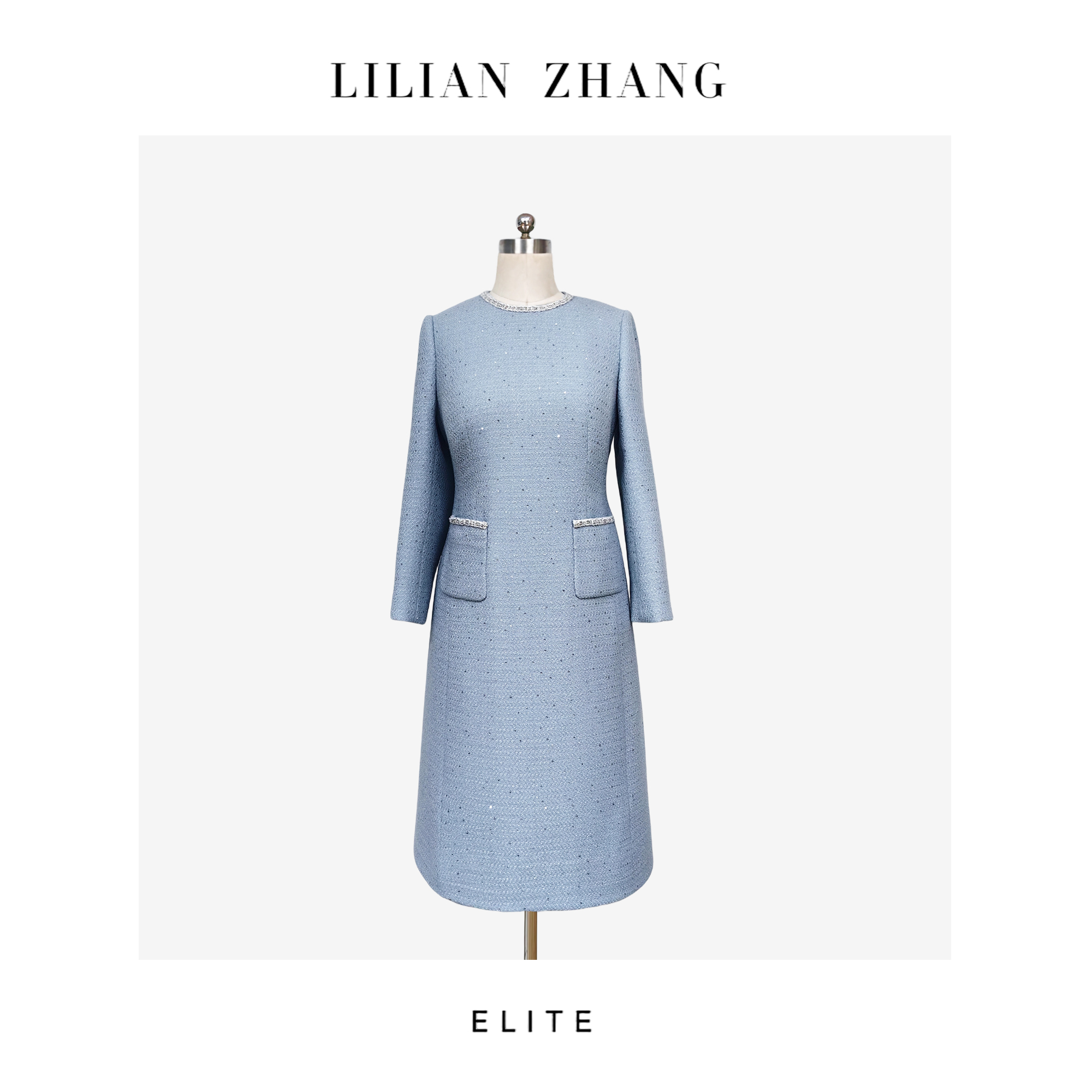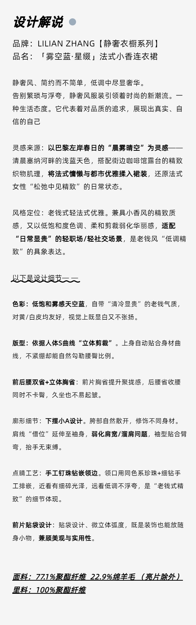 “定制”静奢风 、千鸟知奢、雾空蓝·星缀法式羊毛小香连衣裙 2501112