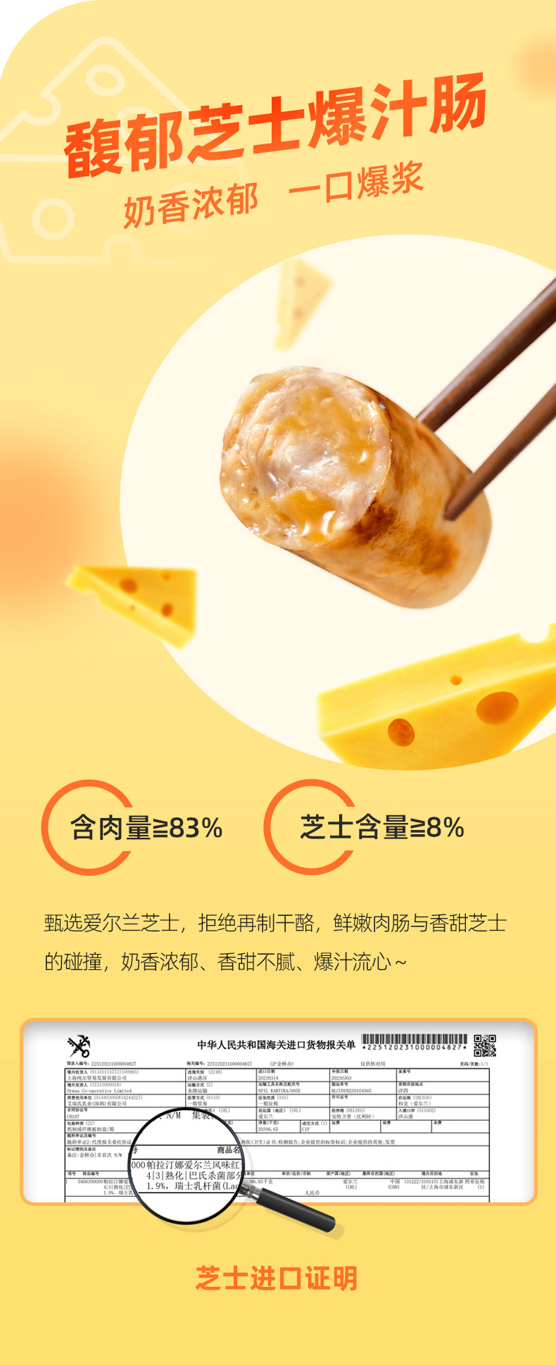 馥郁芝士爆汁肠额外添加芝士(干酪))