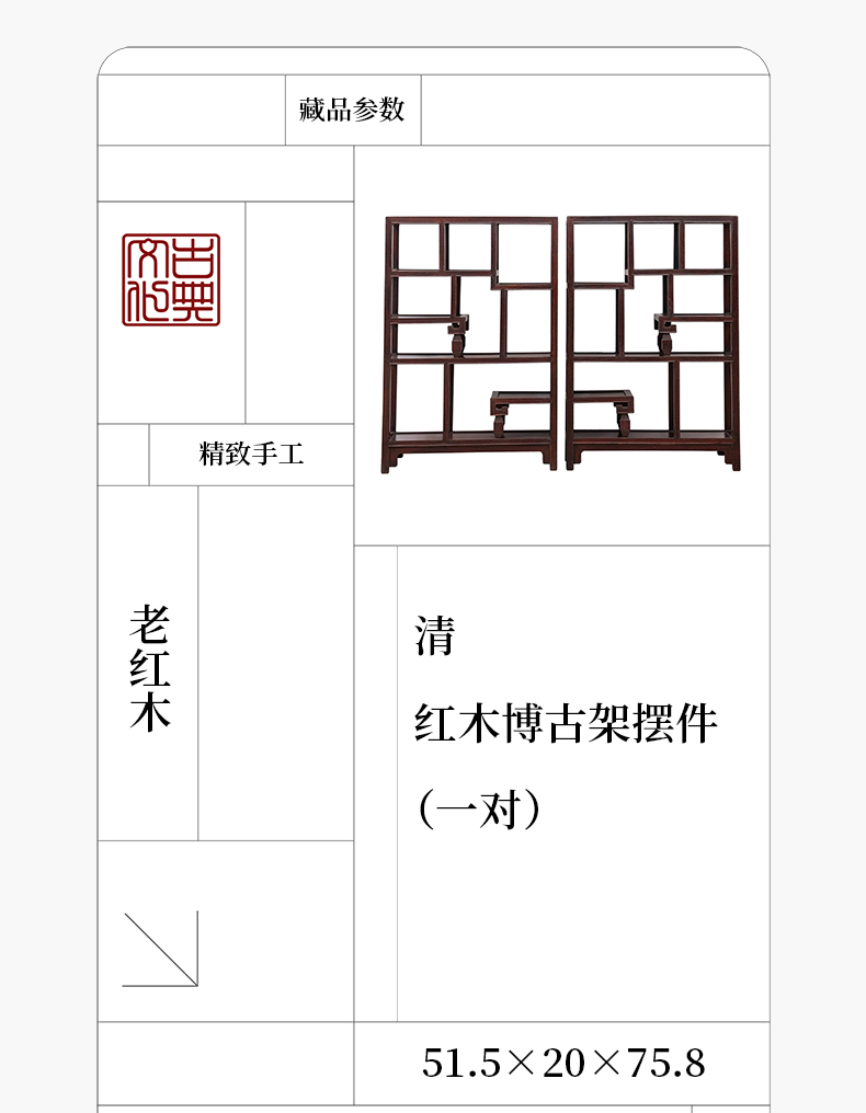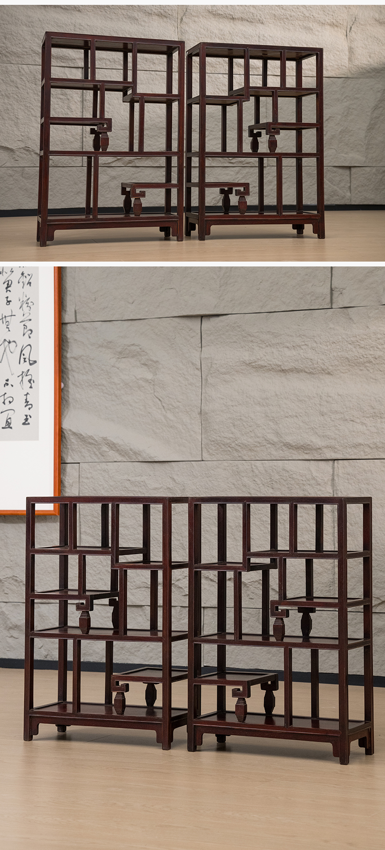 清 红木博古架摆件(一对)