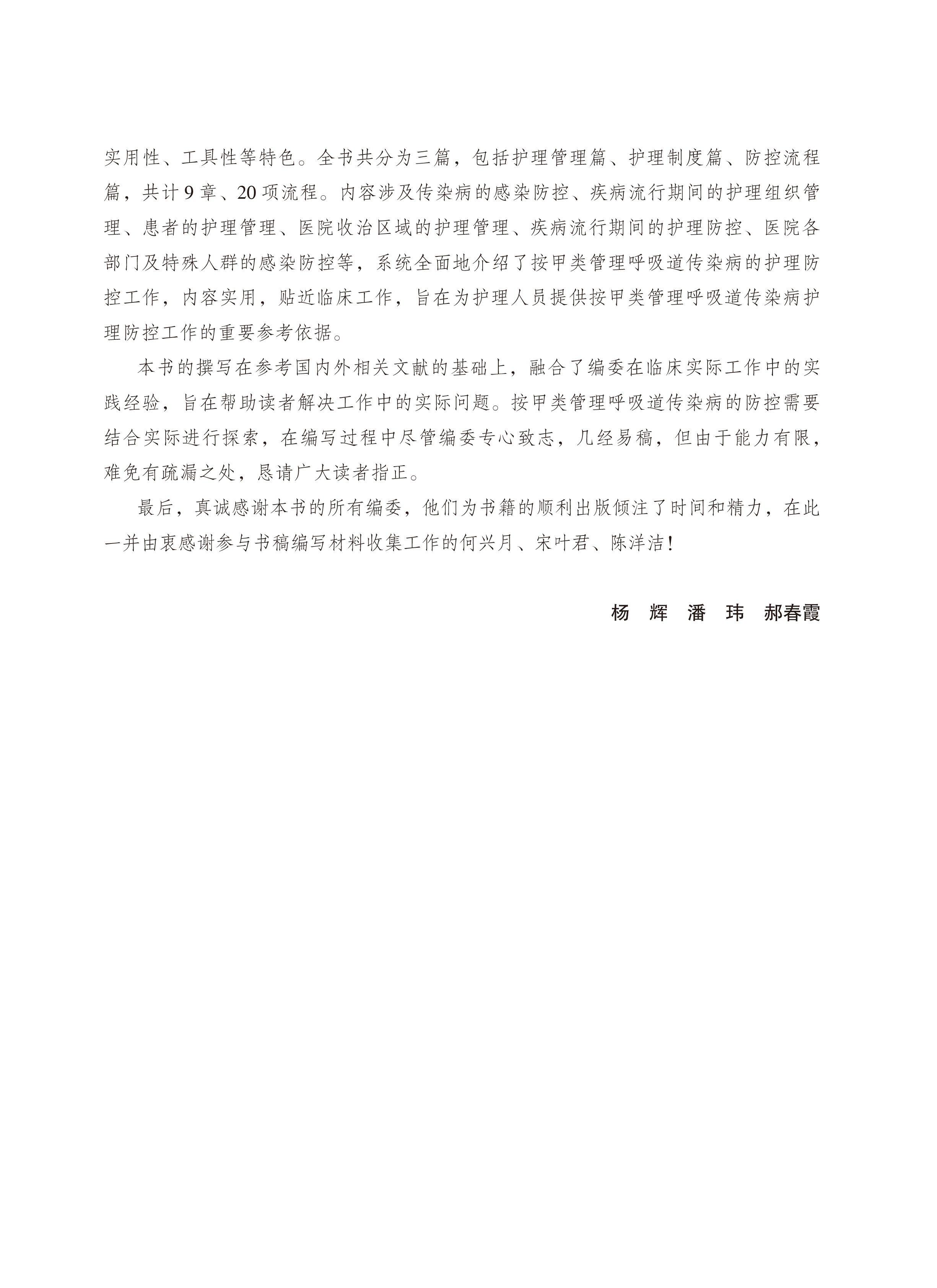 按甲类管理呼吸道传染病的护理防控 杨辉 潘玮 郝春霞 主编 北医社