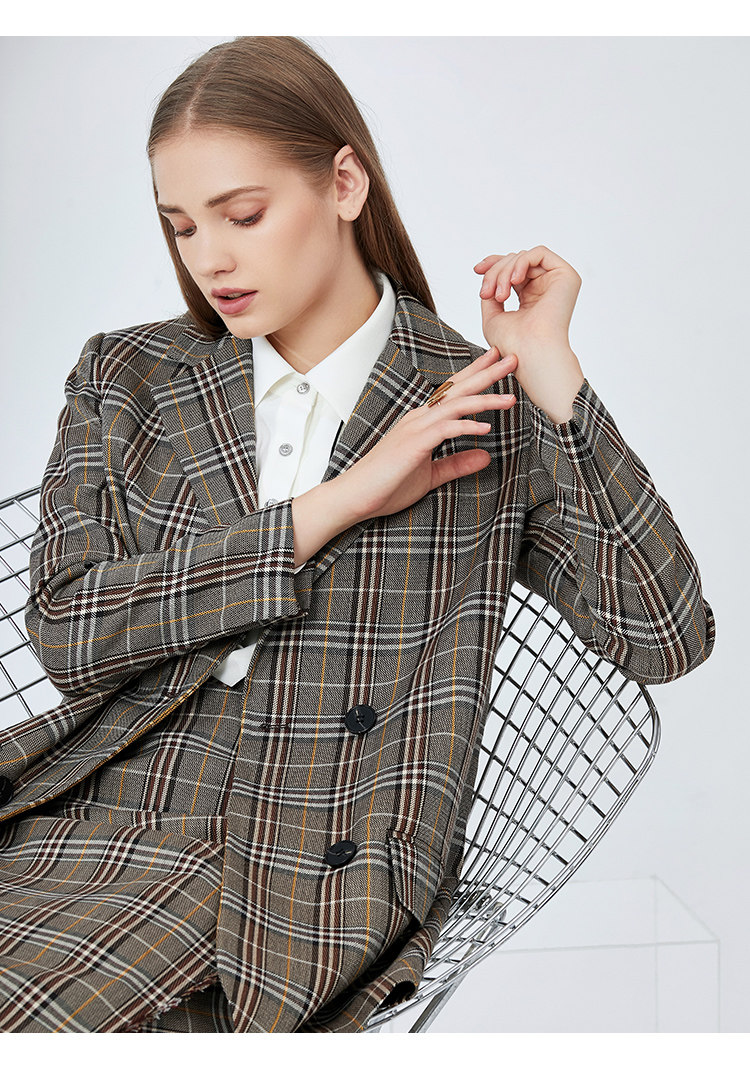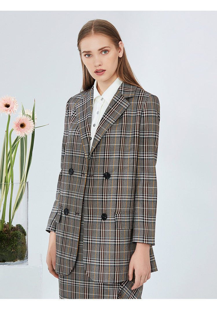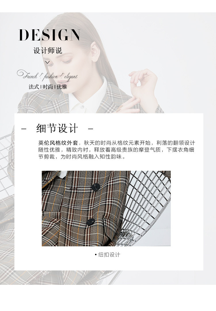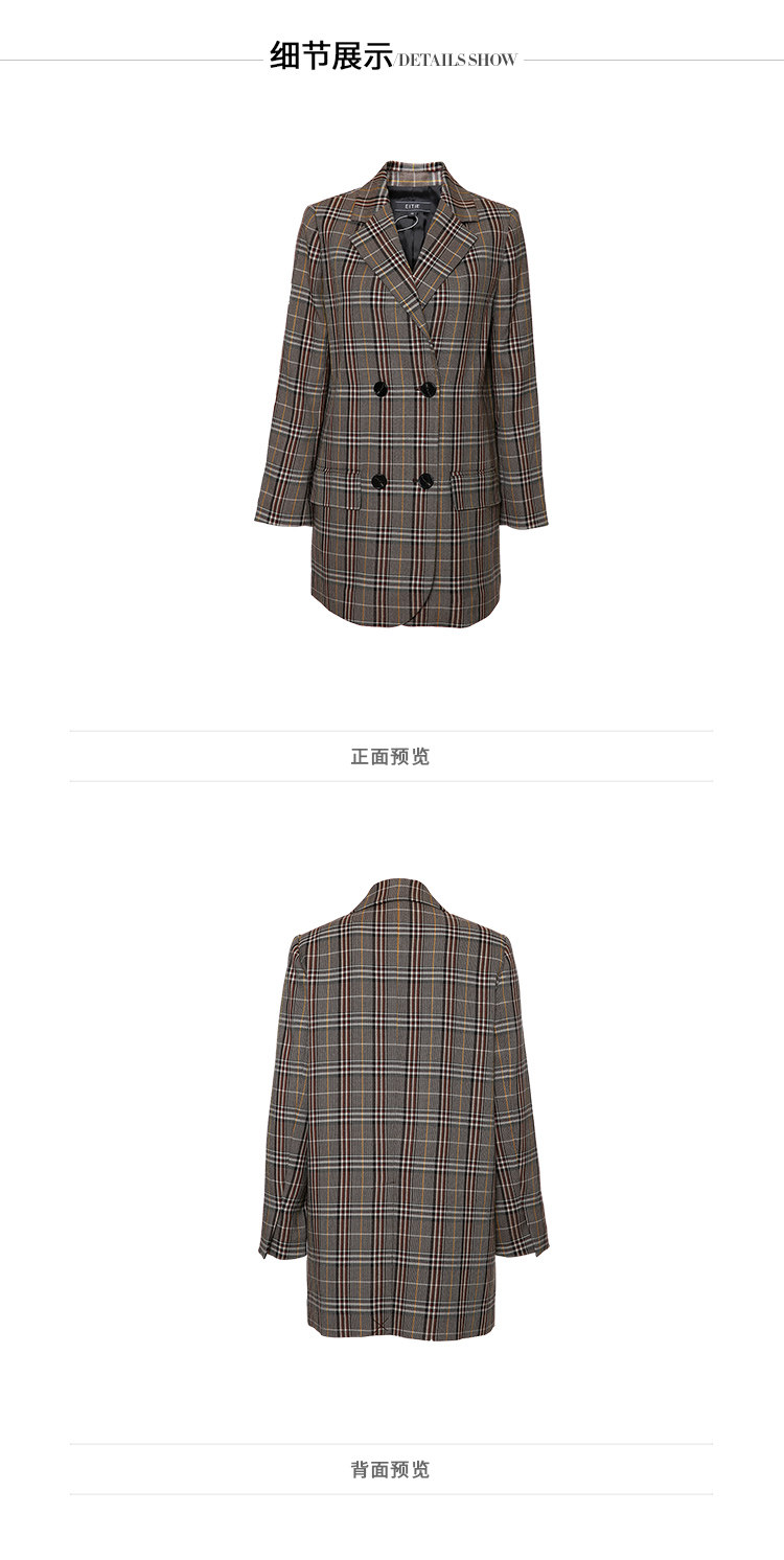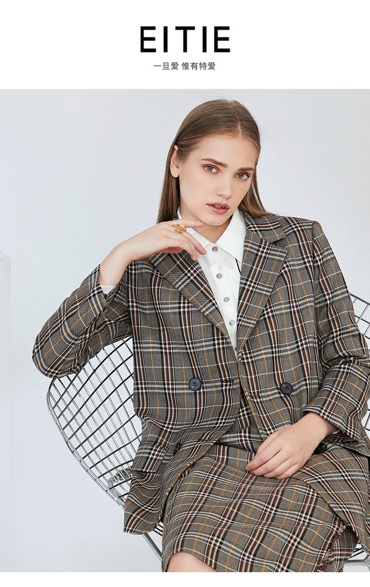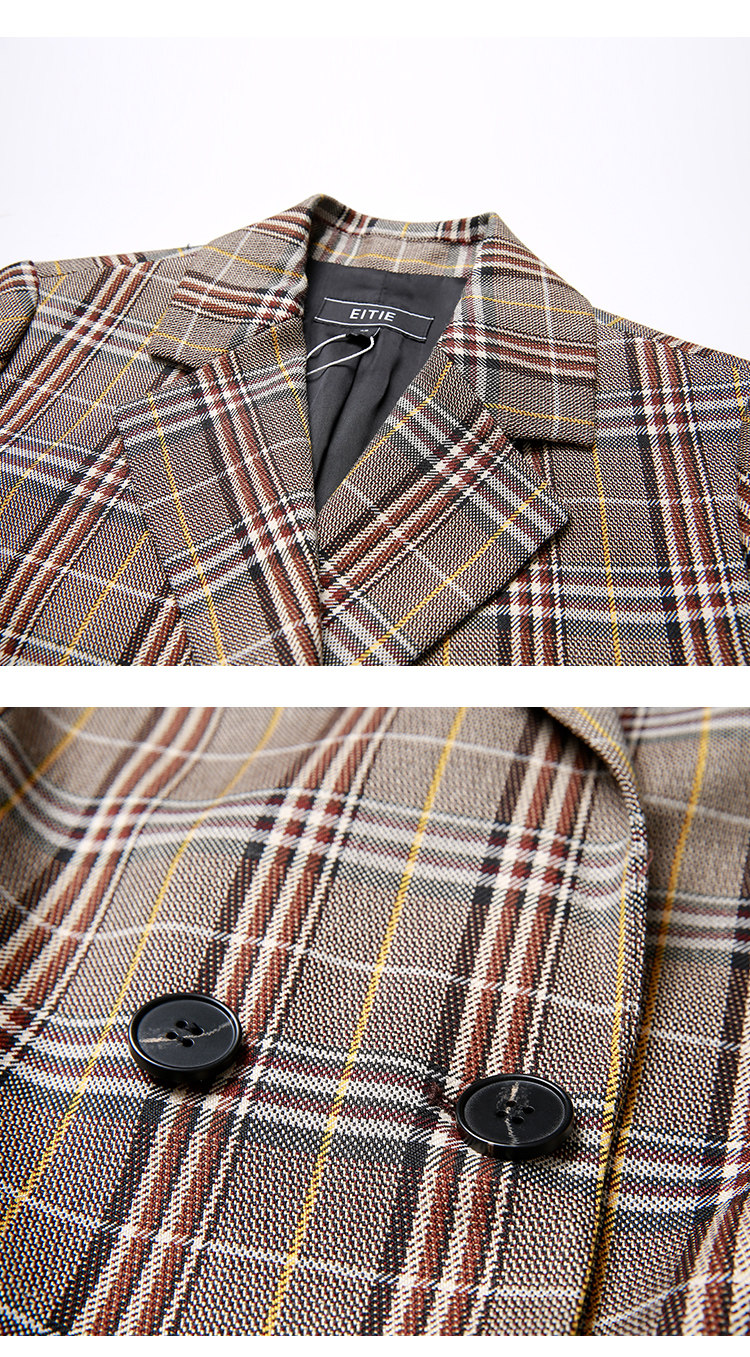 EITIE爱特爱秋季新款时尚复古英伦格子显瘦西装外套女中款6003715