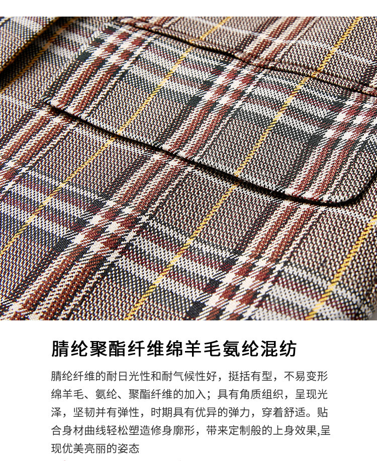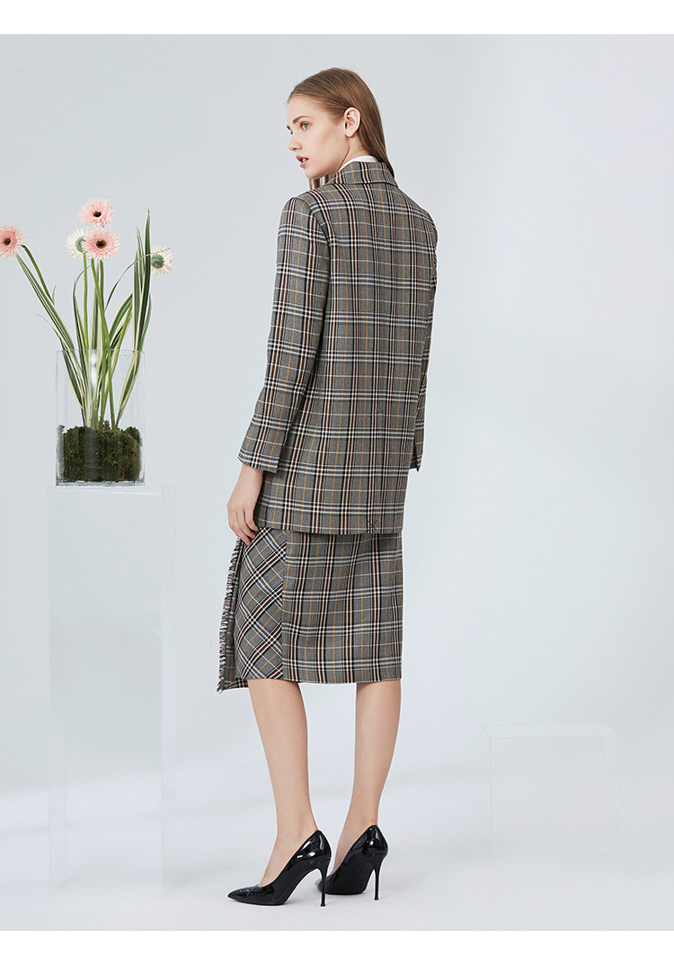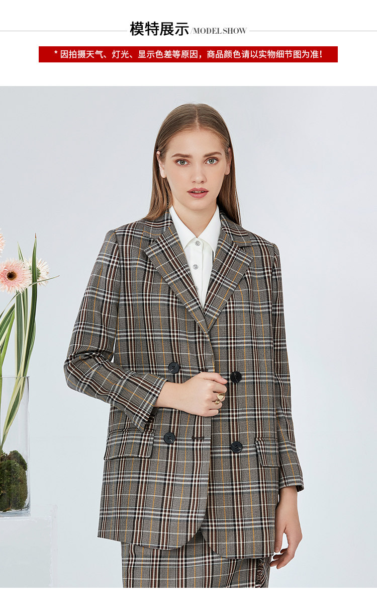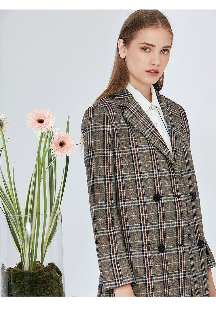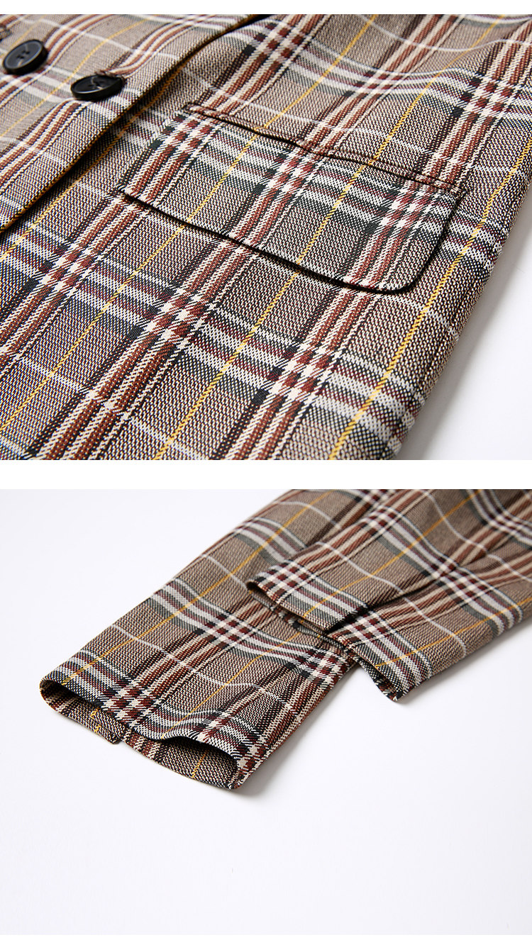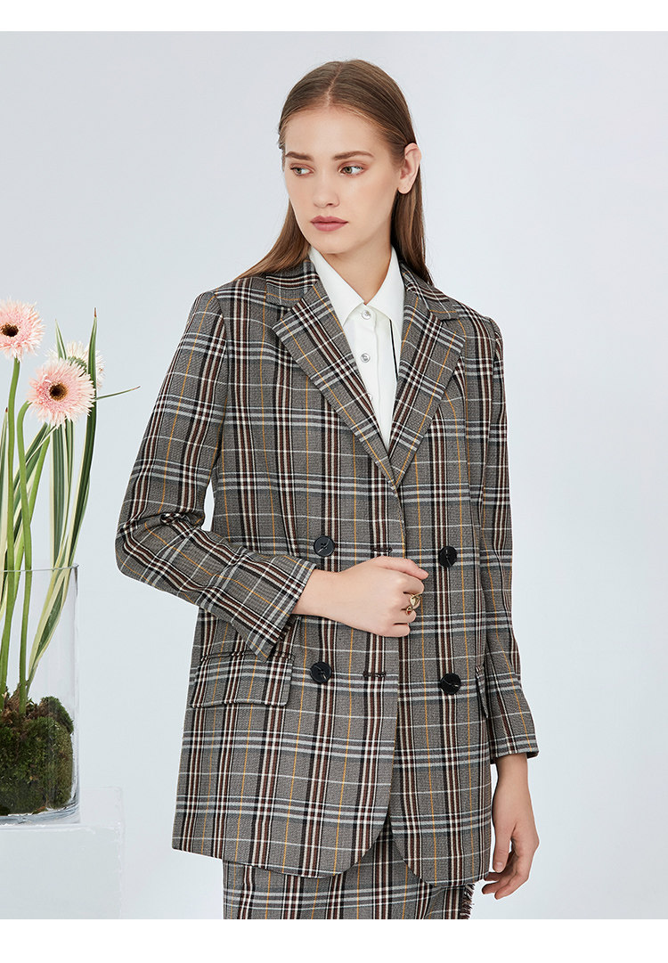 EITIE爱特爱秋季新款时尚复古英伦格子显瘦西装外套女中款6003715