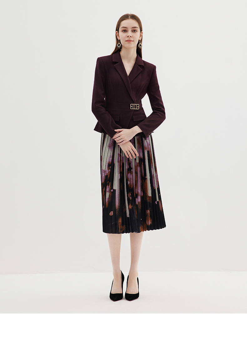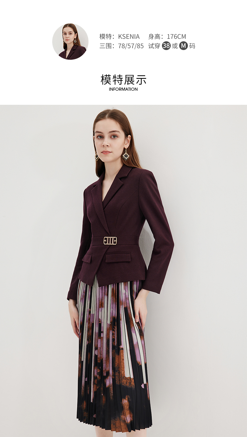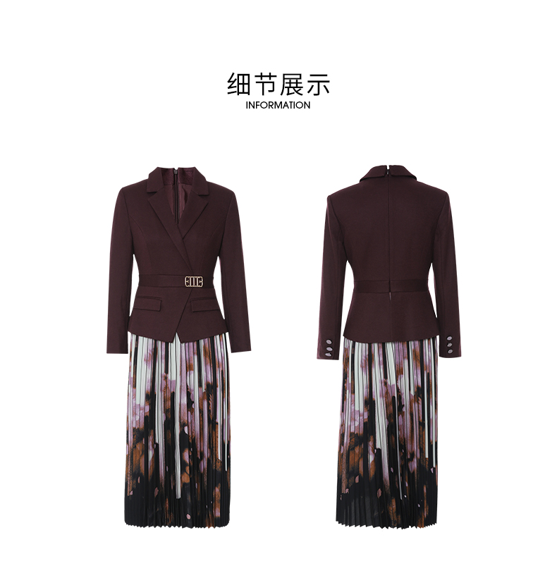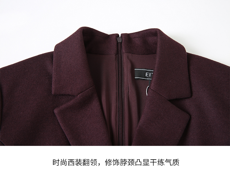 EITIE爱特爱冬季新款高腰修身拼接优雅百褶裙摆假两件连衣裙7207931