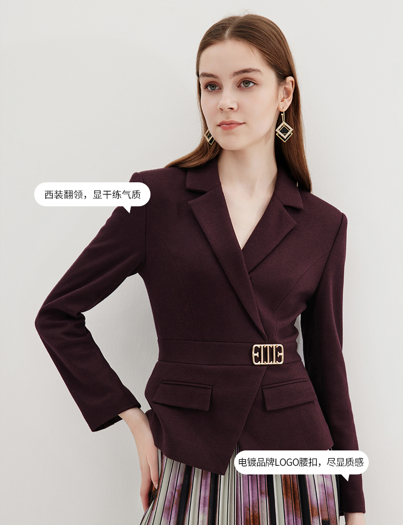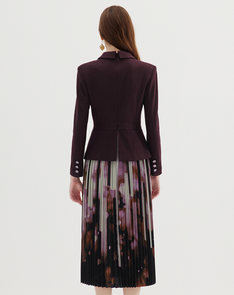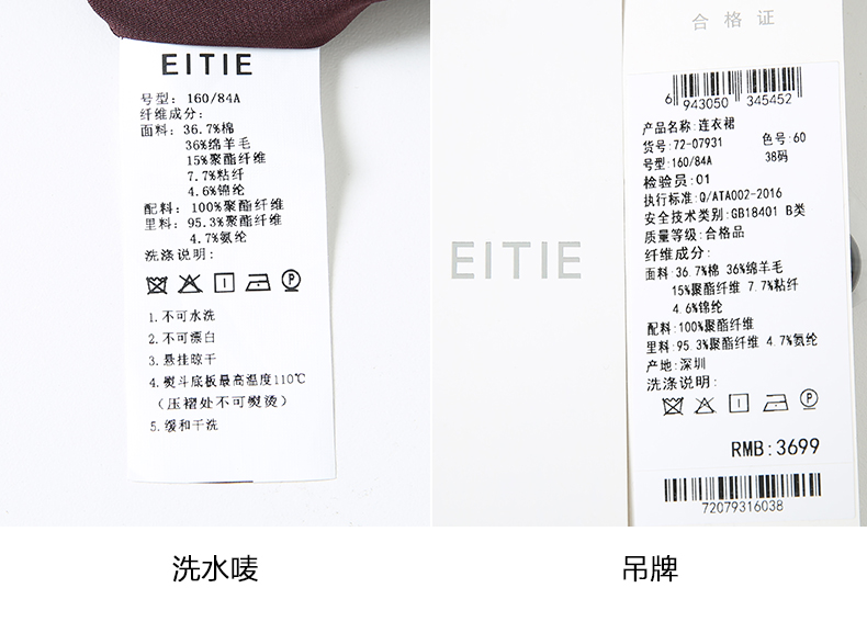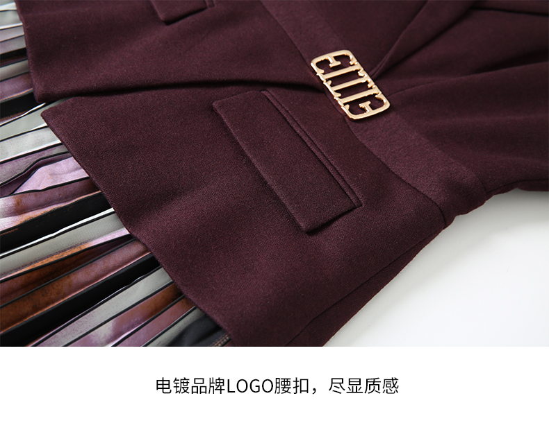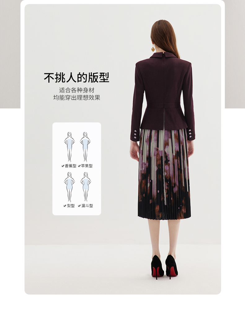 EITIE爱特爱冬季新款高腰修身拼接优雅百褶裙摆假两件连衣裙7207931