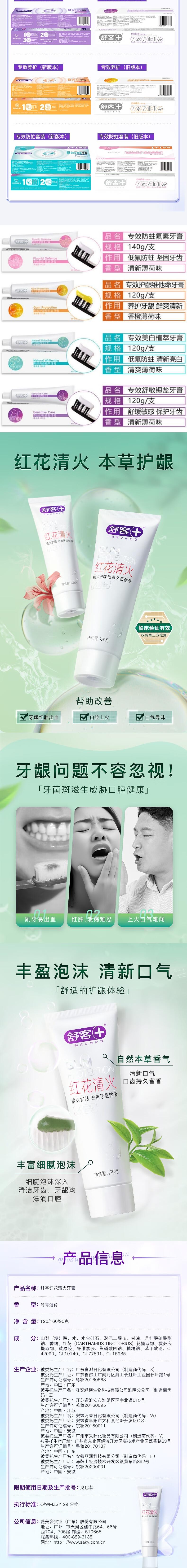 舒客 红花清火牙膏120g*1支+专效美白植萃牙膏120g*1支 skyghm2r
