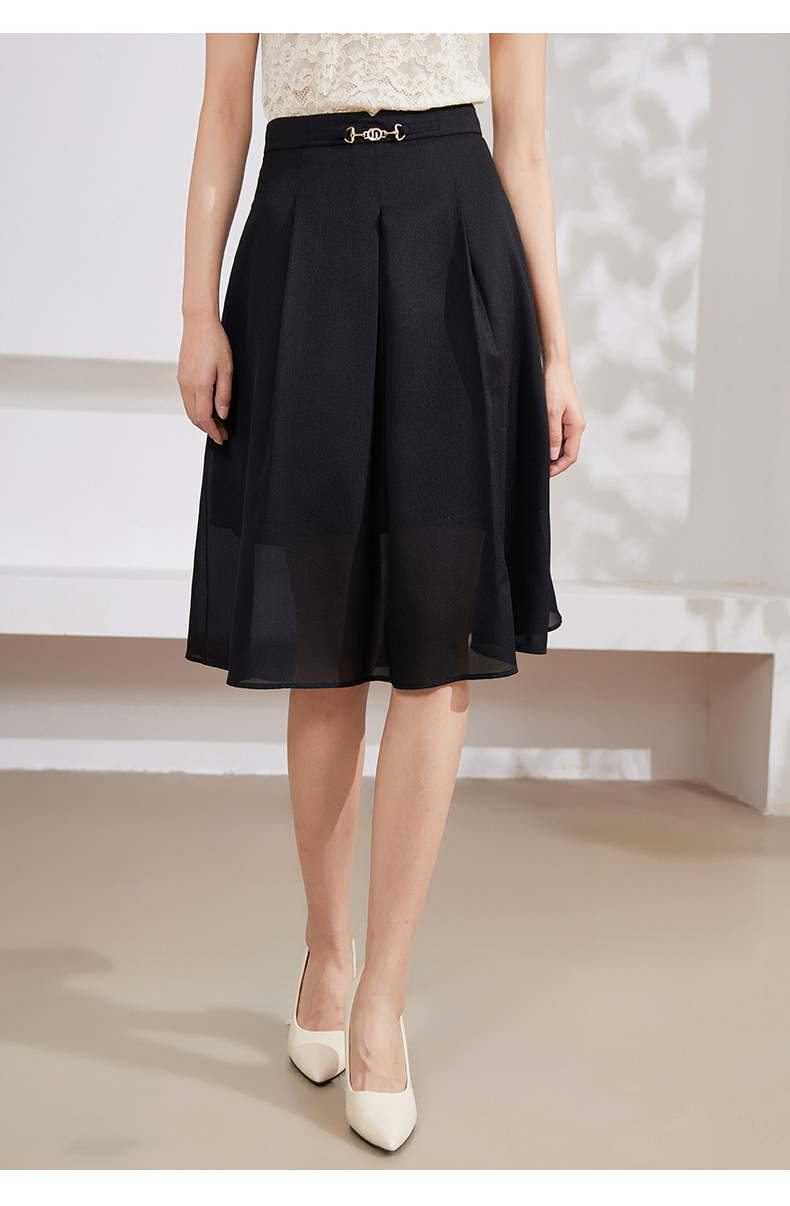 乔万尼黑色半身裙女新款夏a字裙显瘦垂坠感EM2D761