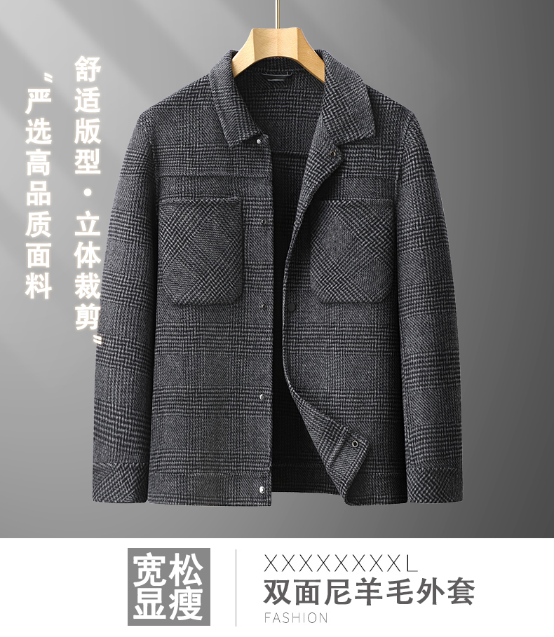 【新款DPX】大依优型翻领双面呢羊毛呢外套夹克男宽松加肥加大码上衣胖子休闲潮流