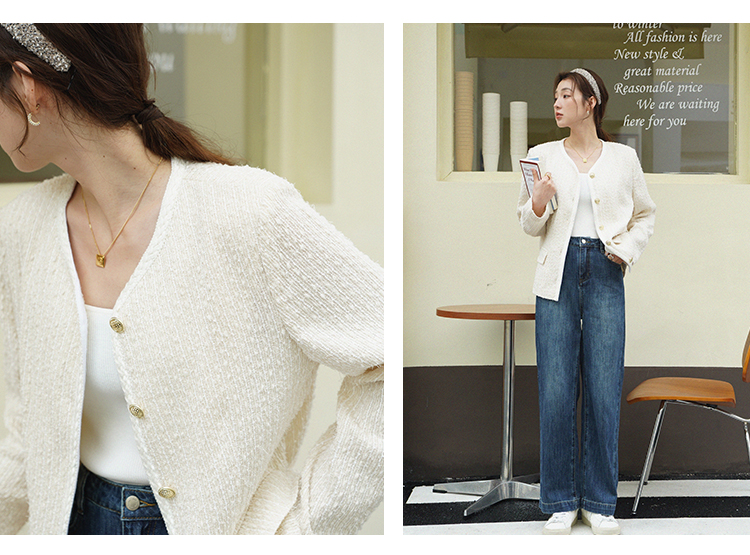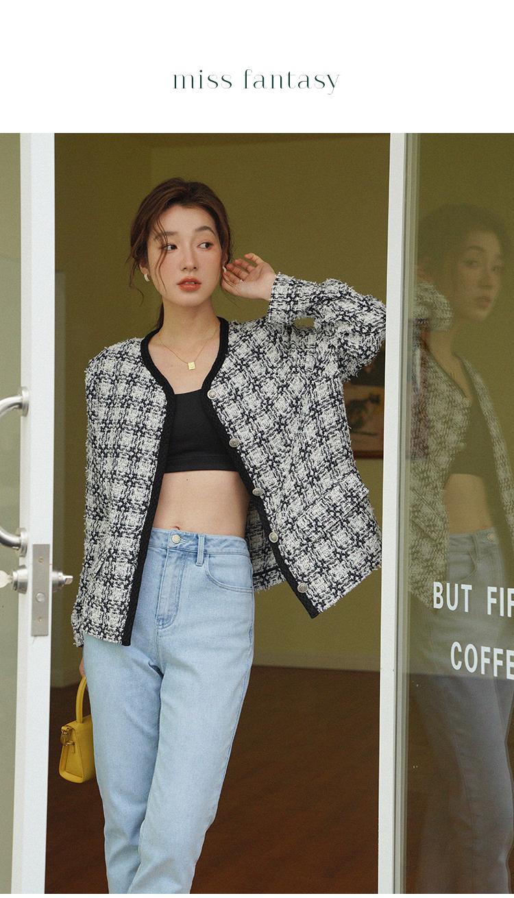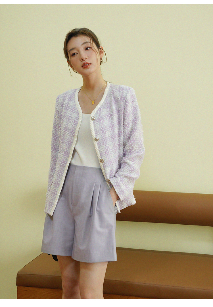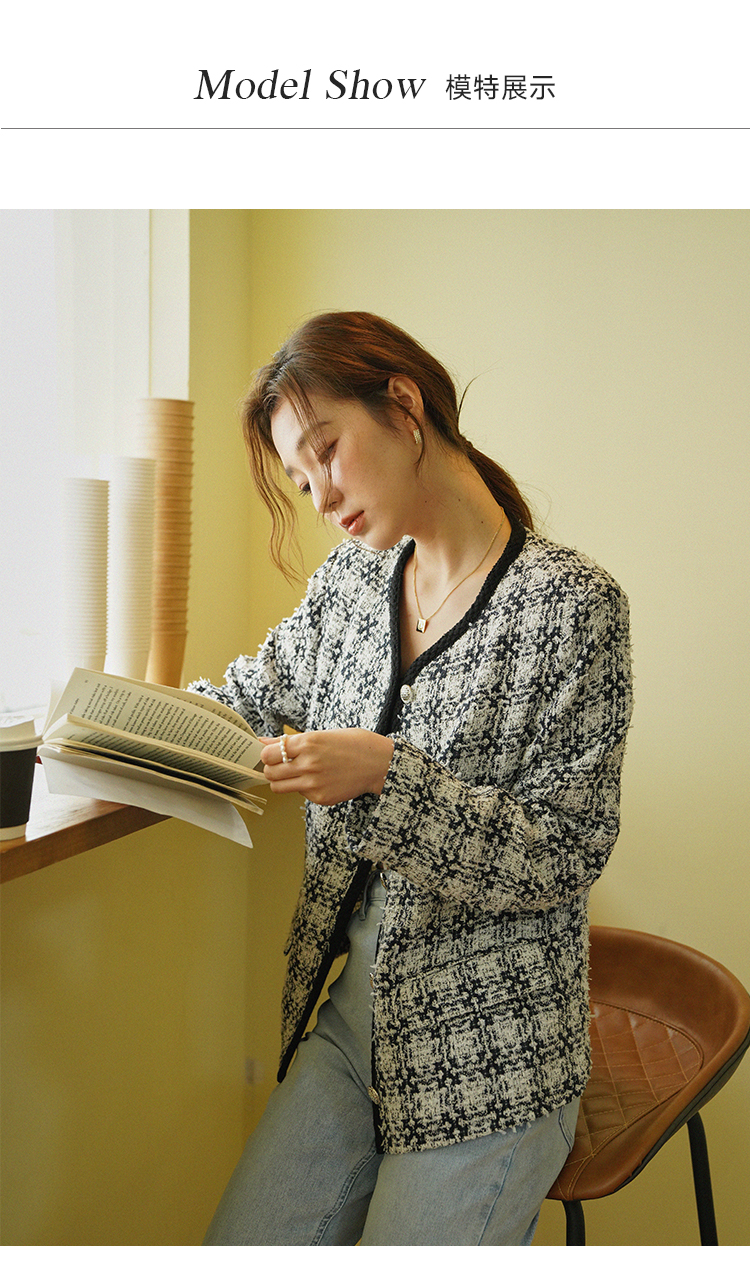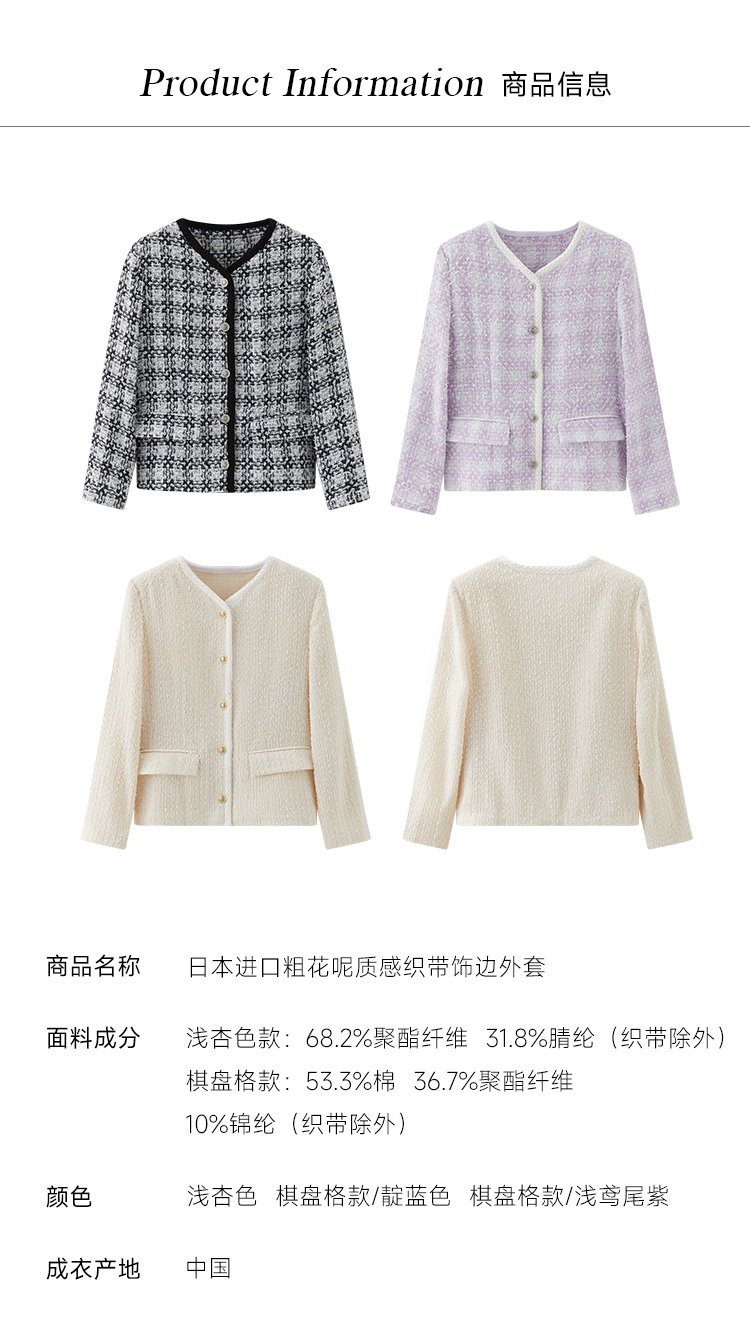 日本进口粗花呢质感织带饰边外套(三色)FO3183224