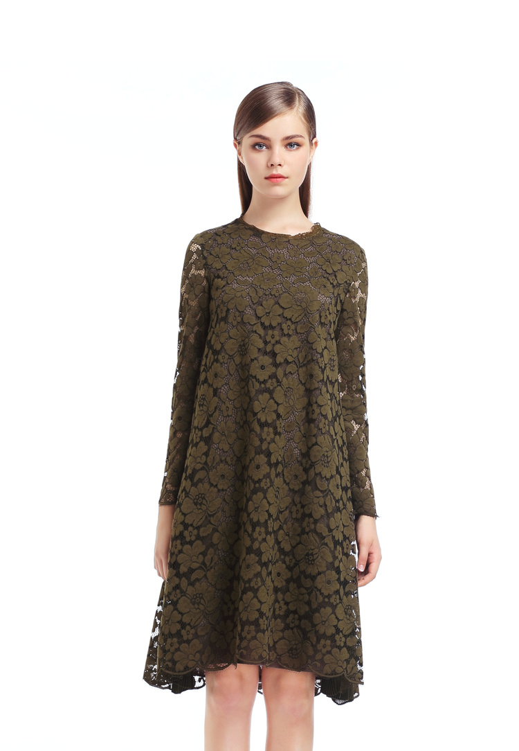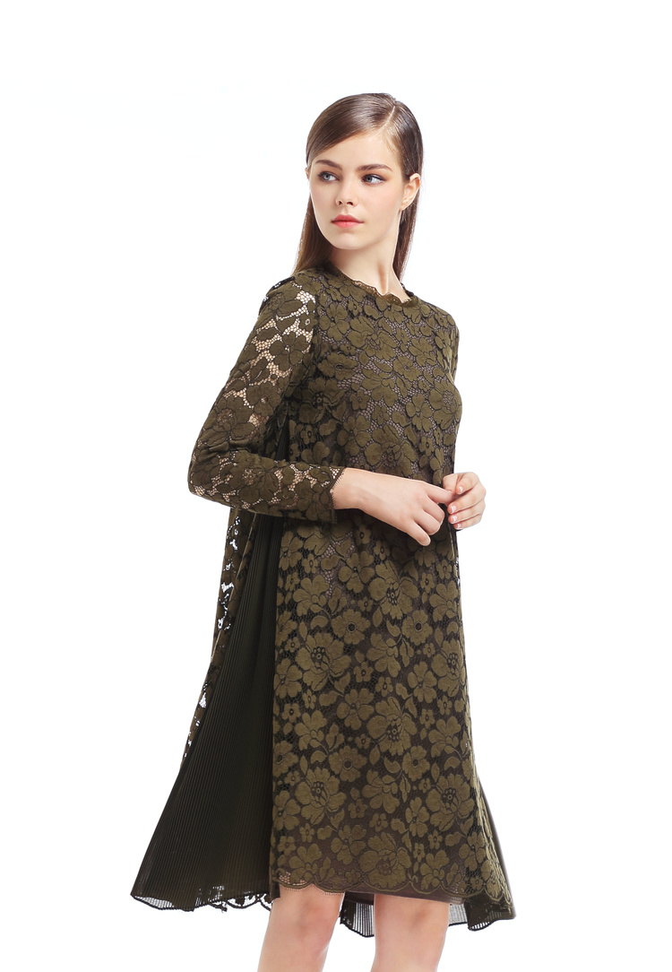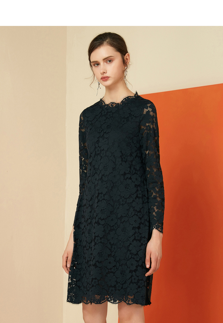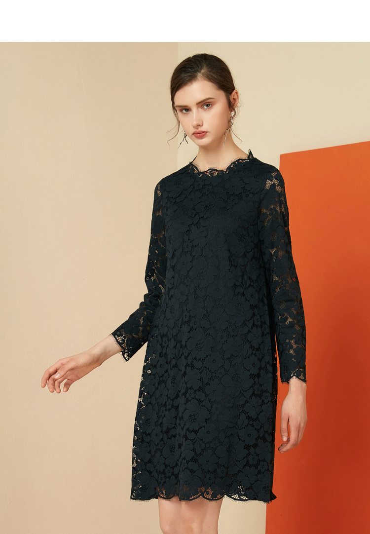 EITIE爱特爱女装春季纱网绣花假两件宽松镂空裙连衣裙5607335