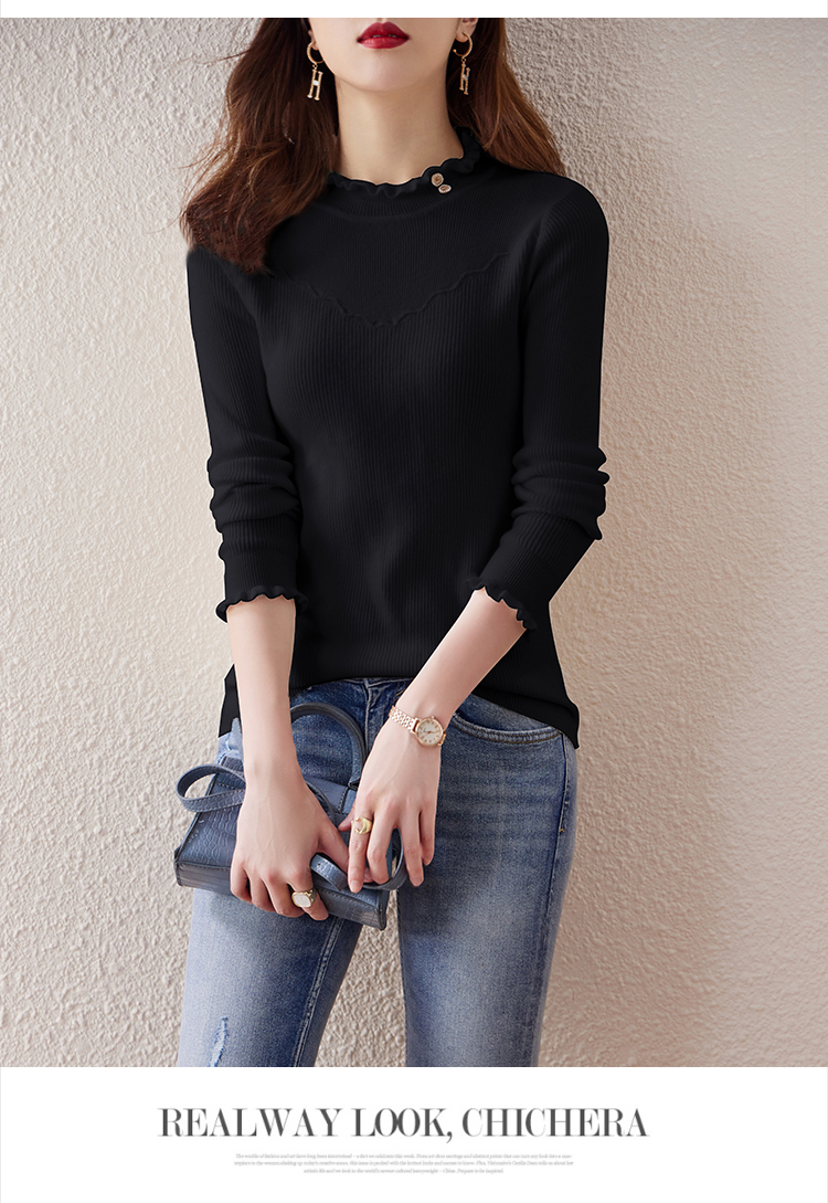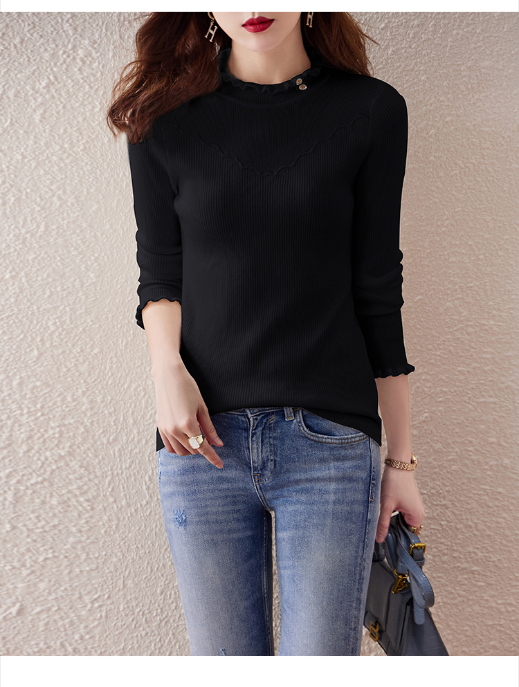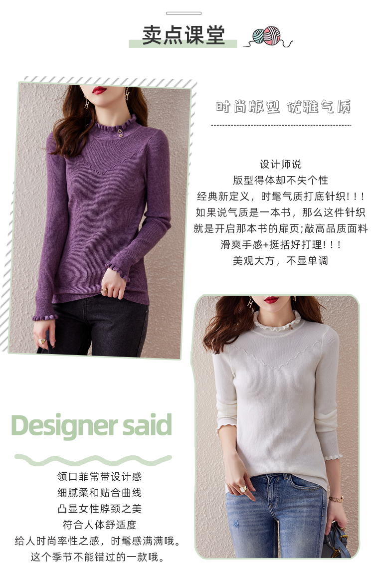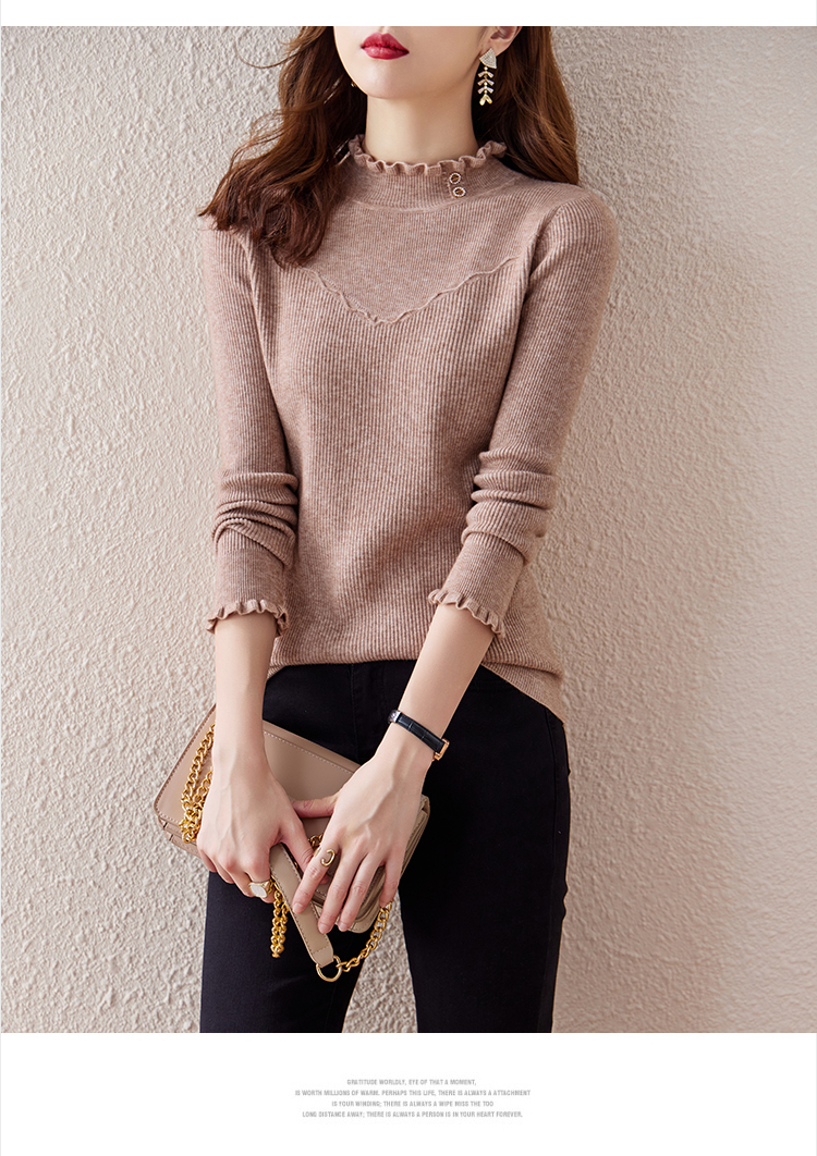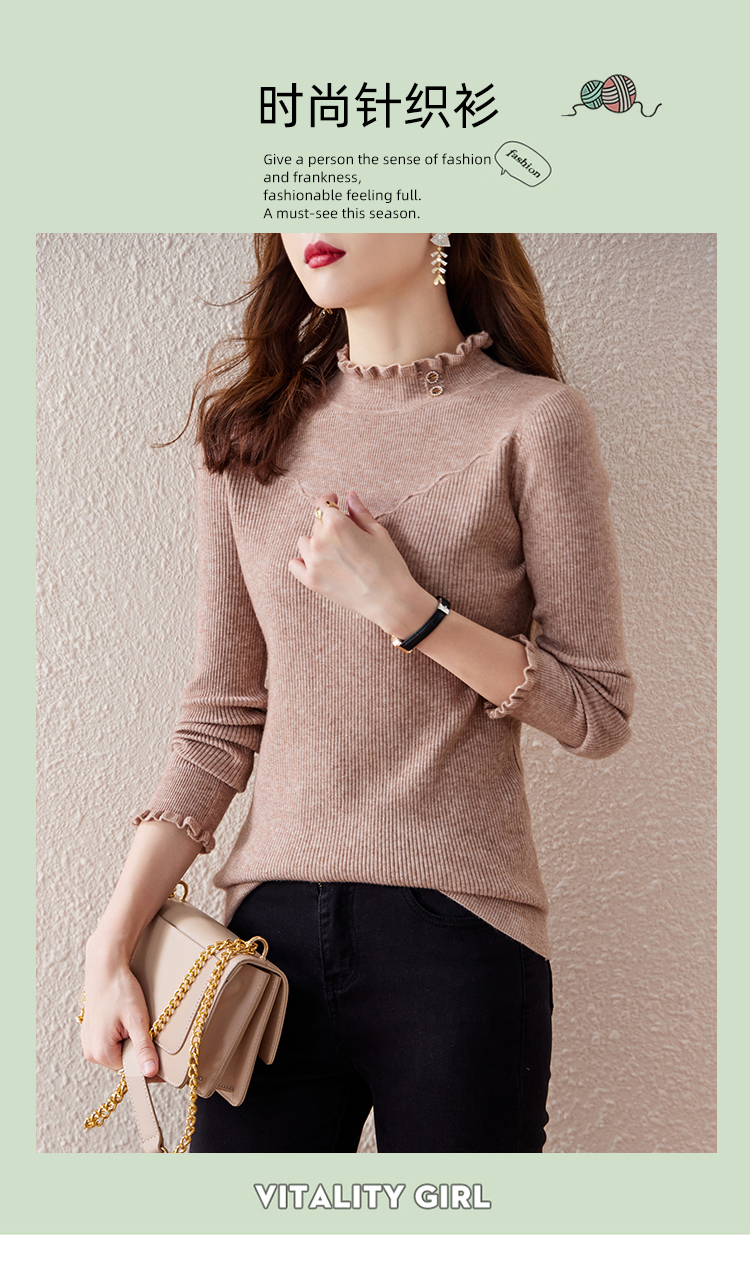 MZ 11252针织衫韩版百搭半高领木耳边T恤