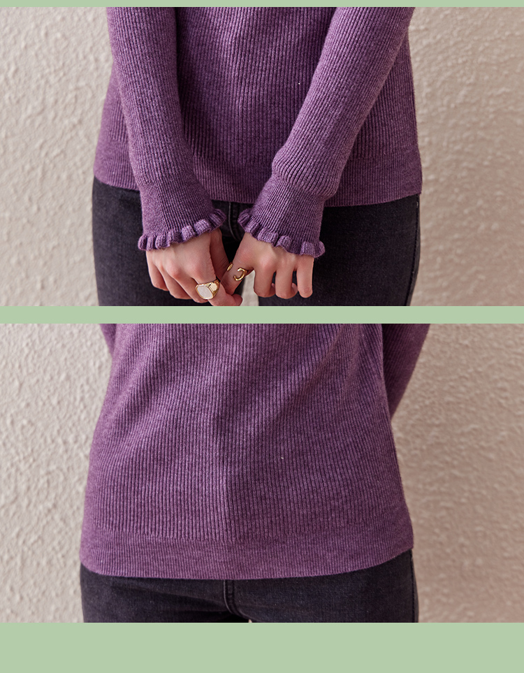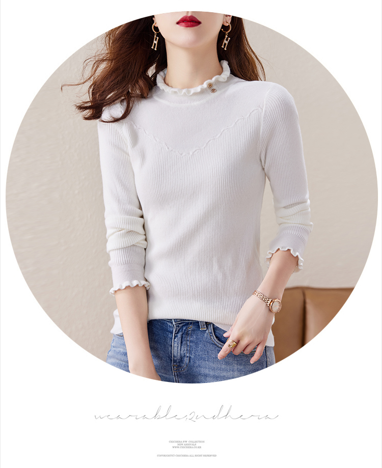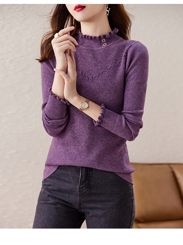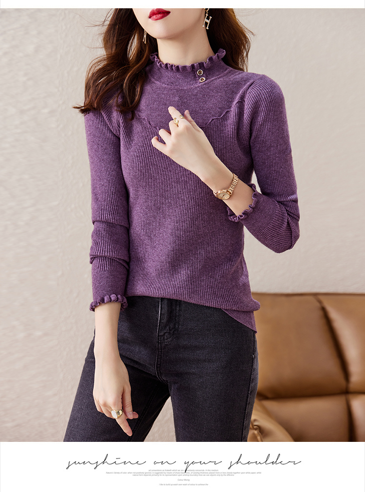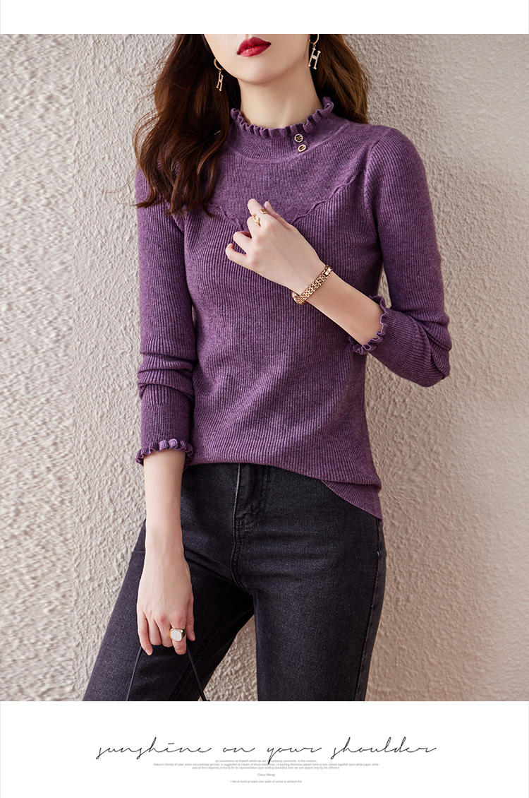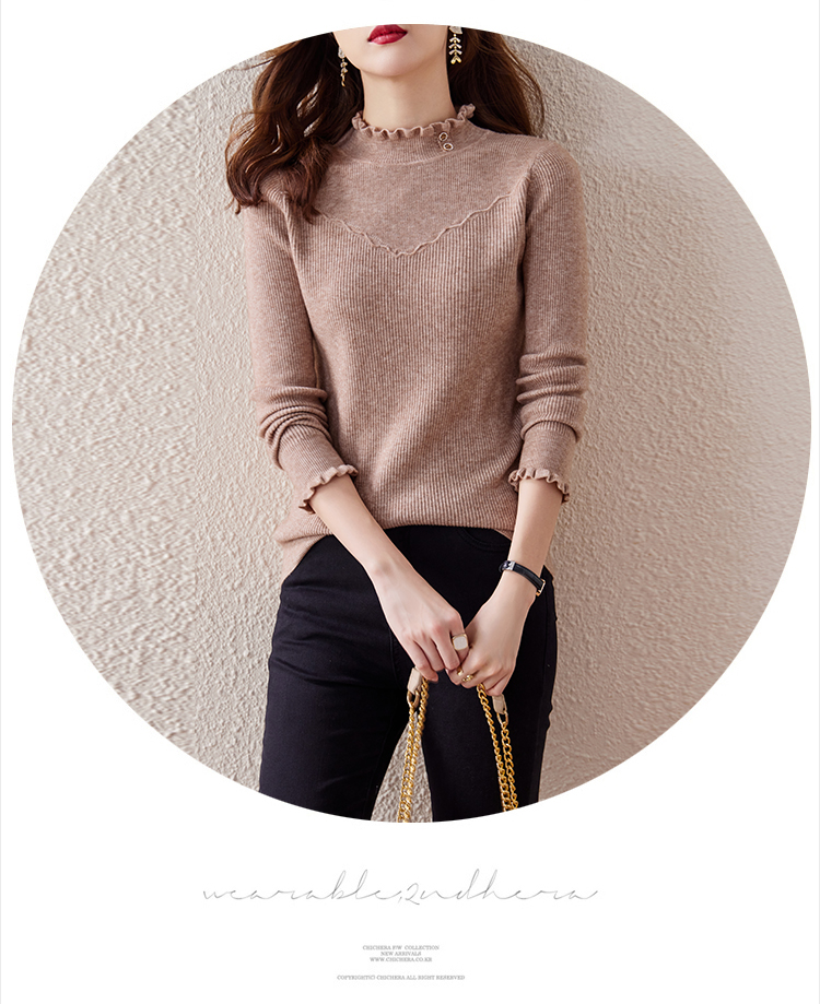 MZ 11252针织衫韩版百搭半高领木耳边T恤