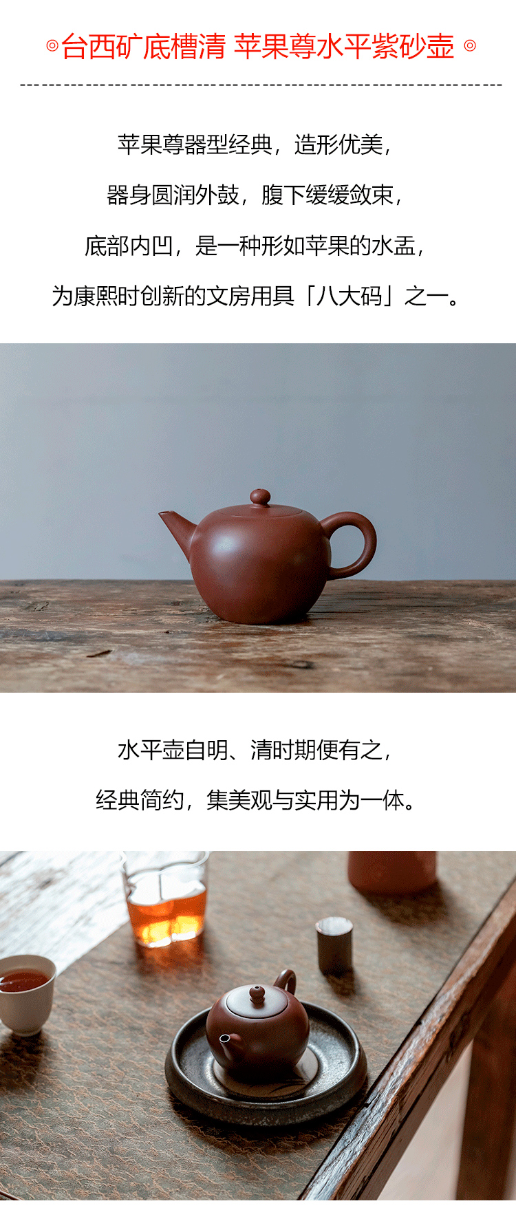 茶香记 润砂堂台西矿底槽清苹果尊水平紫砂壶130ml圆融泡茶壶茶具