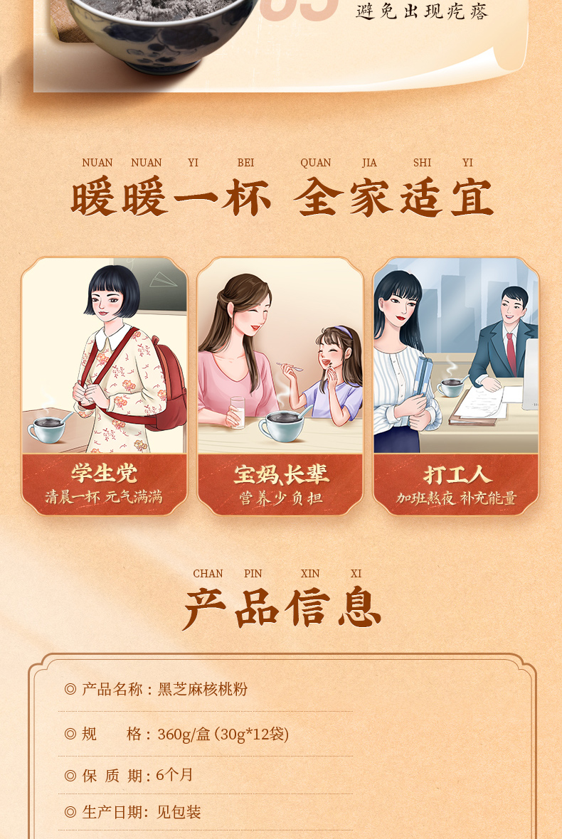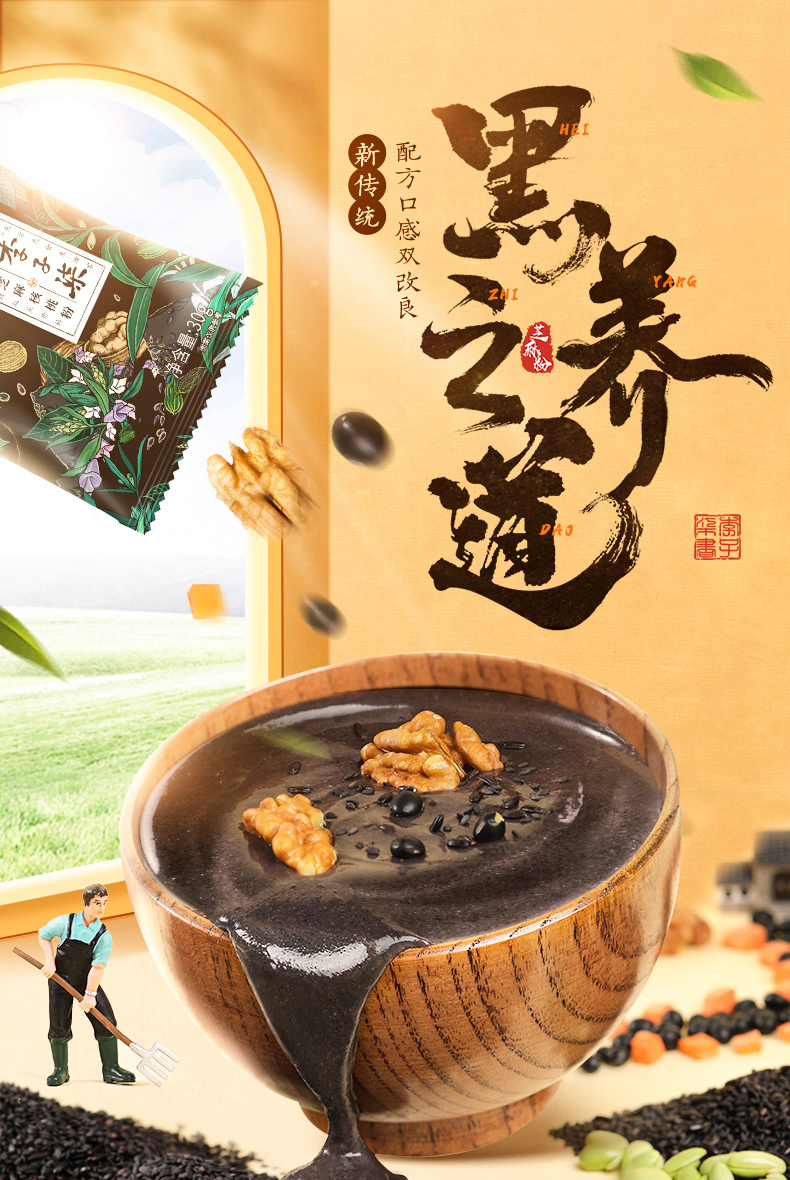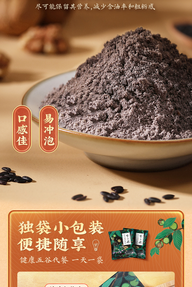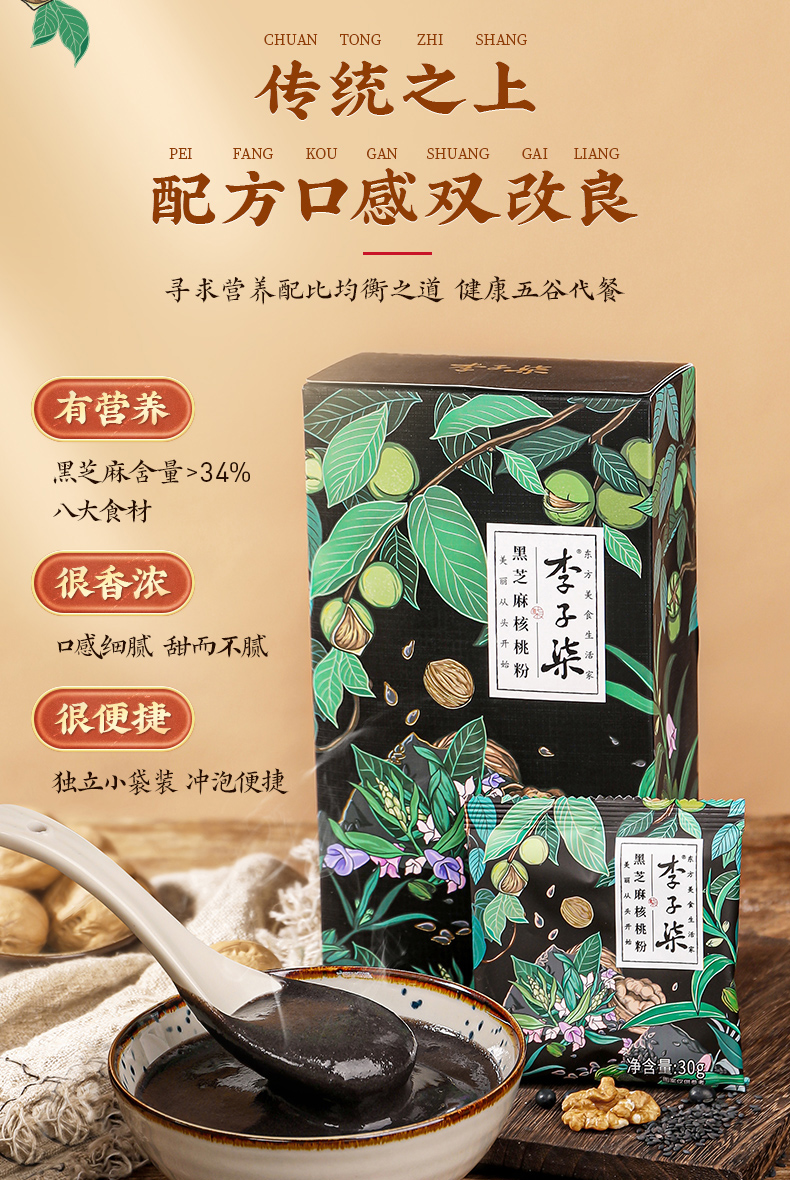 李子柒黑芝麻糊黑芝麻粉核桃粉孕妇营养早餐食品速食代餐360g盒装