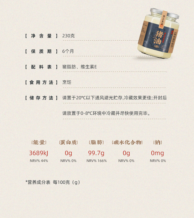 潮汕集锦食用猪油朥230g