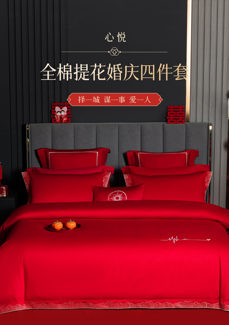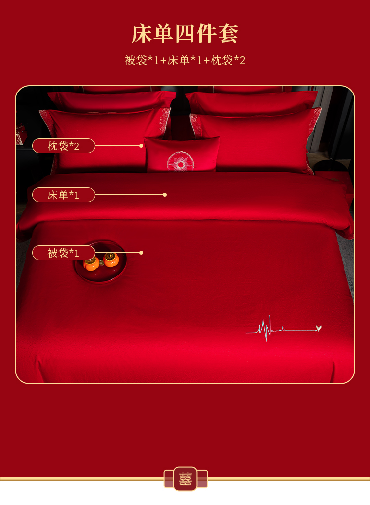 多喜爱 喜玫瑰婚庆床上用品四件套 心悦