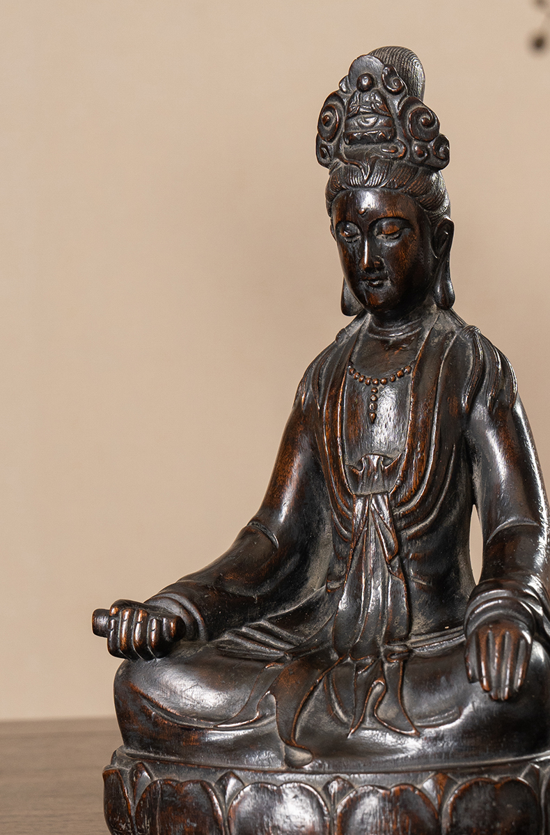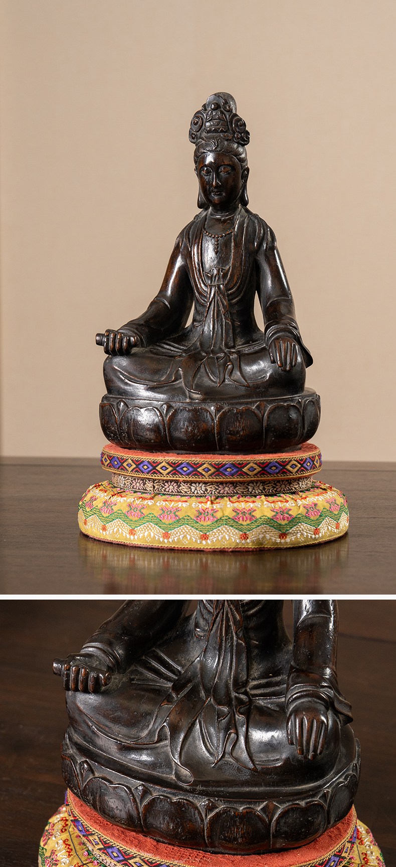 清 沈景修款端石狮纹辟雍砚(红木天地盖)