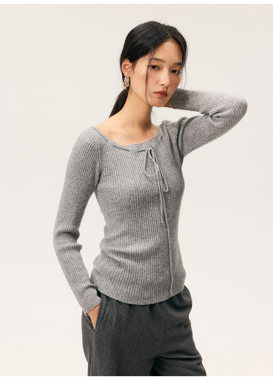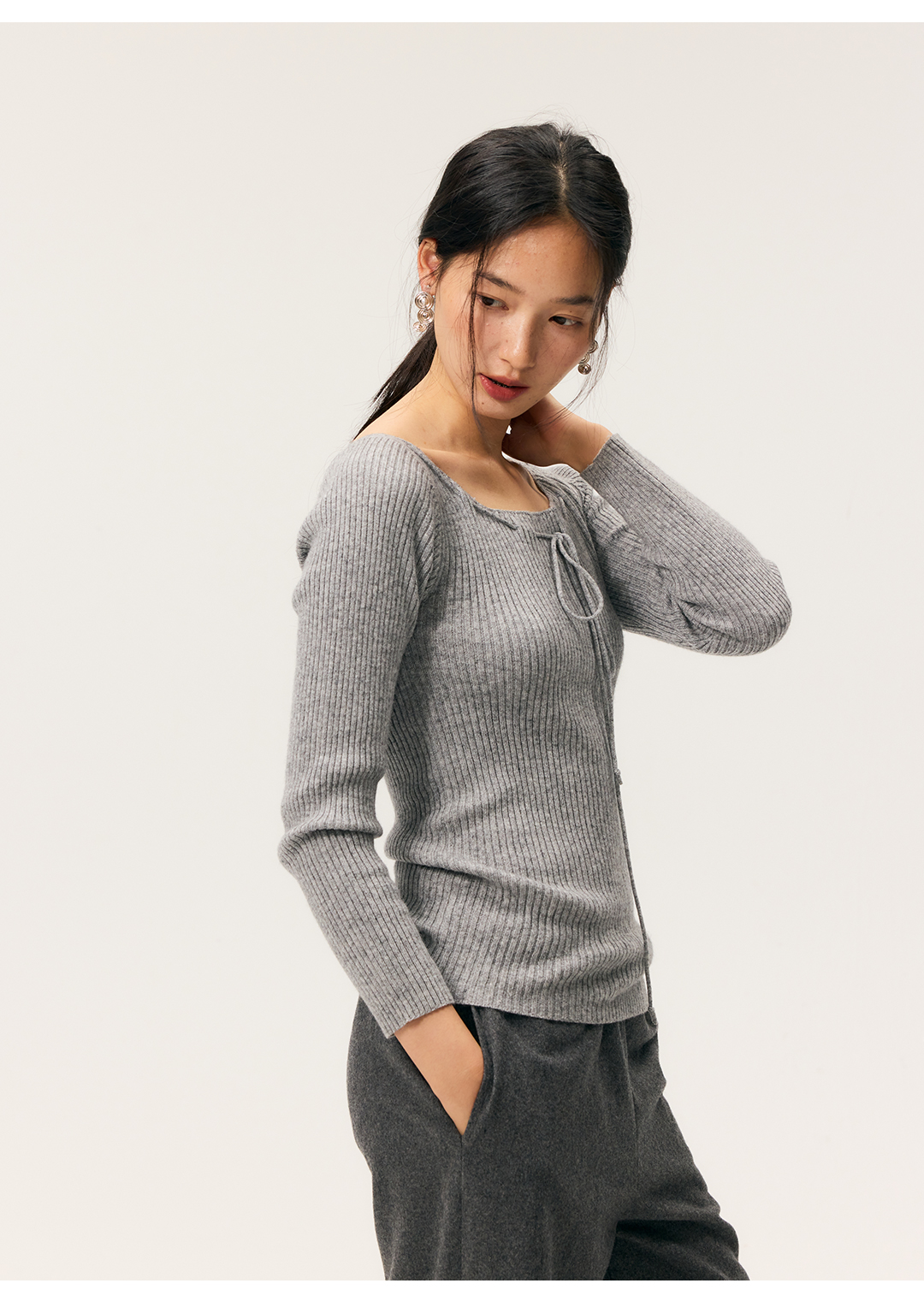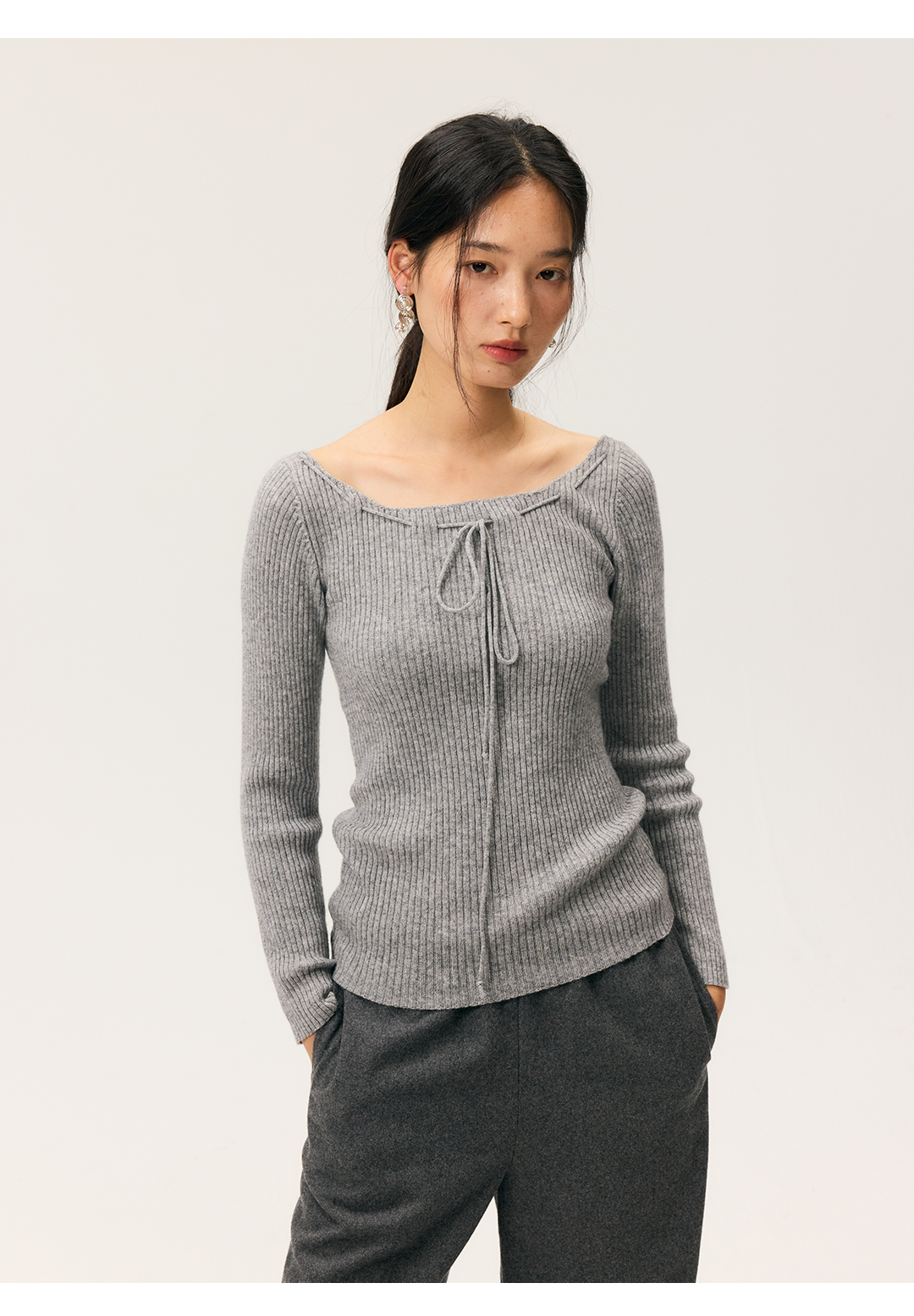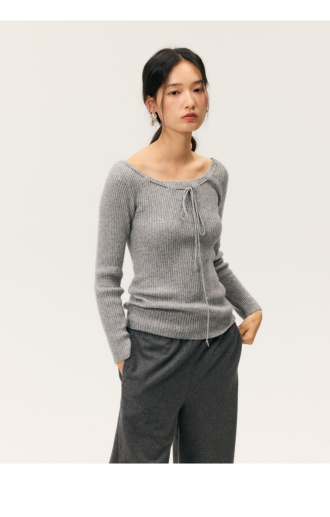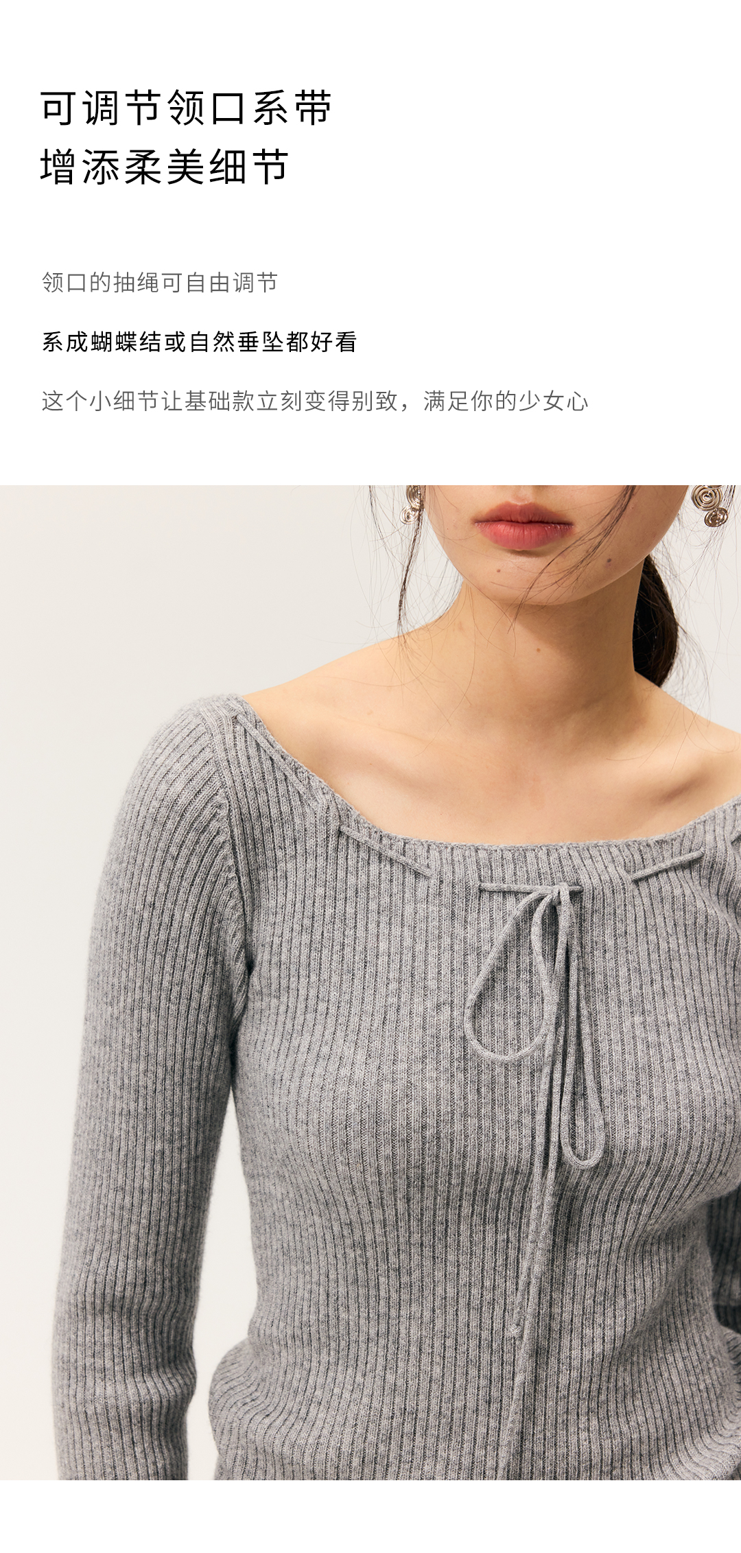HeyDress一字领抽绳打底毛衣