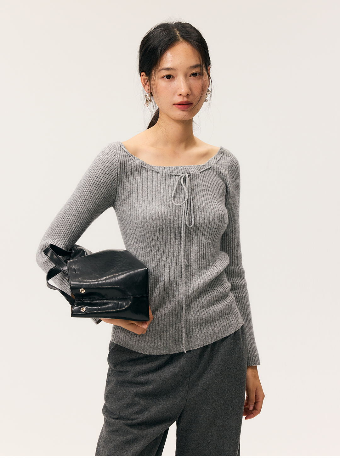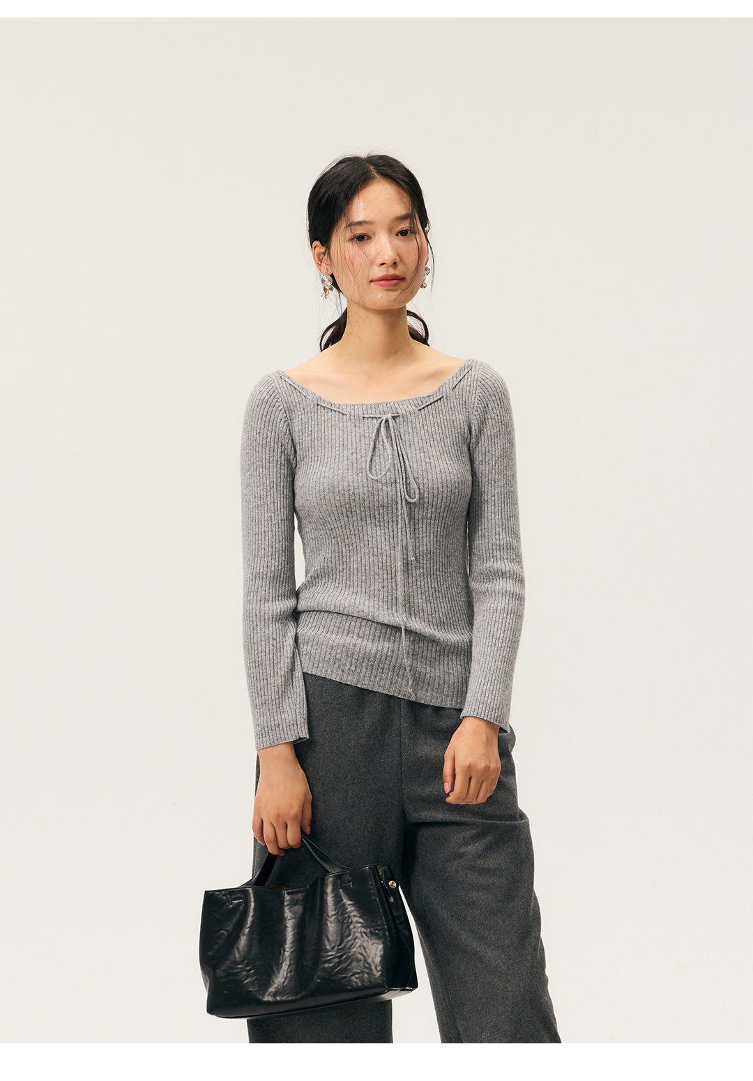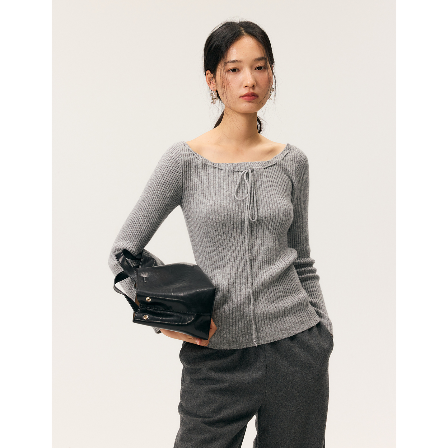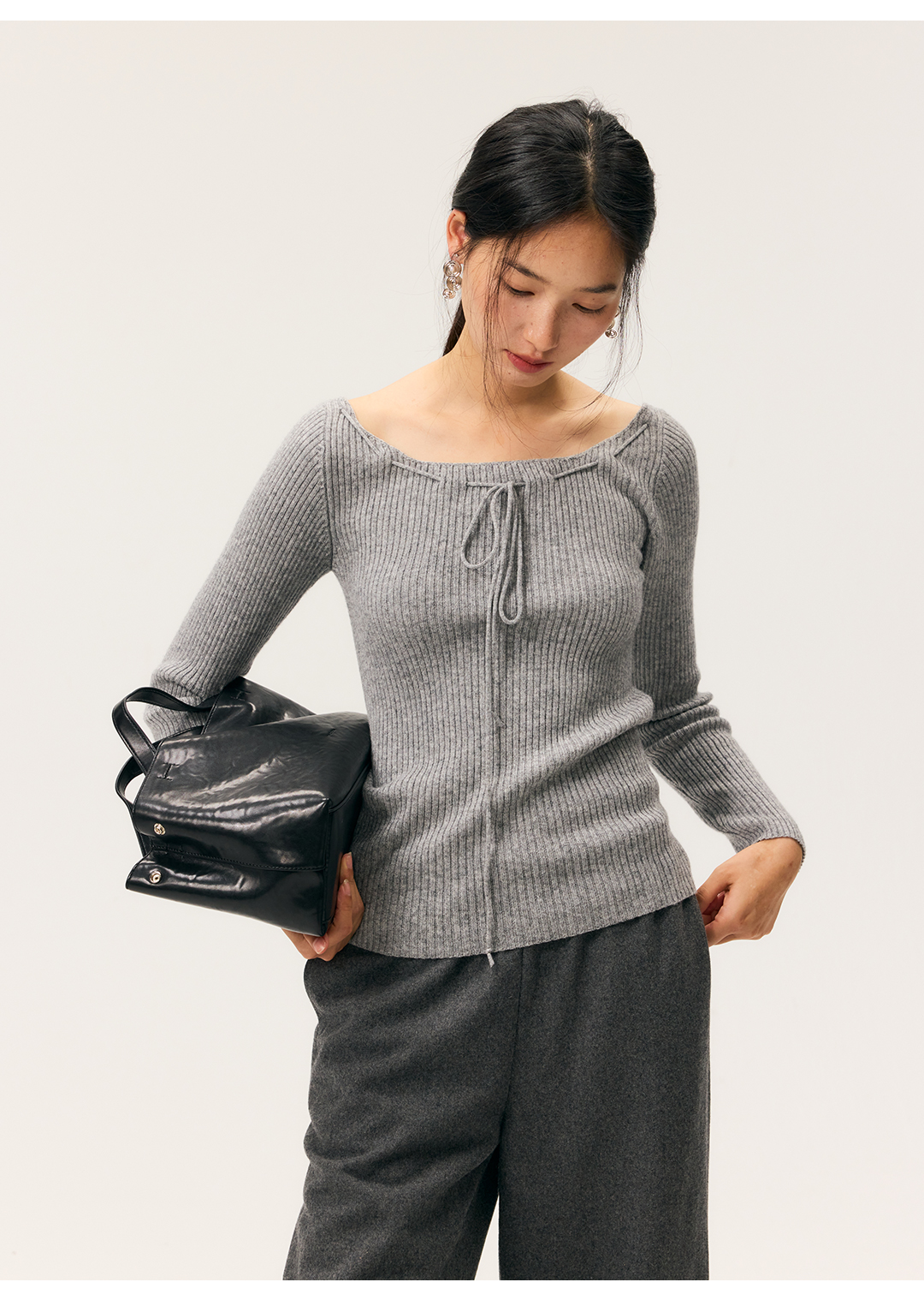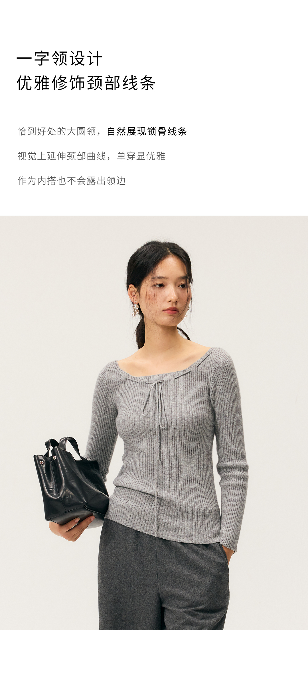 HeyDress一字领抽绳打底毛衣