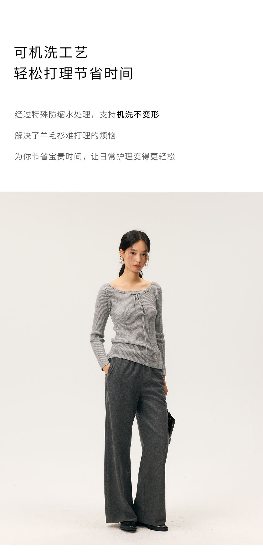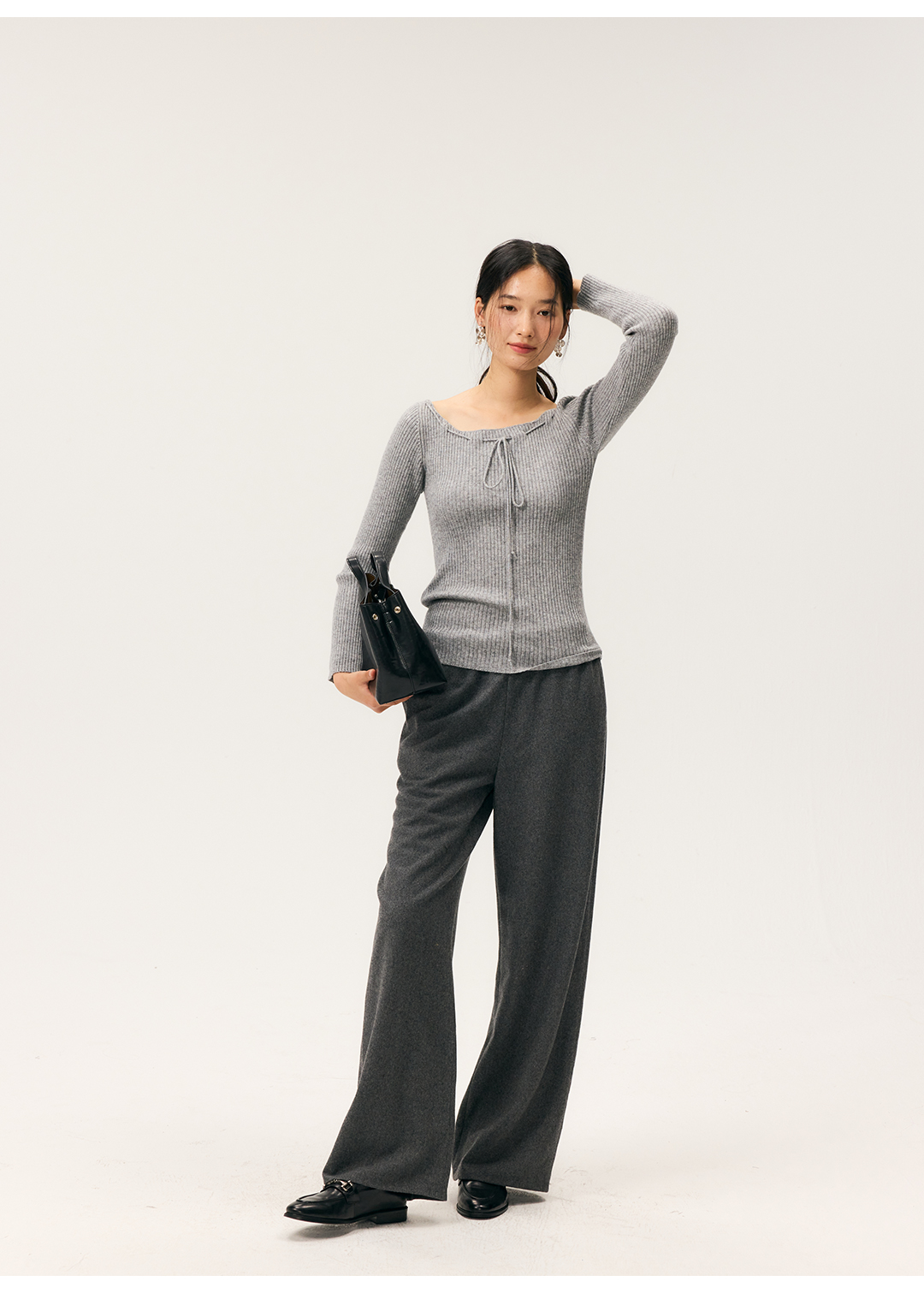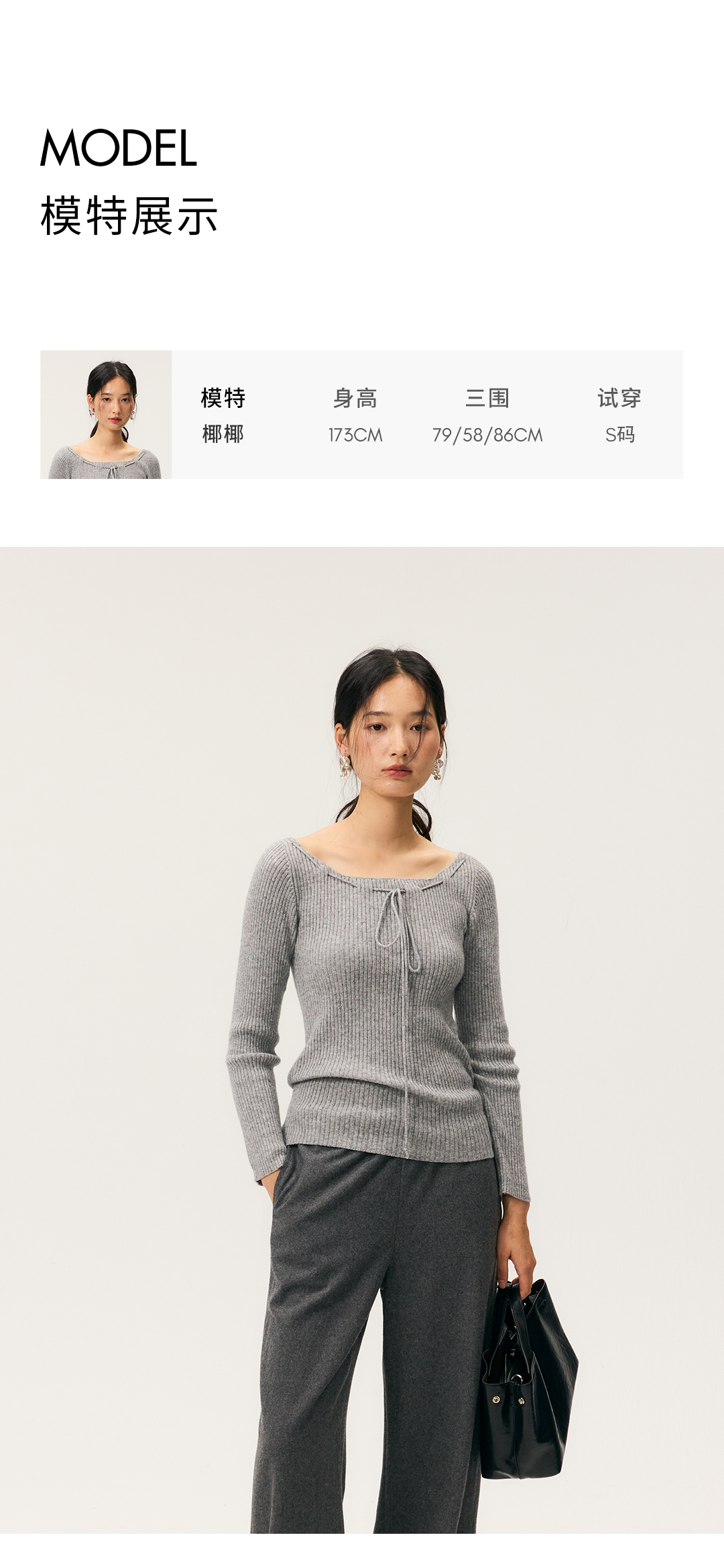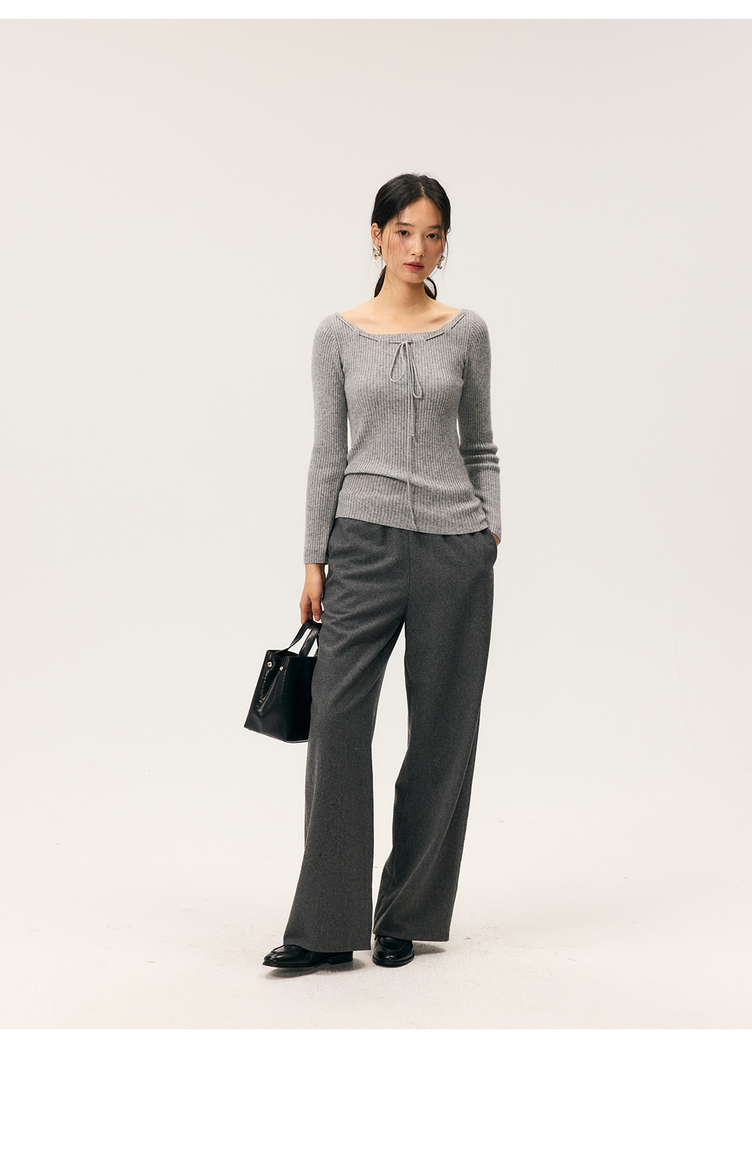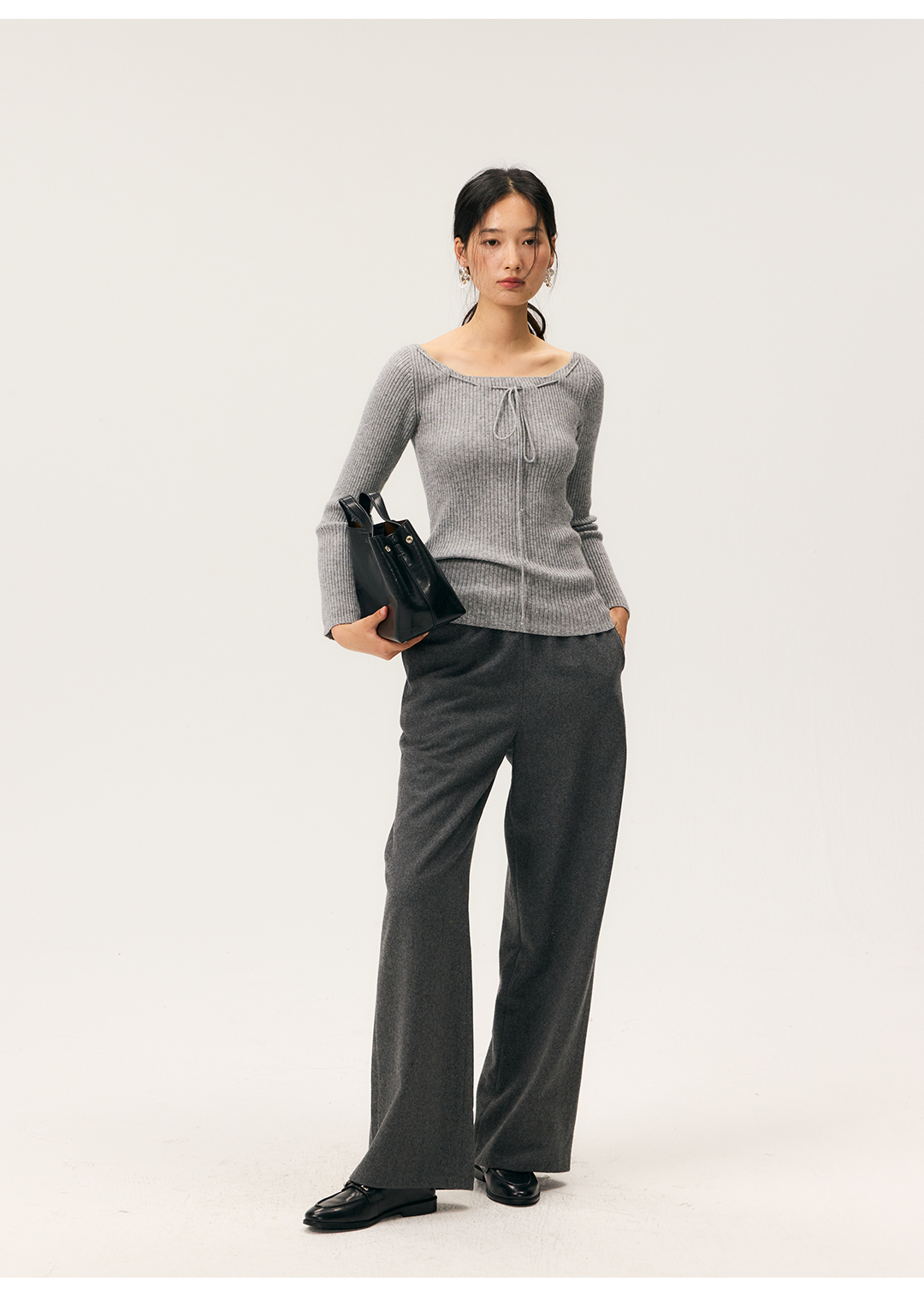HeyDress一字领抽绳打底毛衣