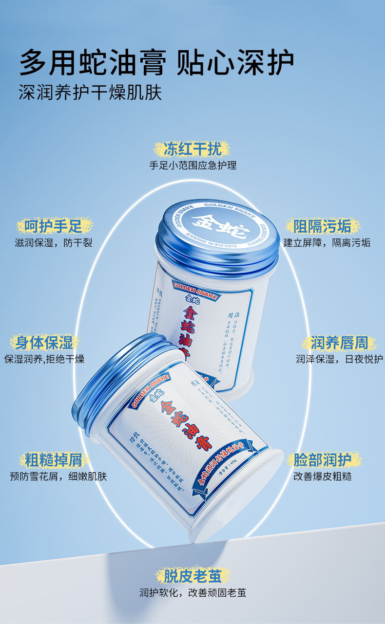 金蛇品牌,以珍稀蛇油为核心,承袭经典古法工艺,严选名贵原材,融合前沿科技,匠心打造更天然、更安全的专业护肤臻品。
