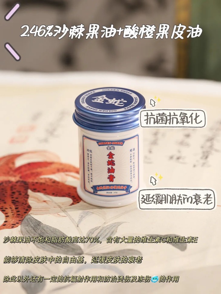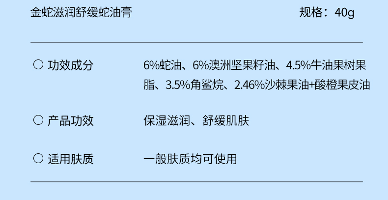 金蛇抗皱修护蛇油霜(小蓝罐),在配方上更是下足了功夫。