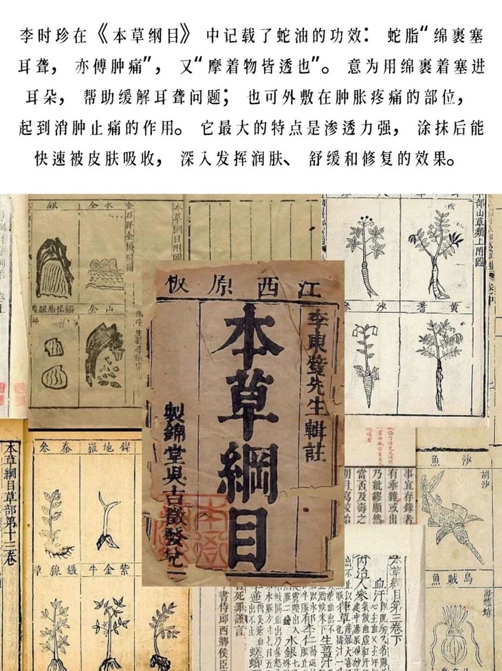 蛇油护肤,源远流长的东方智慧,我国对蛇油的利用历史可追溯至数百年前。
