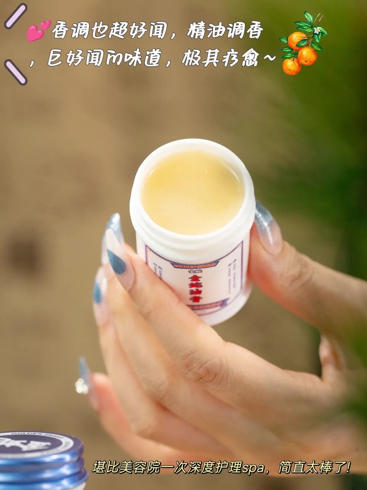 金蛇油霜还着散发馥郁的桂花香,让你在使用过程中感受到愉悦的心情,桂花淡淡的馨甜,像开到末期的金桂。