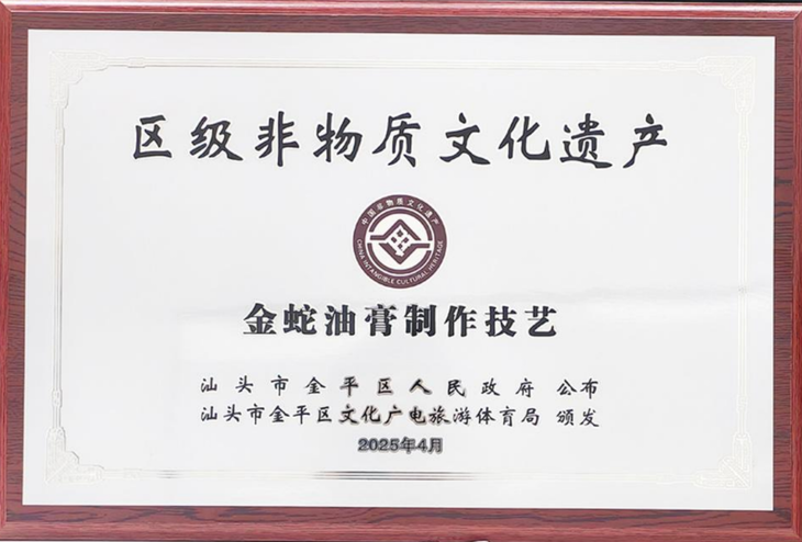2025年,更被授匾非物质文化遗产,并落地汕头金蛇文化馆,弘扬非遗技艺。