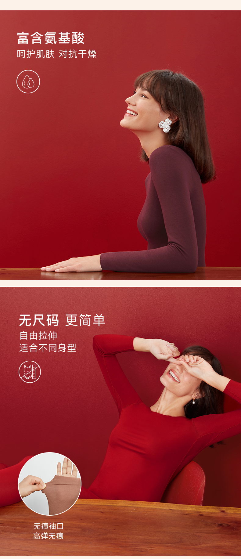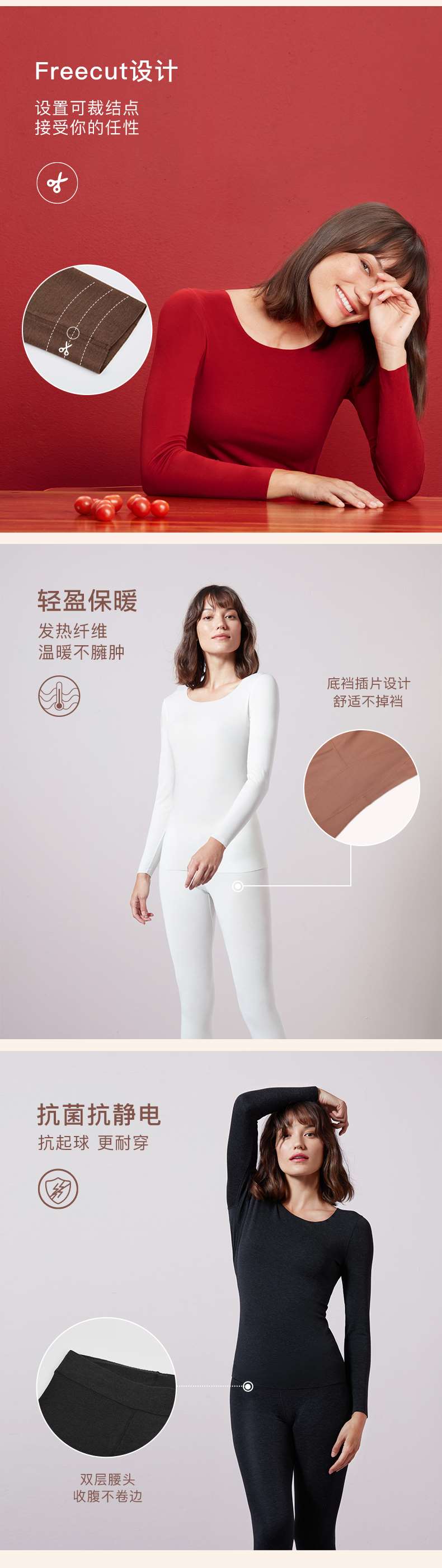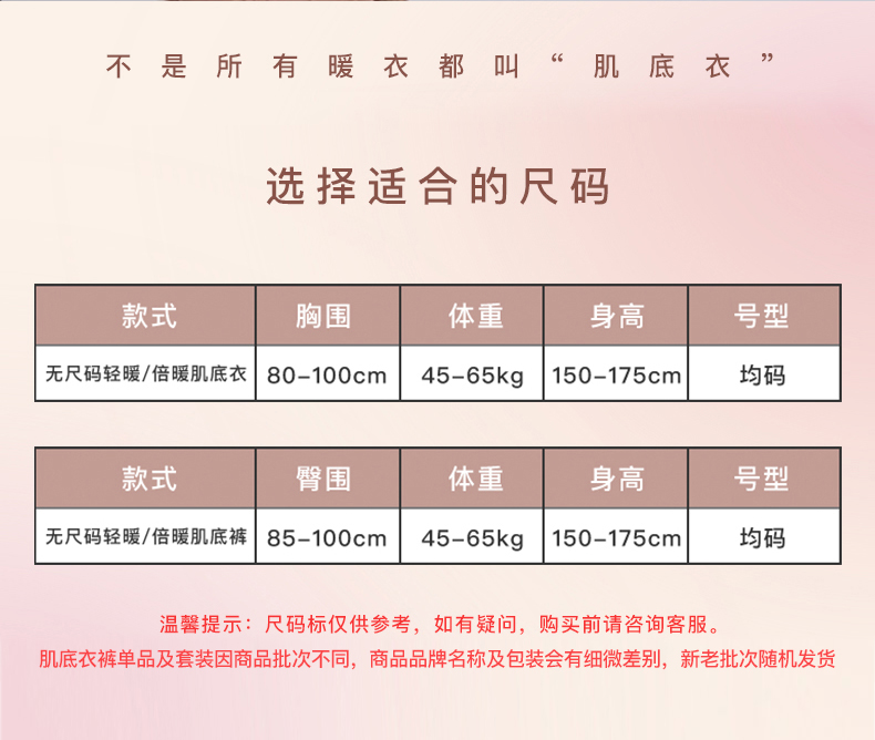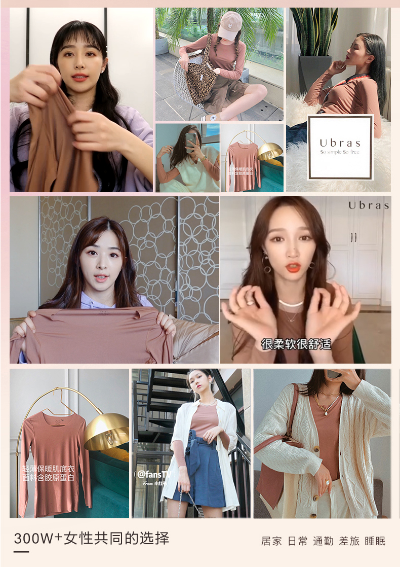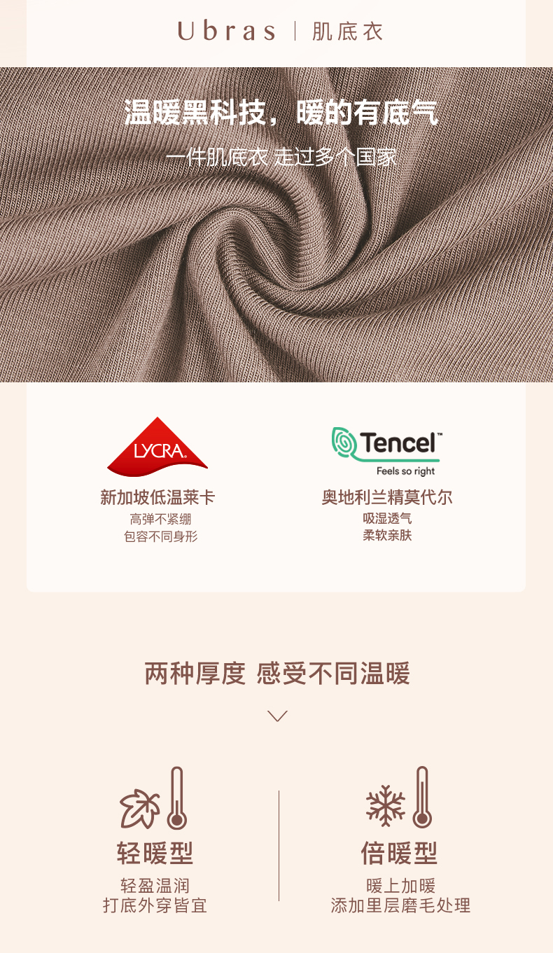 Ubras无尺码倍暖肌底衣发热保暖肌底套装保暖内衣