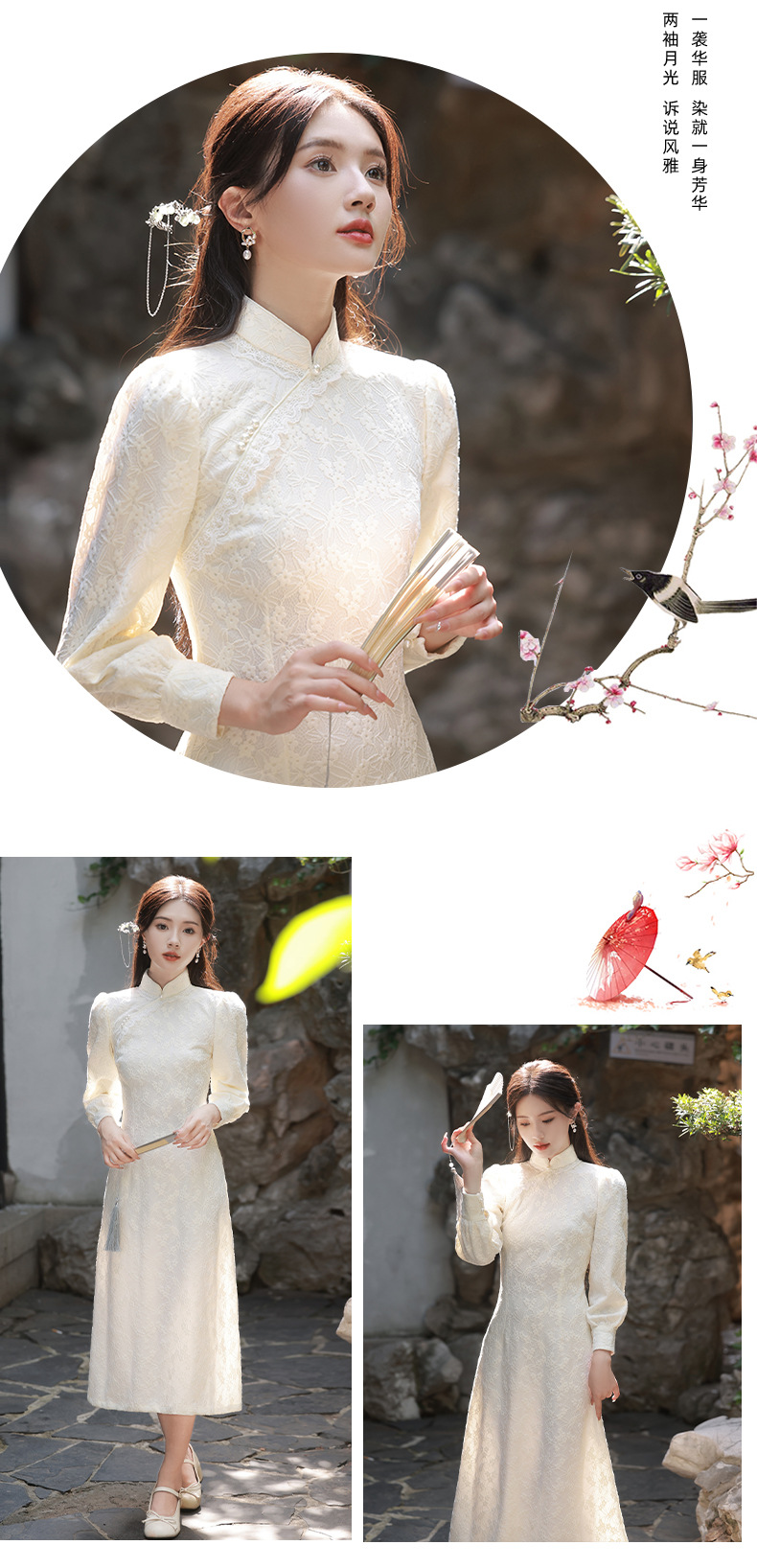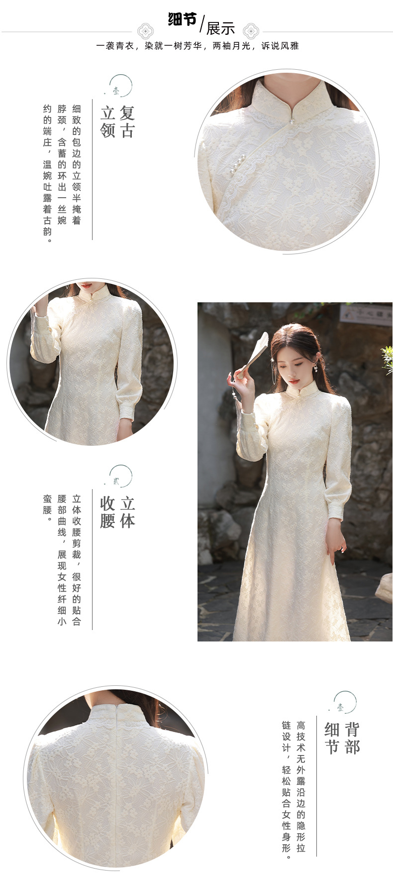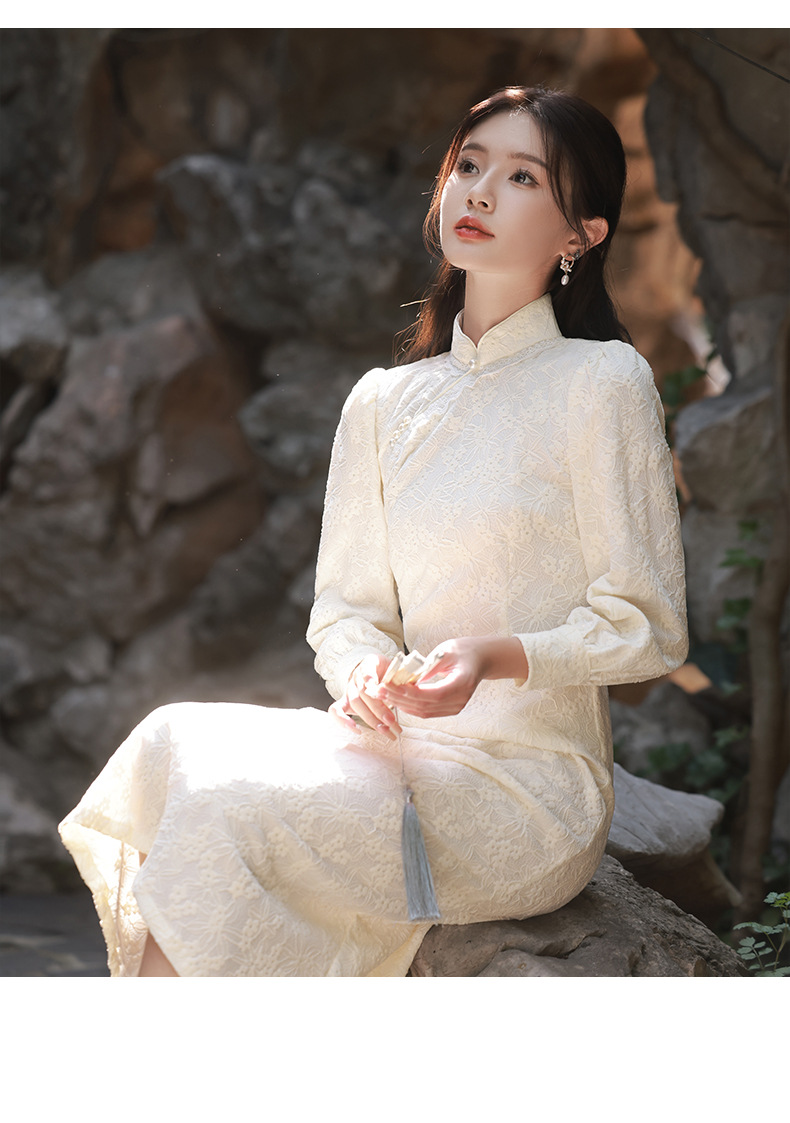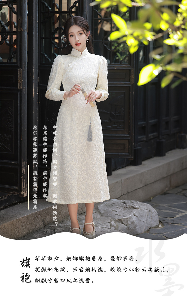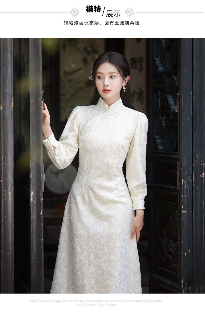 BJS-8521改良气质复古蕾丝旗袍长款 秋季新款民国风日常显瘦旗袍裙8521