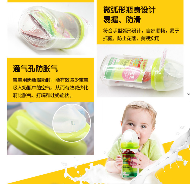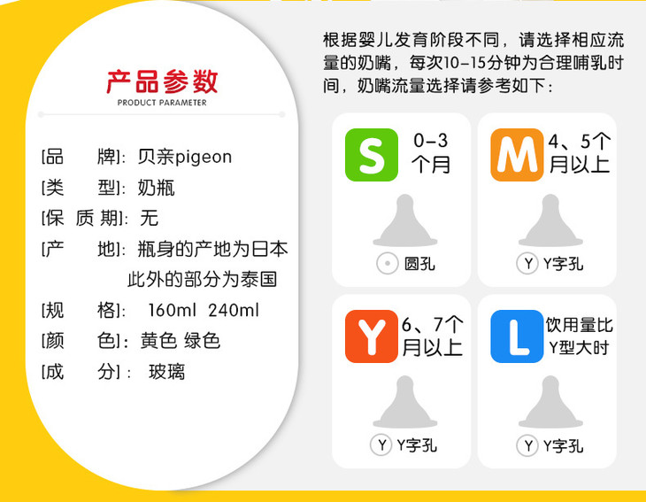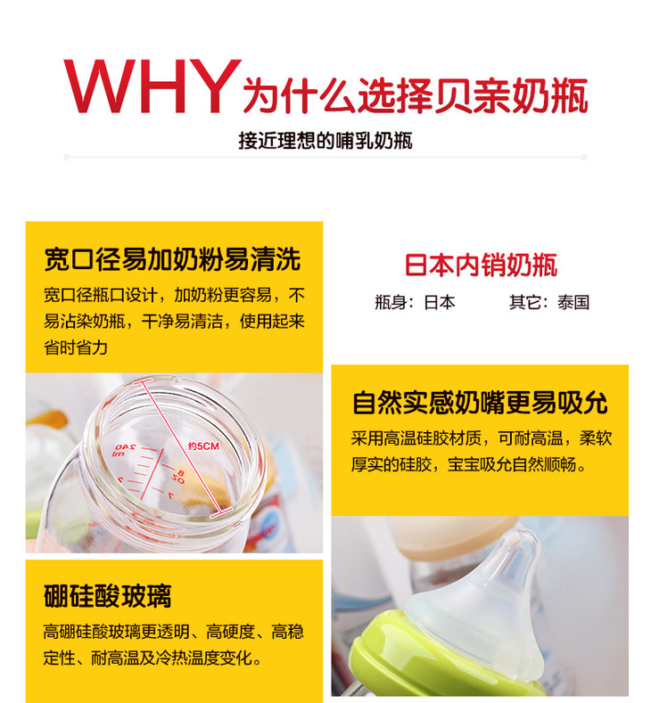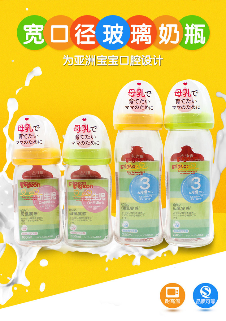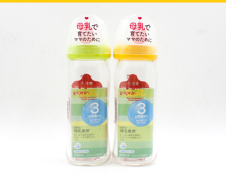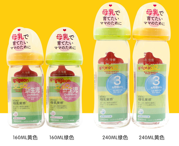 日本原装贝亲PIGEON宽口玻璃奶瓶防胀气母乳实感硅胶奶嘴160240