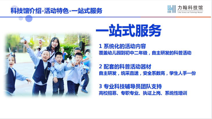 - 力翰科技馆积极响应国家政策,设置了丰富有趣的中小学生课后服务活动,不仅能协助学校课后服务工作的开展,也能解决家长在工作日按时接送学生困难,更能在活动中培养学生的素养与动手实践能力。