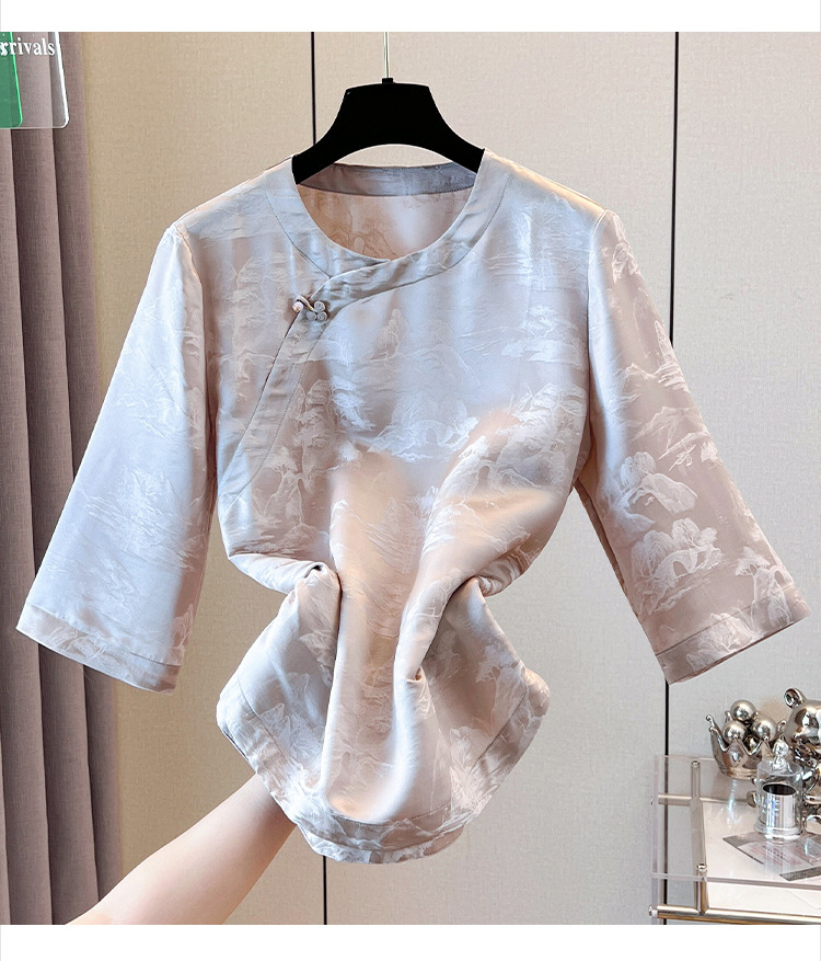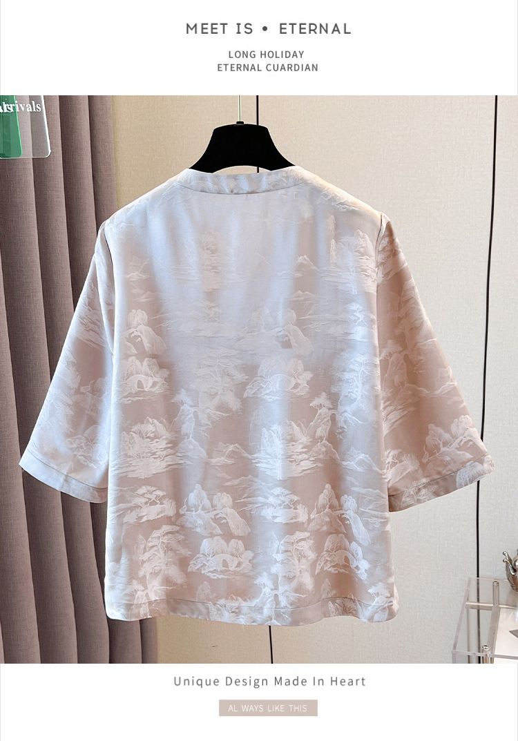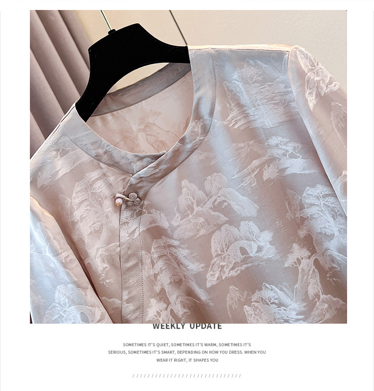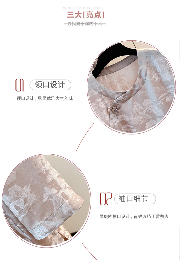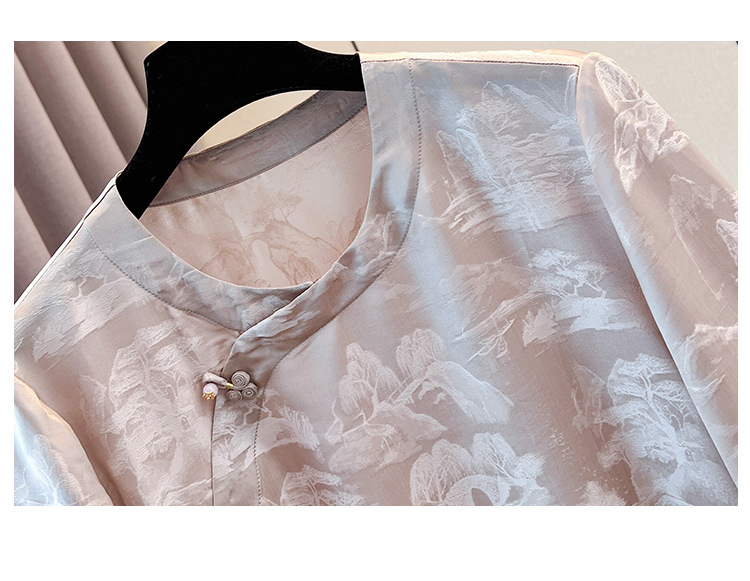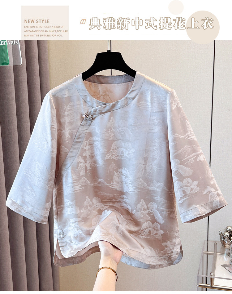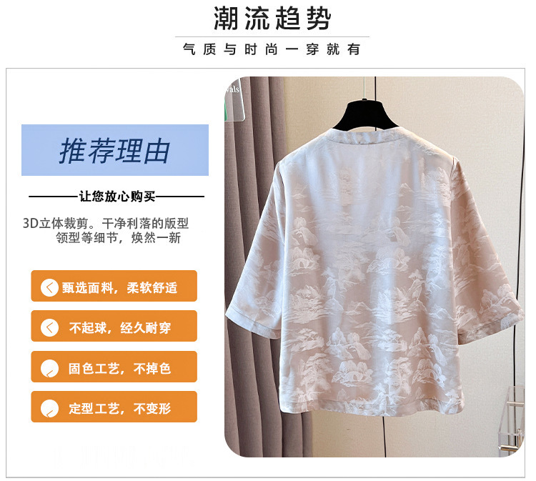 A34639高品质舒适桑蚕丝减龄妈妈夏新款国风改良旗袍斜襟小衫新中式衬衫