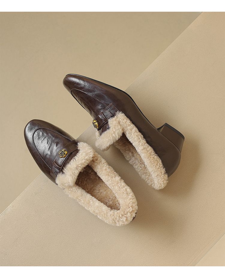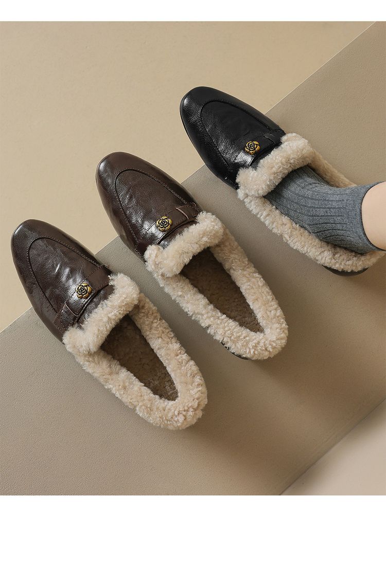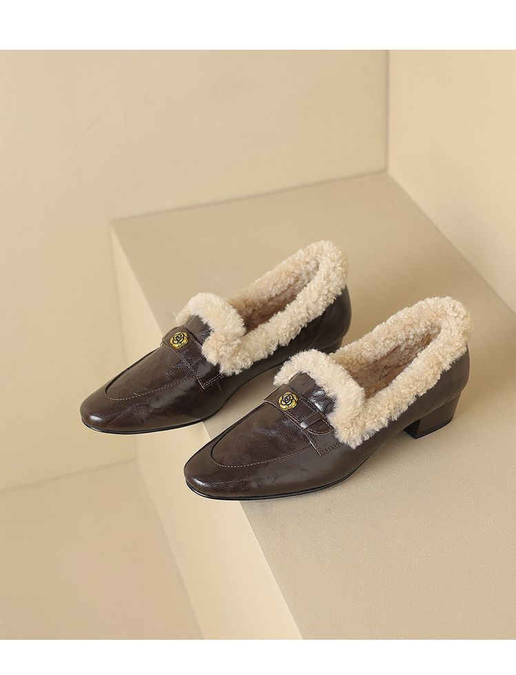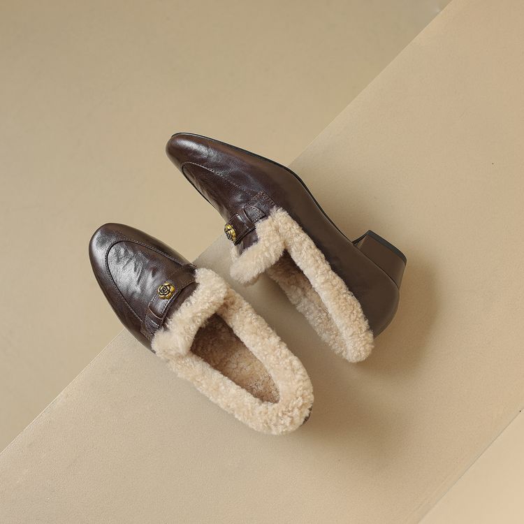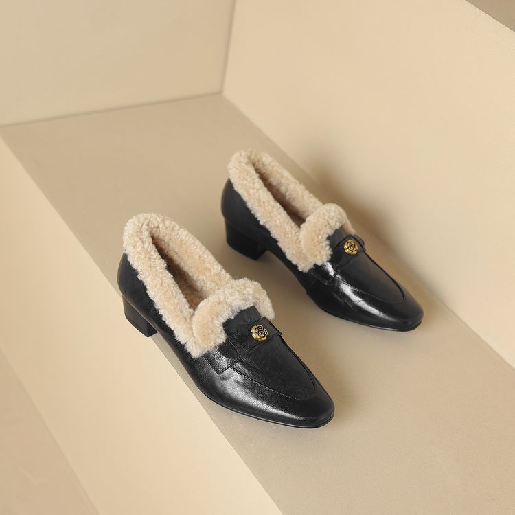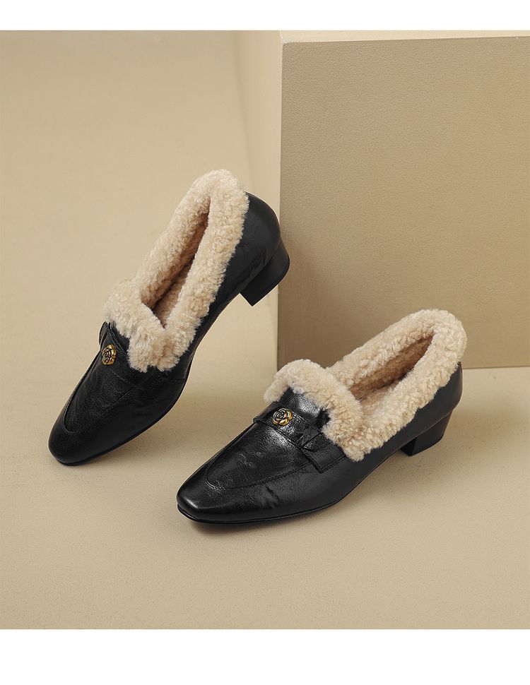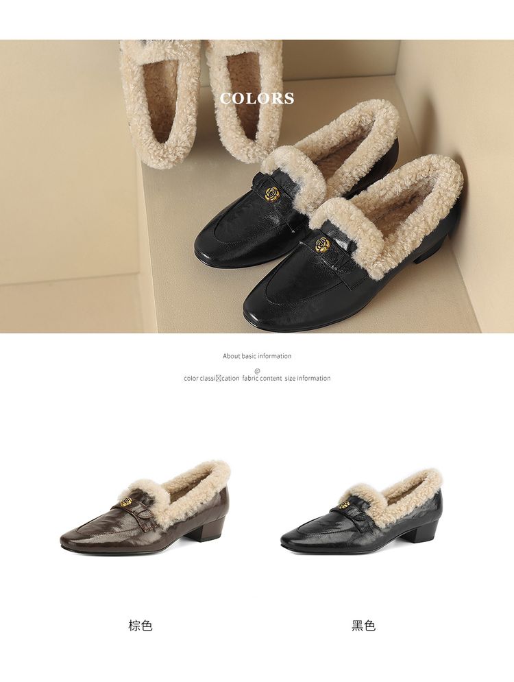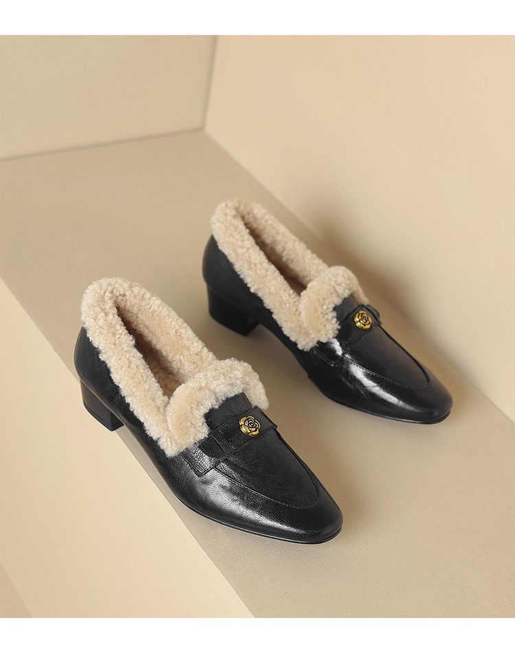 【预售5天】店长自留款!复古乐福毛毛鞋冬季加绒粗跟山茶花羊卷毛保暖单鞋WXJFG&W362