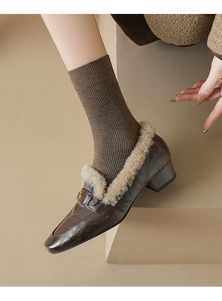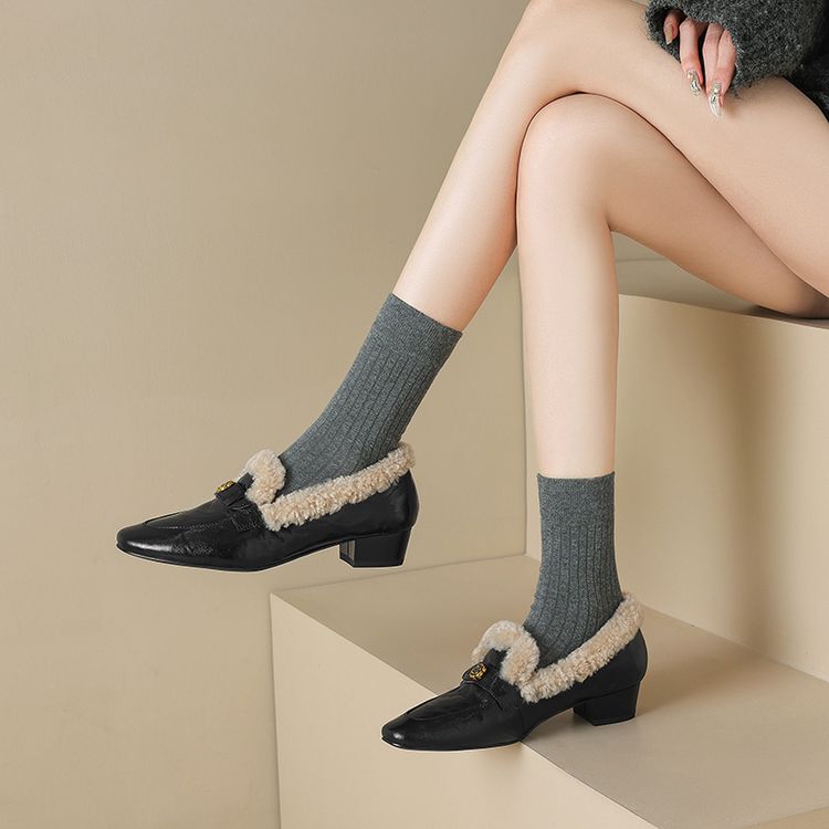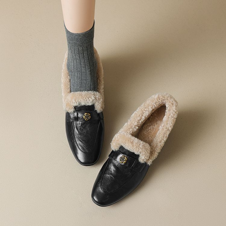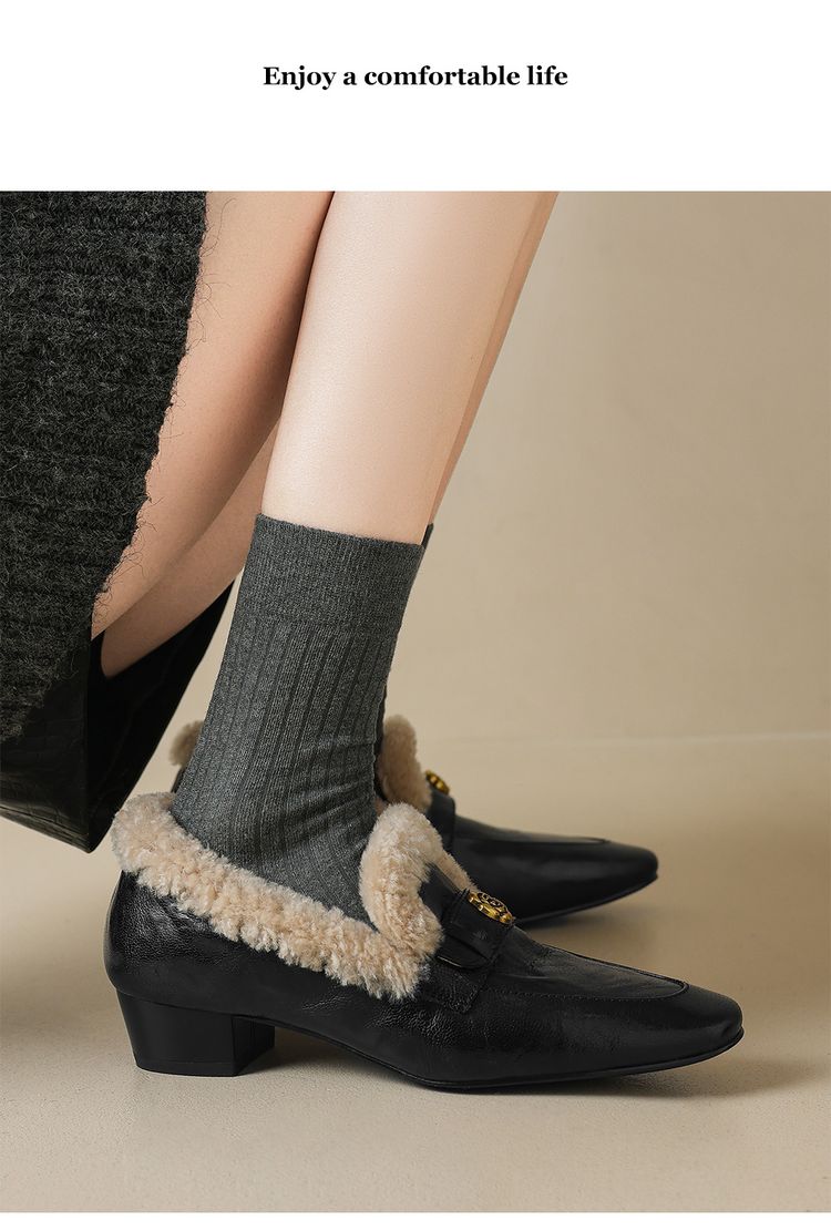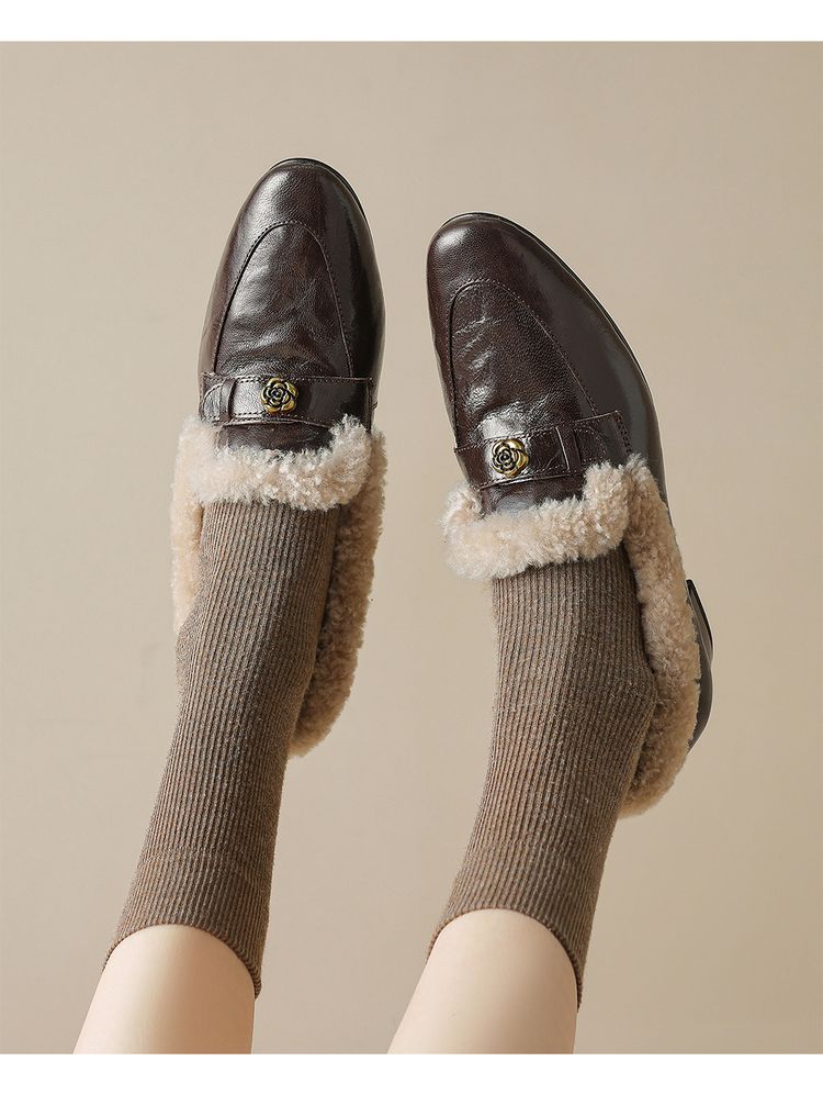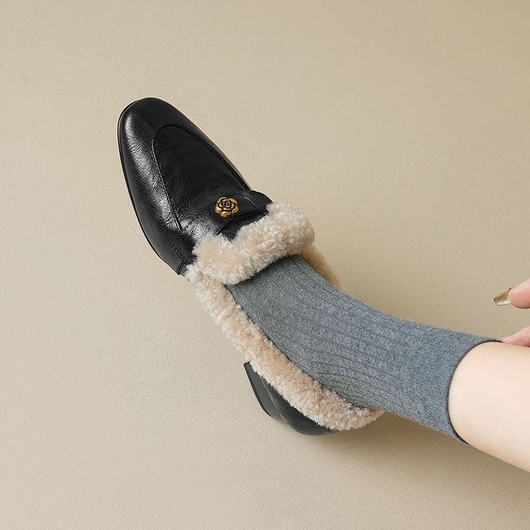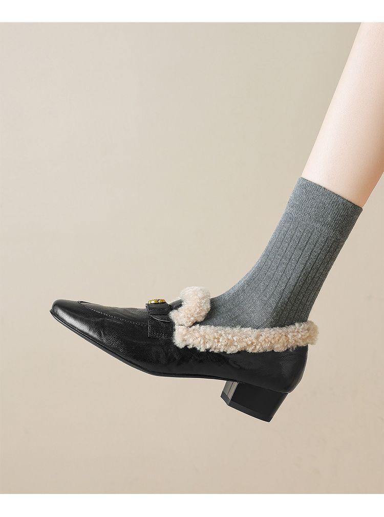 【预售5天】店长自留款!复古乐福毛毛鞋冬季加绒粗跟山茶花羊卷毛保暖单鞋WXJFG&W362