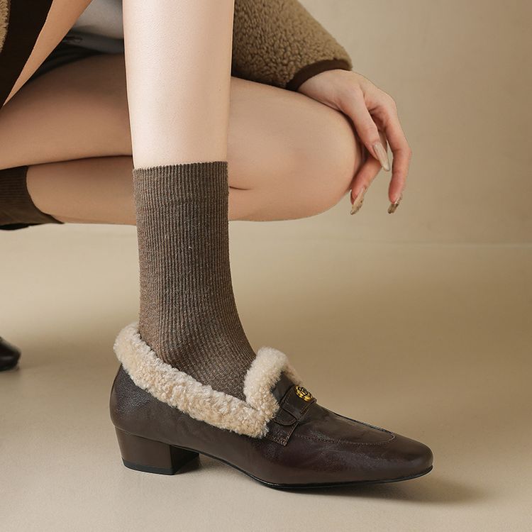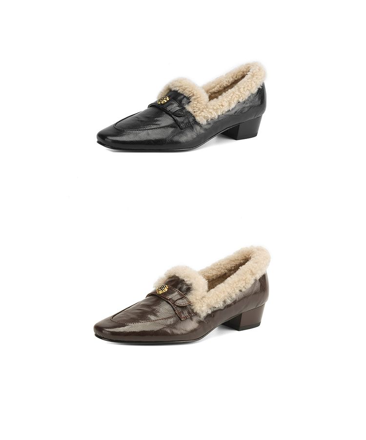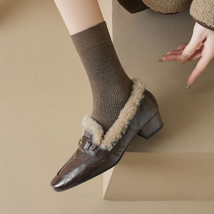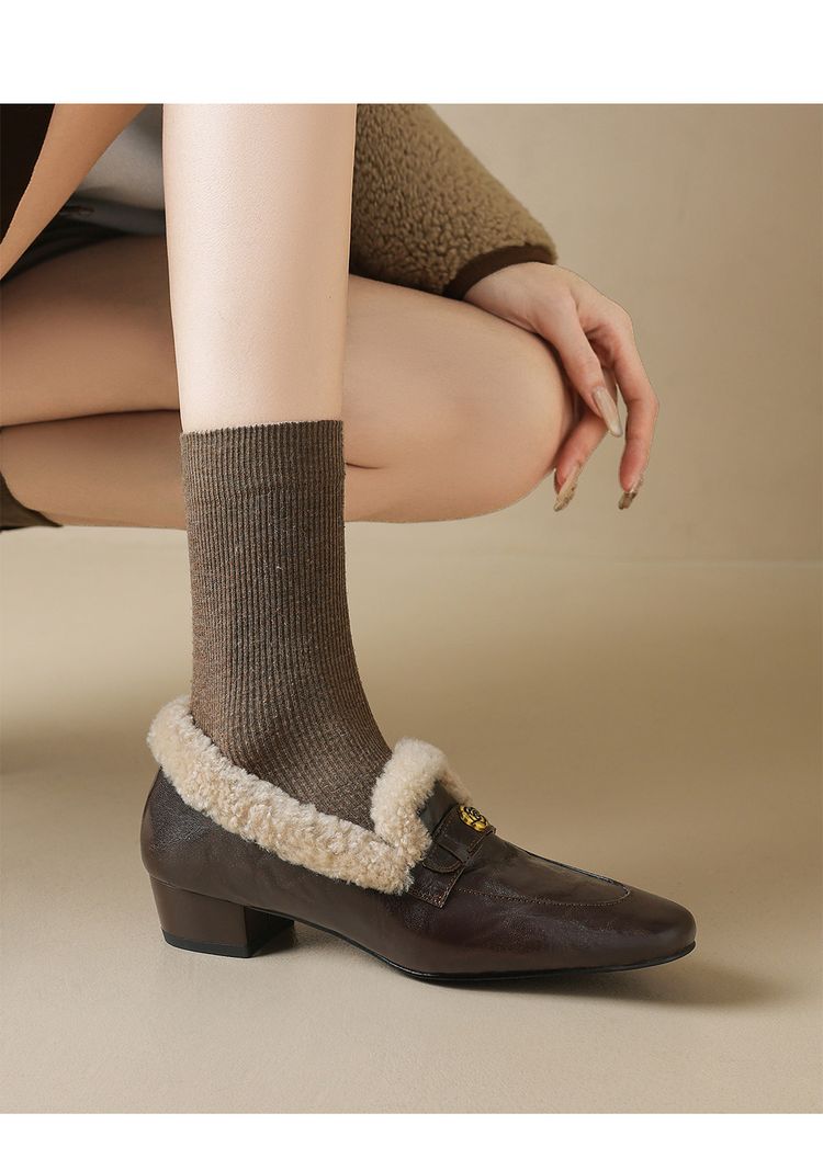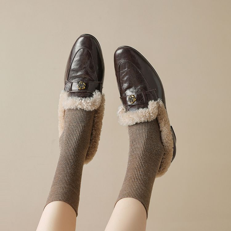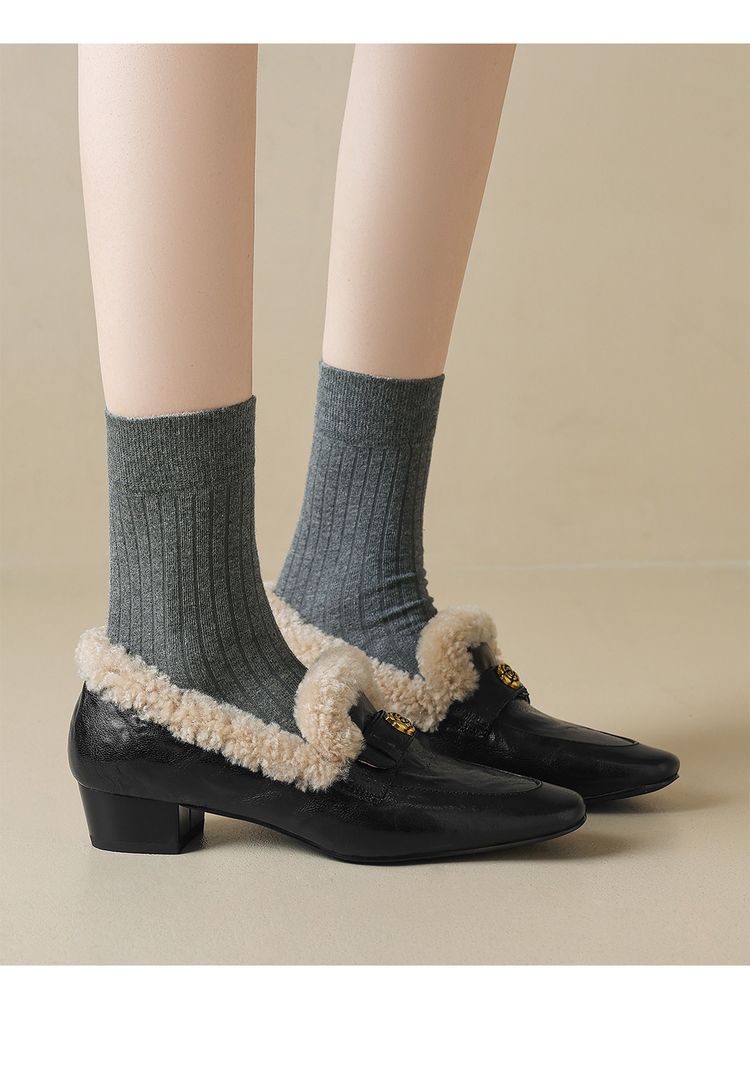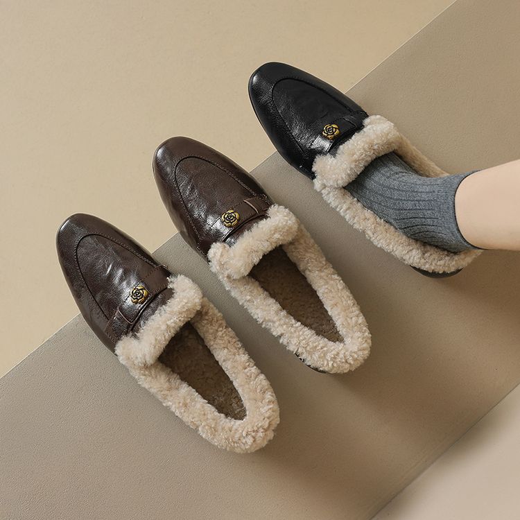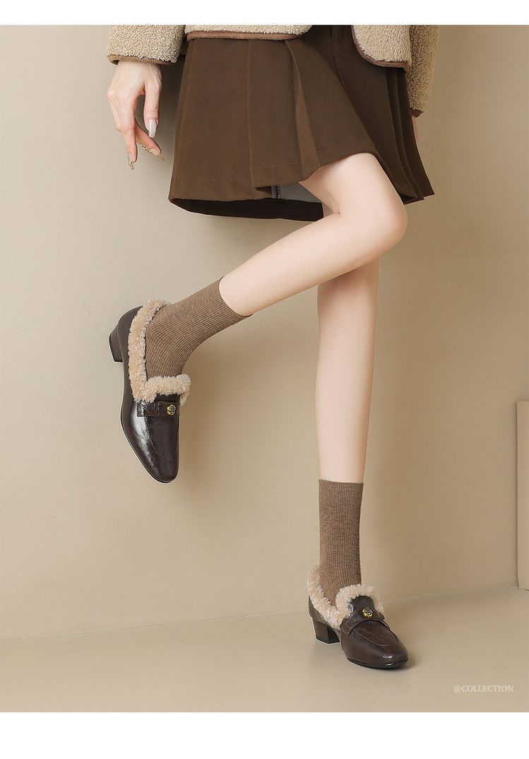 【预售5天】店长自留款!复古乐福毛毛鞋冬季加绒粗跟山茶花羊卷毛保暖单鞋WXJFG&W362