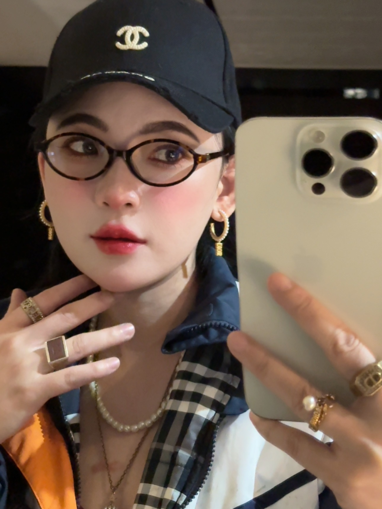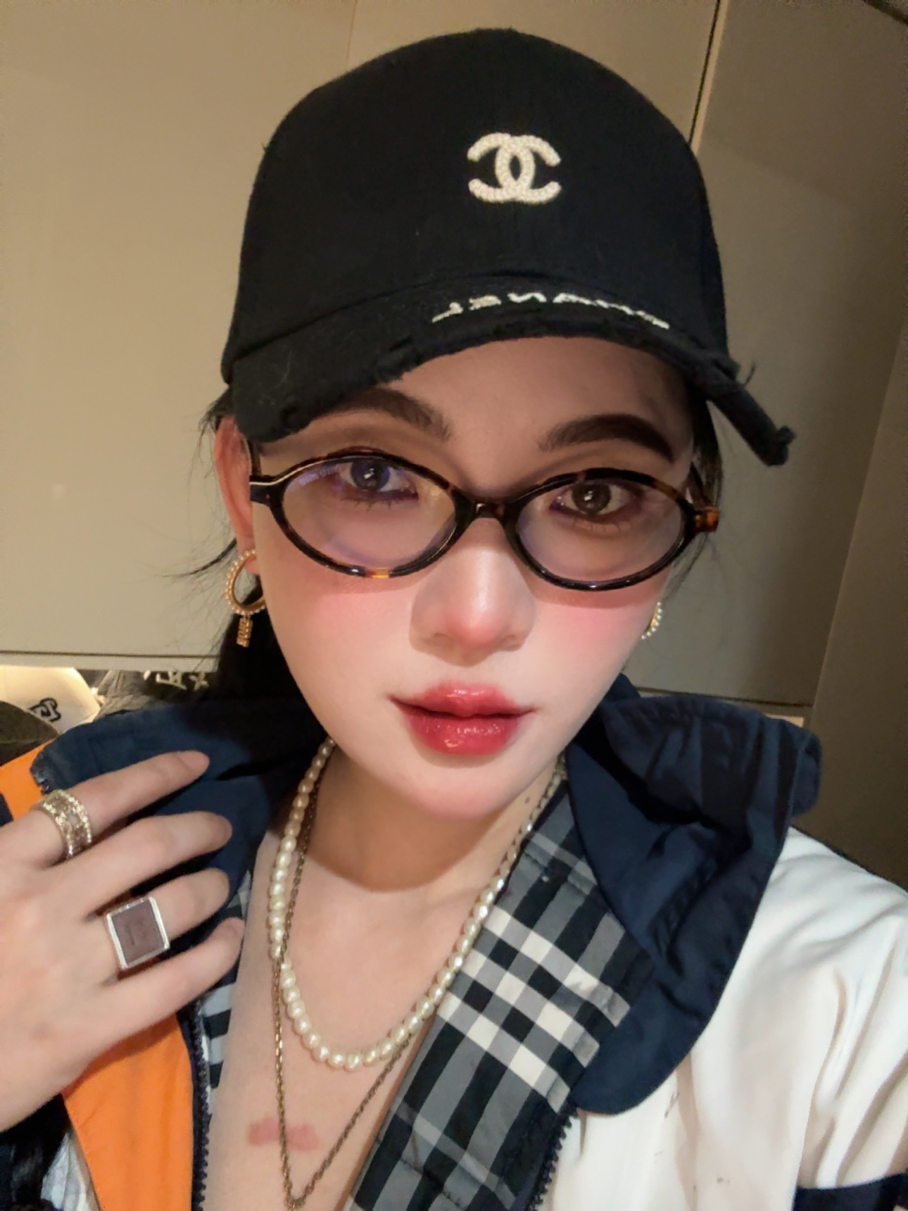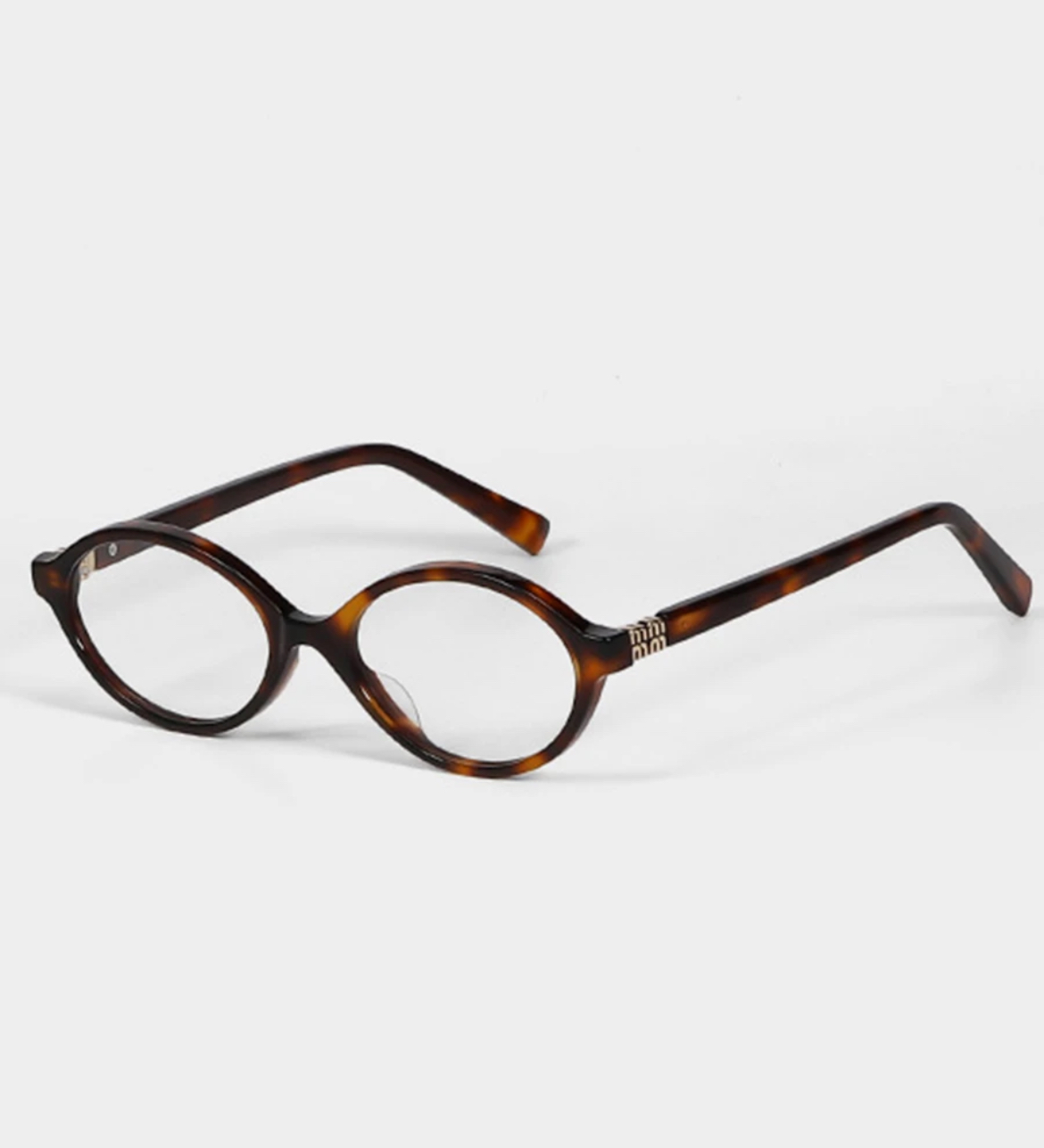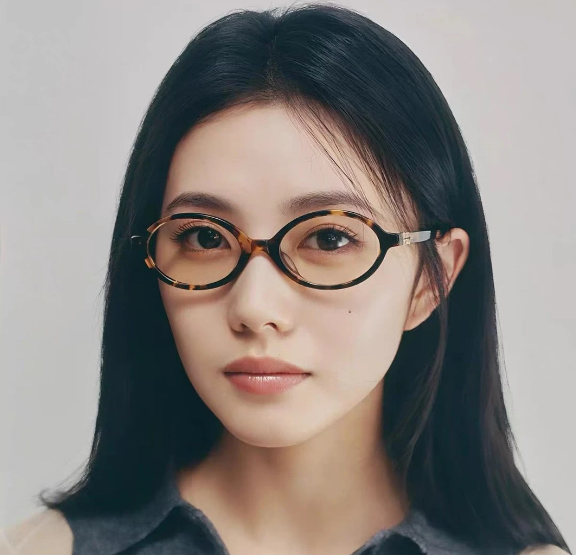 重点是这副眼镜本身!复古玳瑁纹的镜框自带慵懒松弛感,椭圆轮廓刚好修饰我这种有点方的脸型,戴上脸直接小一圈~镜腿和桩头的金色金属装饰是点睛之笔!不是那种俗气的亮金,是带着点哑光质感的精致,和玳瑁纹一搭,甜酷感直接拉满✨