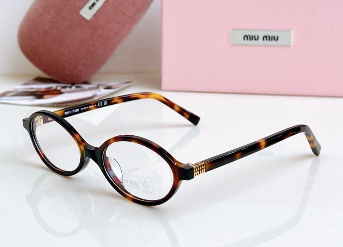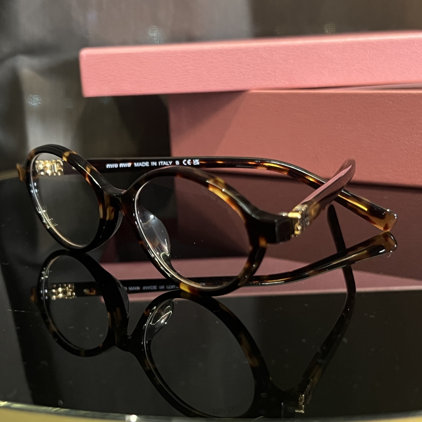 个性平光镜 近视眼镜架 蓝光片 原厂镜片 镜片上有LOGO 这款Miu Miu太阳镜融合经典风格与精致元素。超轻金属镜框设计,搭配趣致配色无边框椭圆形镜片。超细镜腿饰有纵向Miu徽标 男女同款