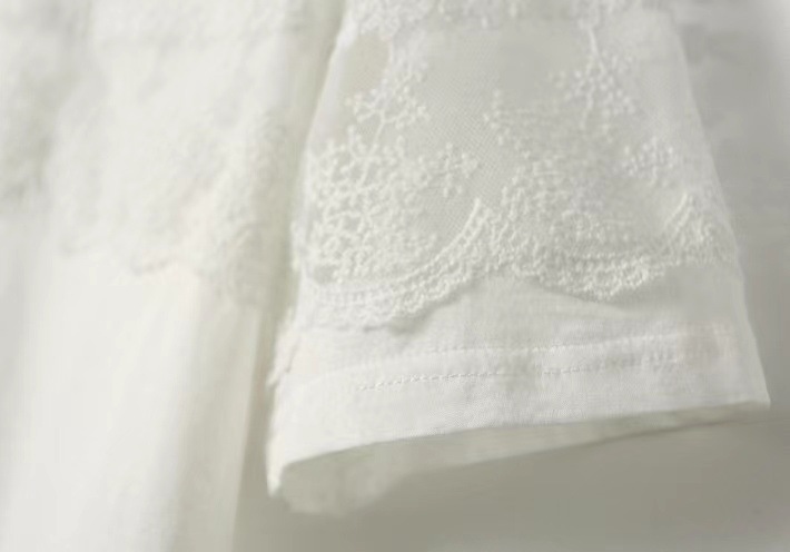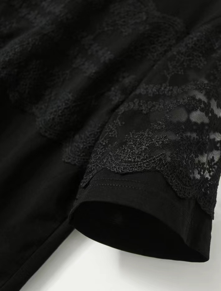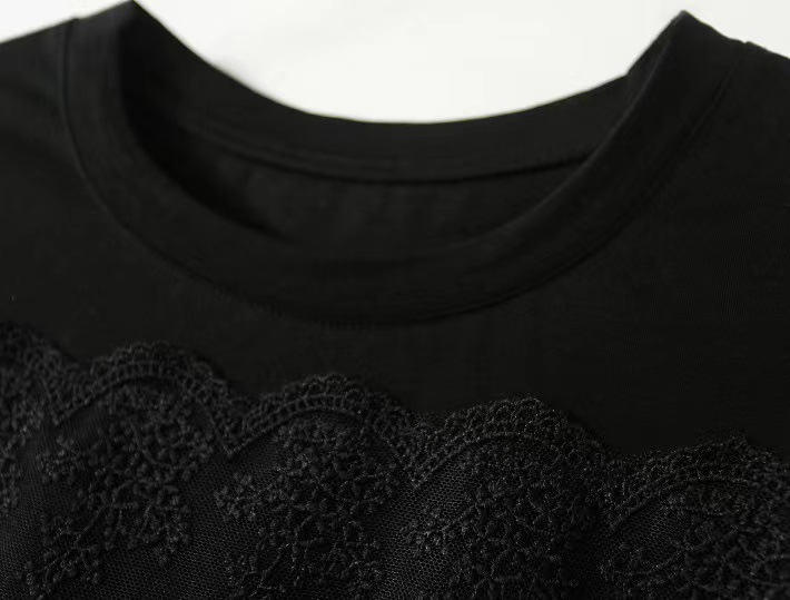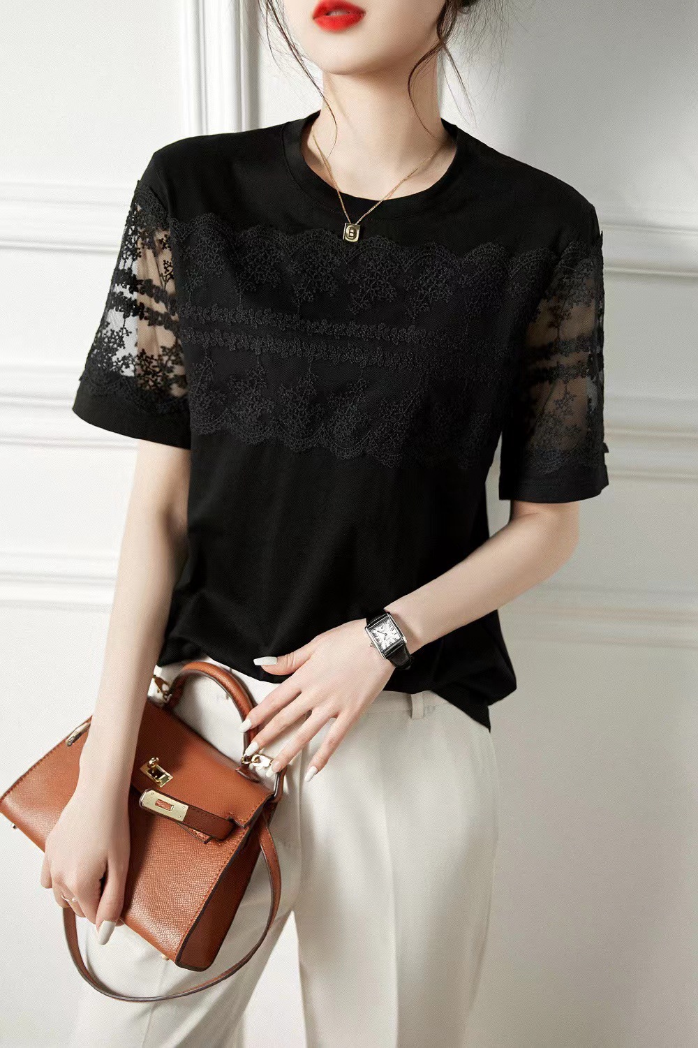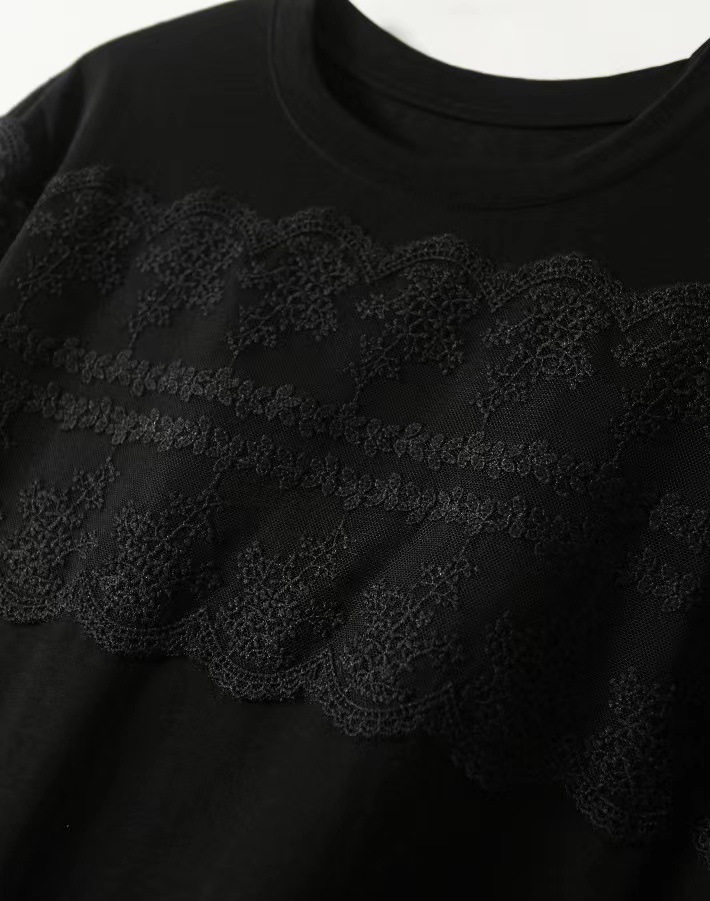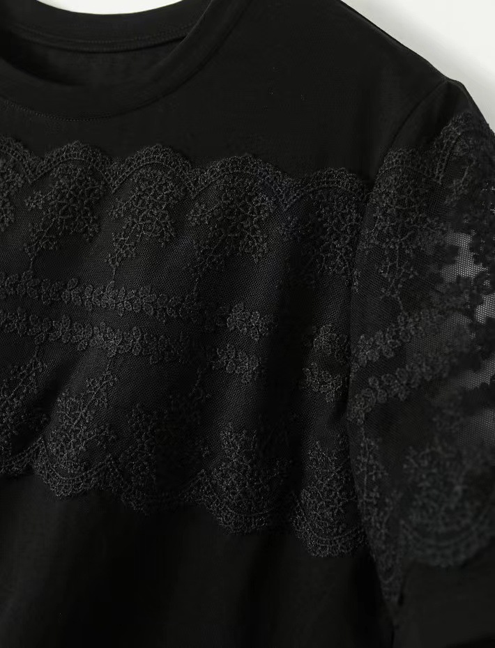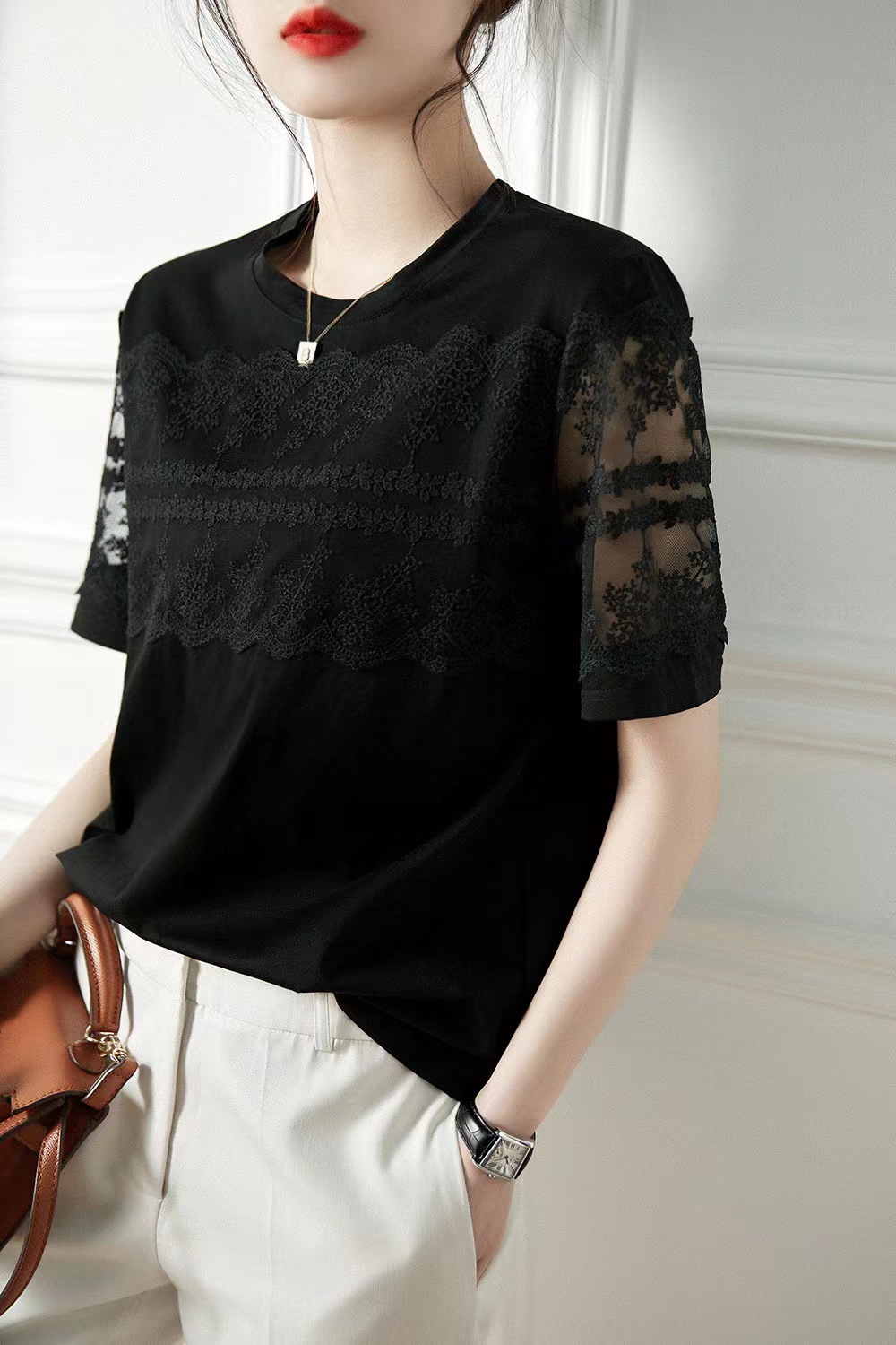雀说 举手投足都在撩你 舒适纯棉 蕾丝拼接 圆领短袖T恤女夏5ZF-20935