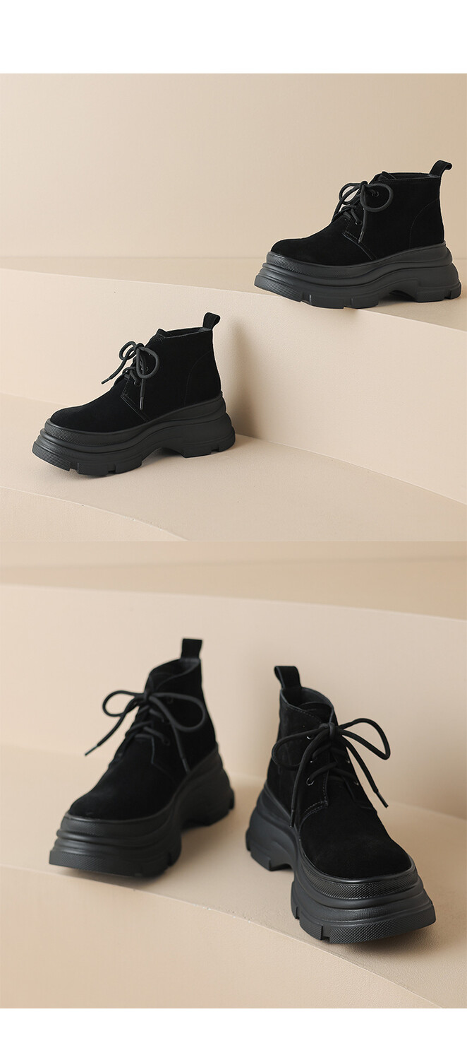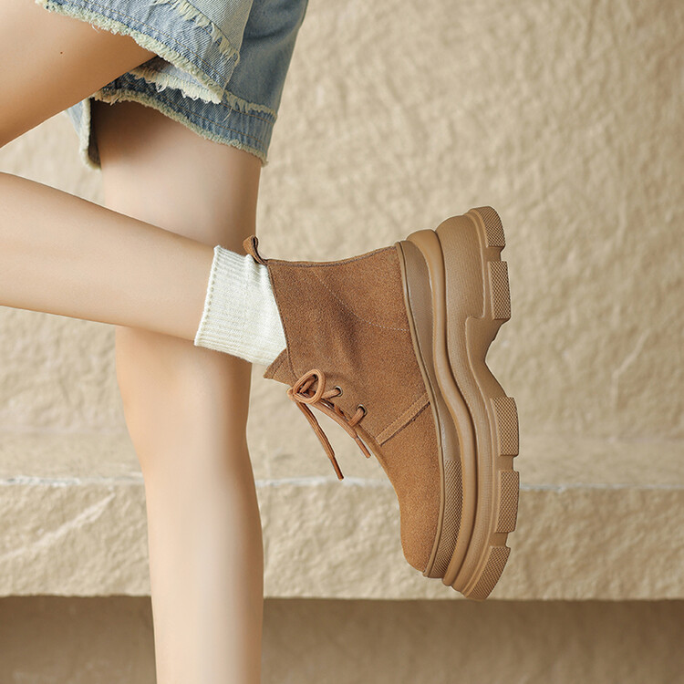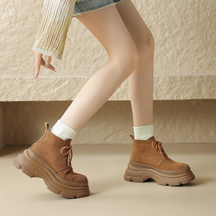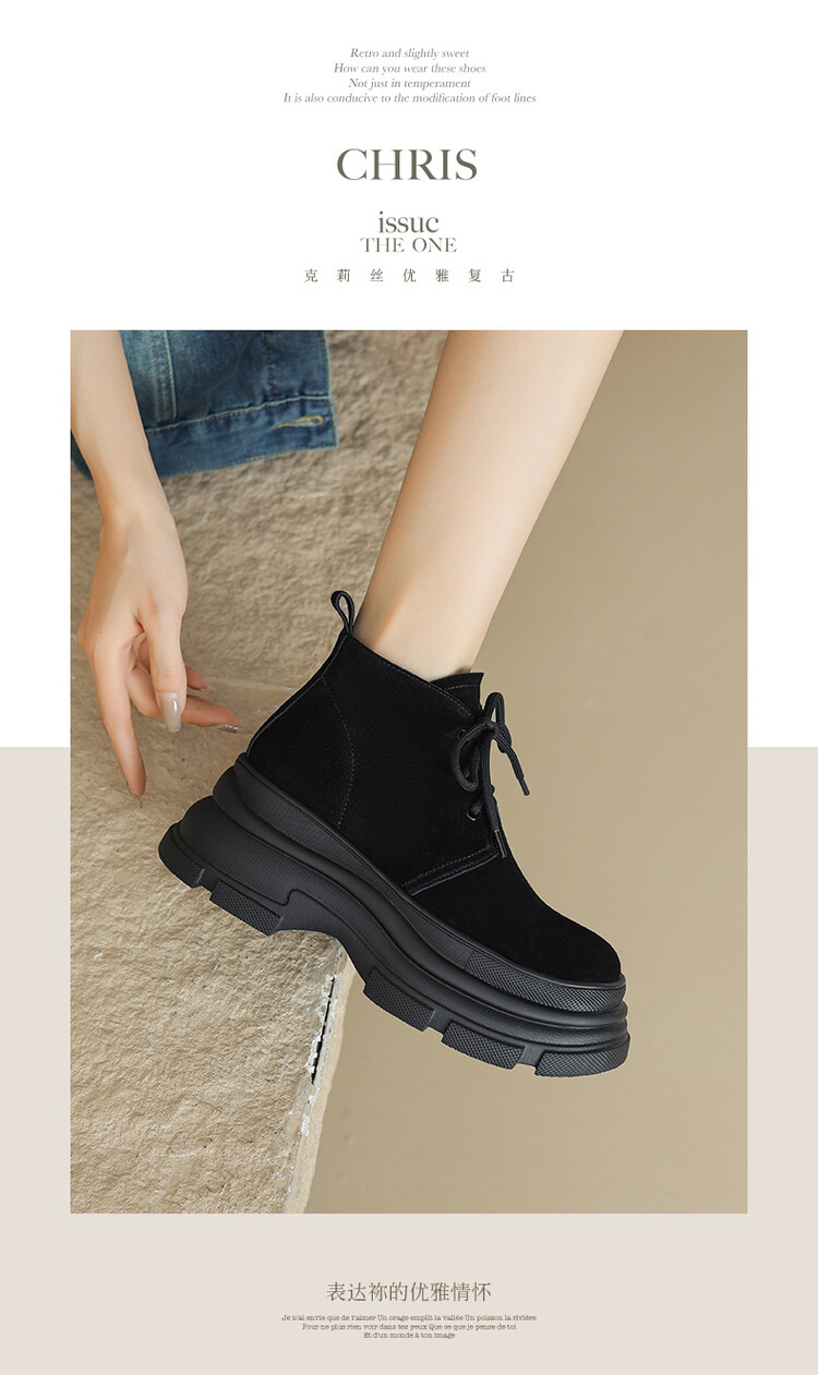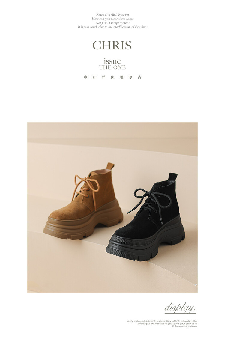 【预售5天】复古风厚底系带切尔西靴女磨砂真皮秋冬新款圆头松糕百搭短靴TYMXY&17211