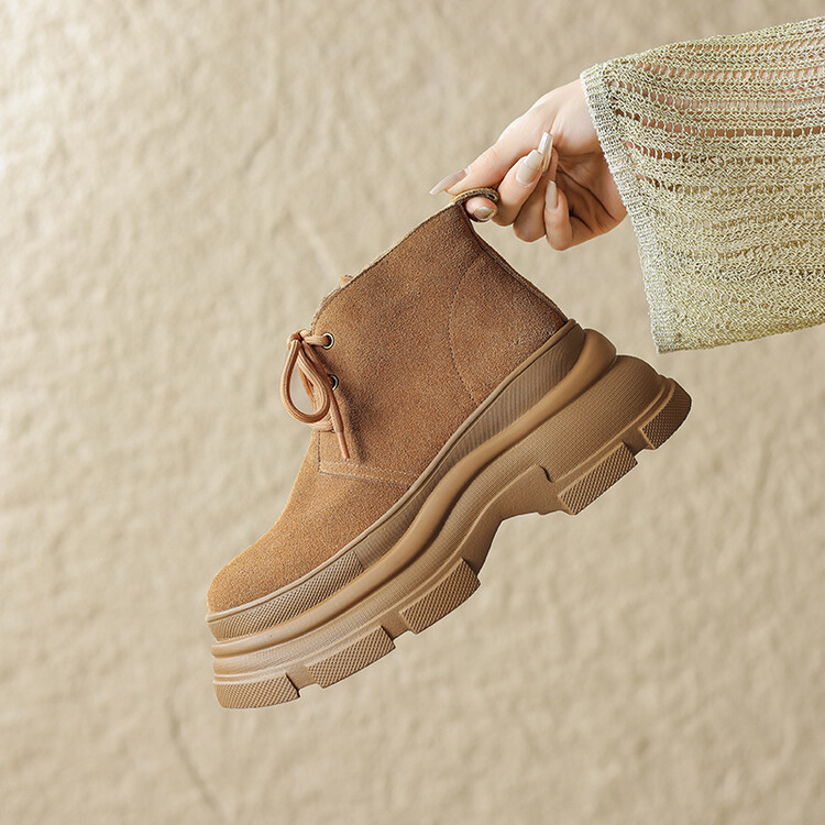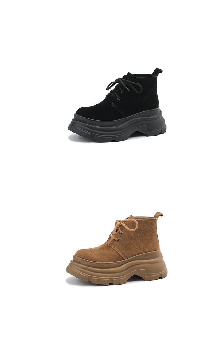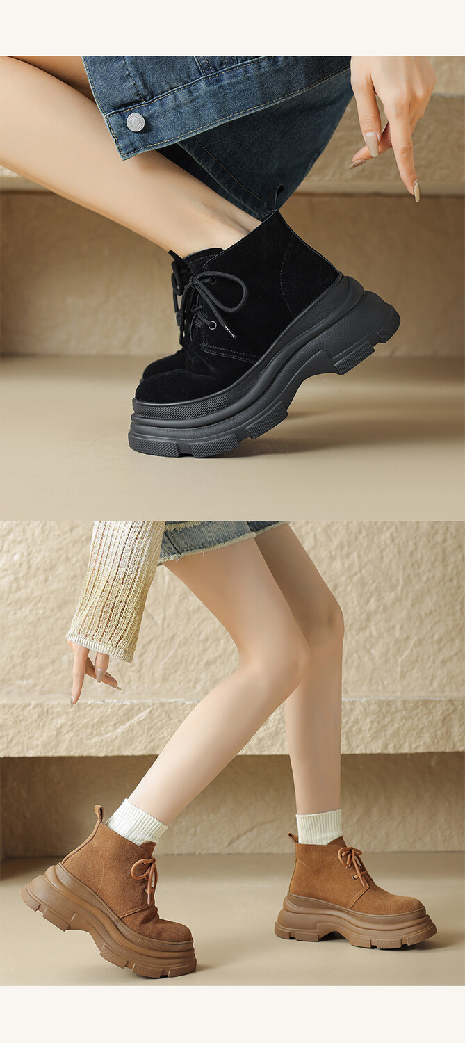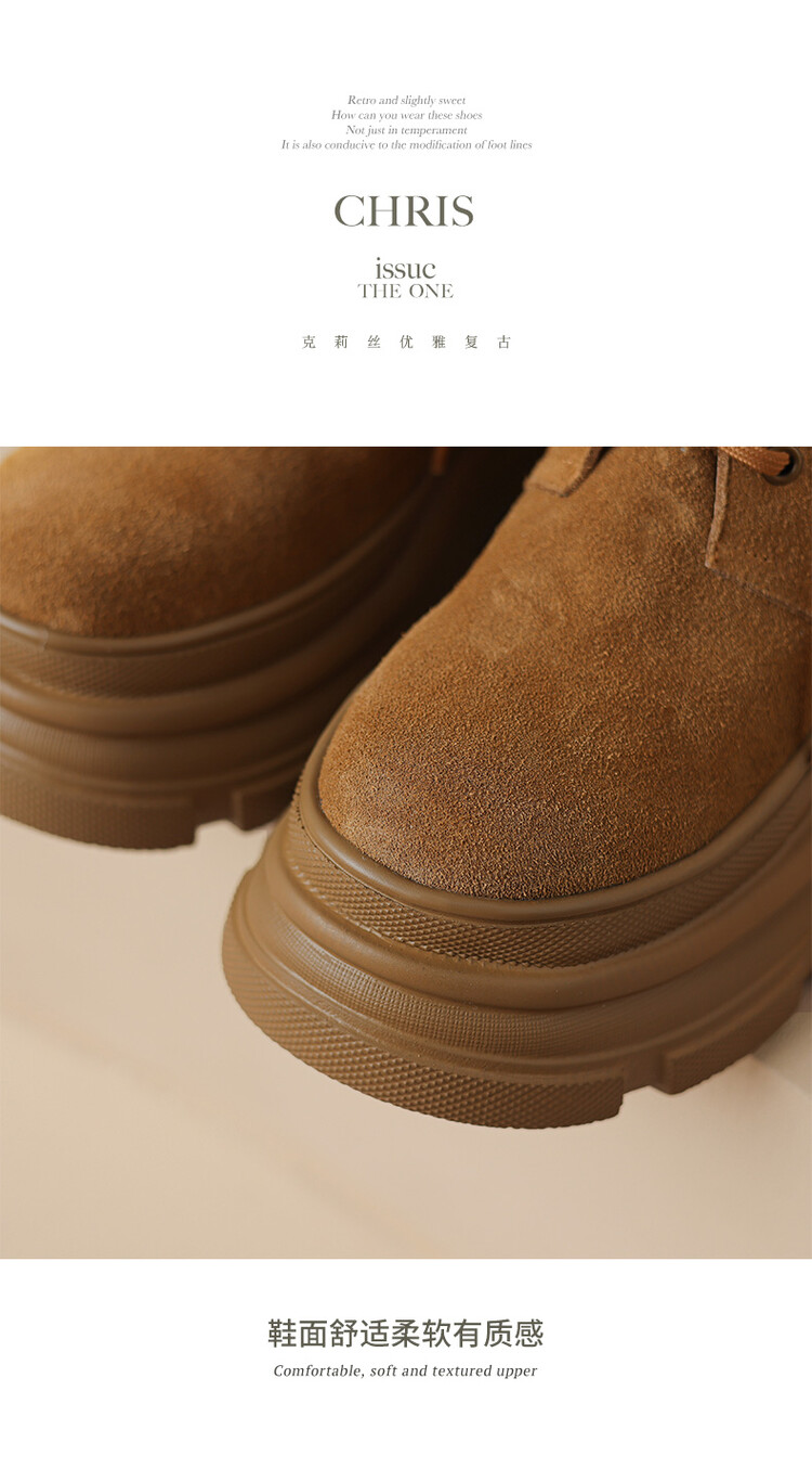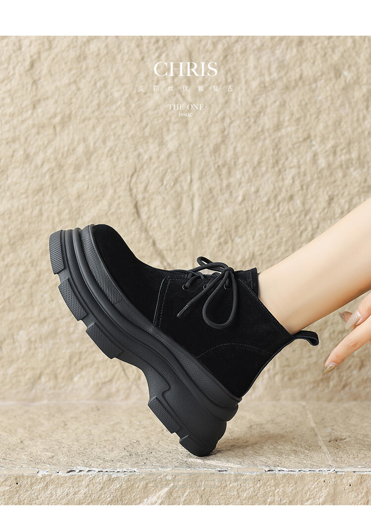 【预售5天】复古风厚底系带切尔西靴女磨砂真皮秋冬新款圆头松糕百搭短靴TYMXY&17211