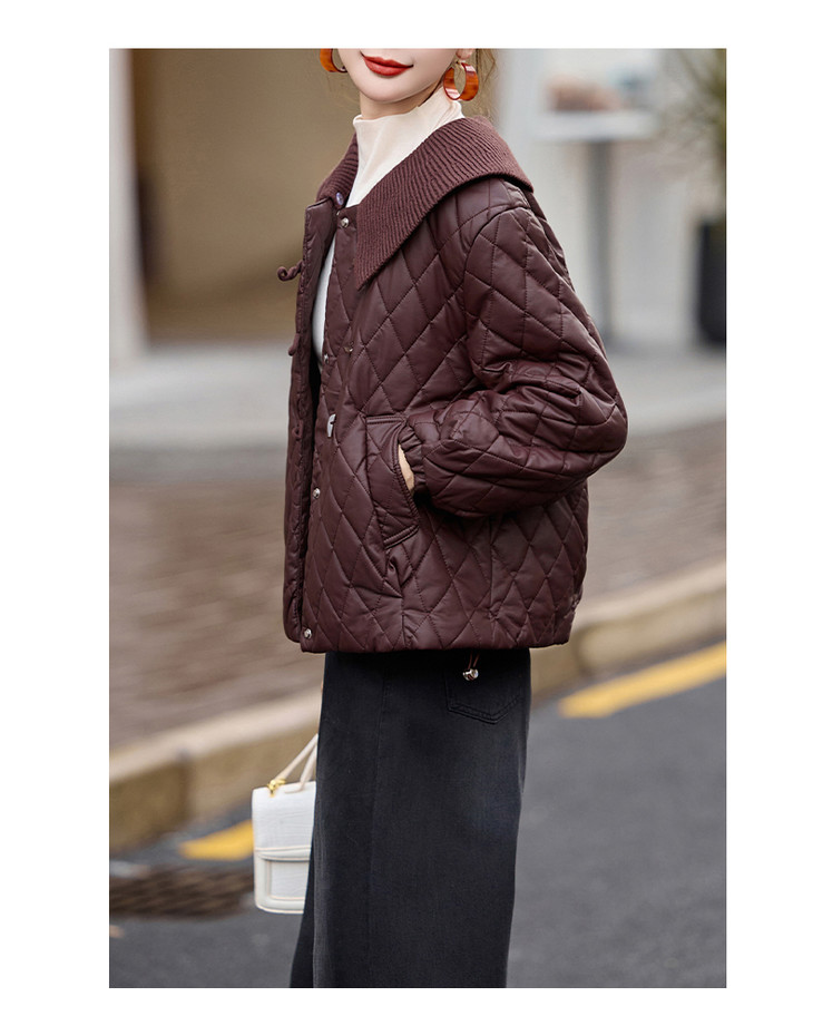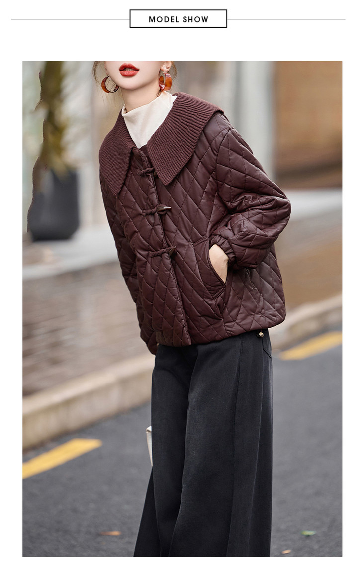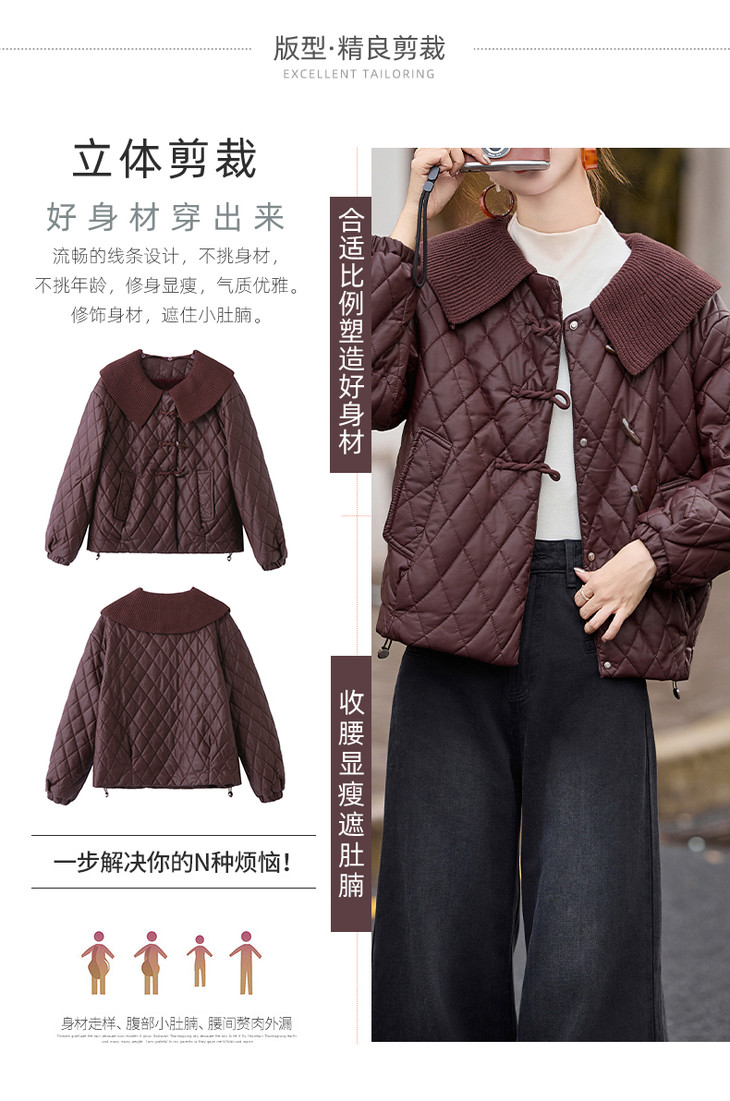 太划算了!!宽松版-9311 可拆卸翻领亮面布盘扣夹棉外套-喜出