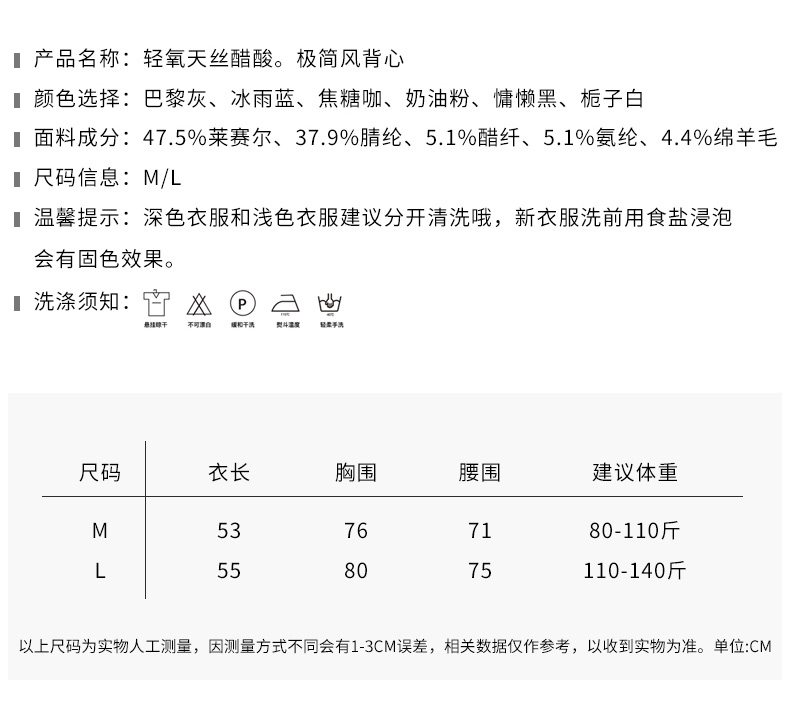 【BHH】【任选2件 单件不发】【黄金三角!羊毛×兰精天丝】ROW款平替春夏打底背心 WJ-9961