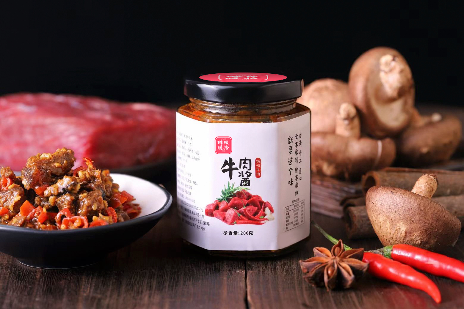 申请正规生产资质SC,主打产品牛肉酱,让牛肉作主角,才配叫牛肉酱。